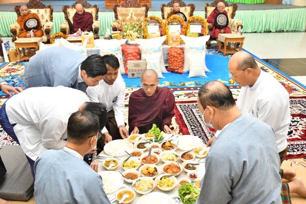 အခမ်းအနားအပြီးတွင် ပြည်ထောင်စုဝန်ကြီး၊ ဒုတိယဝန်ကြီးနှင့် တာဝန်ရှိသူများက ဆရာတော်၊ သံဃာတော်များအား နေ့ဆွမ်းဆက်ကပ် လှူဒါန်းခဲ့ကြောင်း သတင်းရရှိ ပါသည်။