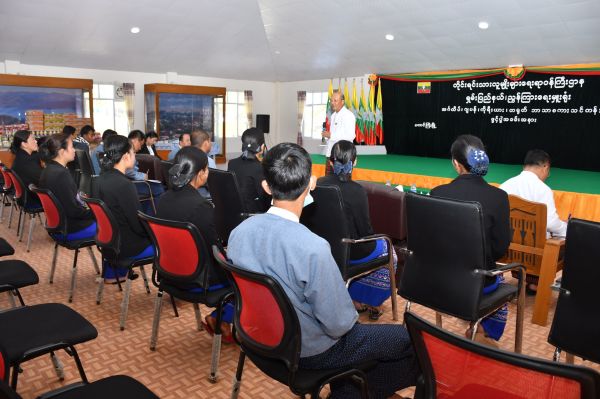 ပထမဦးစွာ တိုင်းရင်းသားလူမျိုးများရေးရာဝန်ကြီးဌာန ပြည်ထောင်စုဝန်ကြီး Jeng Phang နော်တောင်က အဖွင့်အမှာစကားပြောကြားရာတွင် နိုင်ငံတော်စီမံအုပ်ချုပ်ရေးကောင်စီ အနေဖြင့် ရှေ့လုပ်ငန်းစဉ် (၅)ရပ်၊ ဦးတည်ချက် (၁၂) ရပ်ချမှတ်ပြီး နိုင်ငံတော်၏ နိုင်ငံရေး၊ စီးပွားရေး၊ လူမှုရေးများသာမက တန်ဖိုးမြှင့်လူ့စွမ်းအားအရင်းအမြစ်ပေါ်ထွန်းလာရန်အတွက် ပညာရေးကဏ္ဍမြှင့်တင်ရေးကိုပါ အလေးထားဆောင်ရွက်လျက်ရှိရာ မိမိတို့ဝန်ကြီးဌာန အနေဖြင့် တိုင်းဒေသကြီး/ပြည်နယ်များတွင် တိုင်းရင်းသားလူမျိုးများ၏လူ့စွမ်းအား အရင်းအမြစ်တိုးတက်ရေးနှင့် လူမှုစီးပွားဘဝတိုးတက်မြင့်မားစေရန်အတွက် သက်ဆိုင်ရာ တိုင်းဒေသကြီး/ပြည်နယ်အစိုးရအဖွဲ့၏ ပံ့ပိုးထောက်ပံ့မှုရန်ပုံငွေဖြင့် သင်တန်းများ ဖွင့်လှစ် ပေးလျက်ရှိပါကြောင်း၊ ကချင်ပြည်နယ်တွင် အခြေခံစက်ချုပ်သင်တန်း၊ မန္တလေးတိုင်း ဒေသကြီးတွင် ကျောက်မျက်သင်တန်း၊ တနင်္သာရီတိုင်းဒေသကြီးတွင် တိုင်းရင်းသား ရိုးရာအစားအစာချက်ပြုတ်သင်တန်း၊ ရခိုင်ပြည်နယ်တွင် အိမ်တွင်းမှုသင်တန်း၊ အခြေခံနှင့် အဆင့်မြင့်စက်ချုပ်သင်တန်း၊ ရှမ်းပြည်နယ်တွင် ဝါးလက်မှုအခြေခံသင်တန်းနှင့် အခြေခံ စက်ချုပ်သင်တန်း၊ ရန်ကုန်တိုင်းဒေသကြီးတွင် ရေခဲမုန့်သင်တန်း၊ အဖျော်ယမကာ သင်တန်းနှင့် ကွန်ပျူတာသင်တန်းများကို တိုင်းဒေသကြီး/ပြည်နယ်အစိုးရအဖွဲ့များနှင့် ပေါင်းစပ်ညှိနှိုင်းပြီး ပူးပေါင်းဖွင့်လှစ်ပေးနိုင်ခဲ့ပါကြောင်းမြန်မာနိုင်ငံ၏ ရုံးသုံးဘာသာစကားသည် မြန်မာစာဖြစ်သည့်အတွက် ပြောဆိုသုံးနှုန်း ရေးသားရာတွင် သဒ္ဒါအထားအသိုမှန်ကန်စွာနှင့် ကျွမ်းကျင်ပိုင်နိုင်စွာ တတ်မြောက်ရန် လိုအပ်သလို အခြားကမ္ဘာ့သုံးဘာသာစကားများဖြစ်သည့် အင်္ဂလိပ်၊ ဂျပန်၊ ကိုးရီးယား၊ တရုတ်စသည့် ဘာသာစကားများကိုပါ တတ်ကျွမ်းနားလည်ပါက အလုပ်အကိုင် အခွင့်အလမ်းများပိုမိုရရှိစေမည်ဖြစ်ပြီး နိုင်ငံတကာပေါင်းသင်းဆက်ဆံရေးနှင့် ကမ္ဘာ့လူမှု နယ်ပယ်တွင် အထောက်အကူဖြစ်စေမည်ဖြစ်ပါကြောင်း၊ ပြည်နယ်အစိုးရအဖွဲ့ရန်ပုံငွေဖြင့် ယခုဖွင့်လှစ်မည့်သင်တန်းမှာ သင်တန်းသား/သူများအနေဖြင့် သင်တန်း၏ စည်းမျဉ်း၊ စည်းကမ်းများကိုလိုက်နာပြီး သင်တန်းမှပို့ချသည့် သင်ခန်းစာများကို အပတ်တကုတ် သေချာကြိုးစားလေ့လာသင်ယူကြရန်နှင့် စဉ်ဆက်မပြတ်သင်ယူမှသာ မိမိတို့၏ စွမ်းဆောင်ရည်မြင့်မားမည်ဖြစ်သည့်အတွက် စဉ်ဆက်မပြတ်လေ့လာ သင်ယူကြရန် မှာကြားလိုပါကြောင်း၊ ရှမ်းပြည်နယ်၊ တောင်ကြီးမြို့နယ်၊ အေးသာယာမြို့တွင် မဲခေါင်-လန်ချန်းပူးပေါင်းဆောင်ရွက်မှု အထူးရန်ပုံငွေအထောက်အပံ့ဖြင့် ရှမ်းပြည်နယ် တိုင်းရင်းသားရေးရာနှင့် သက်မွေးပညာသင်တ