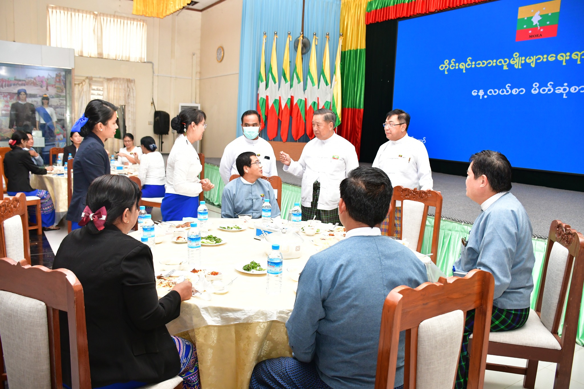 မိမိတို့ တိုင်းရင်းသားလူမျိုးများရေးရာဝန်ကြီးဌာနသည် အဓိက ပင်မဦးစီးဌာန (၂)ခု ရှိပြီး တိုင်းရင်းသားများ၏ စာပေနှင့်ယဉ်ကျေးမှုဆိုင်ရာကိစ္စရပ်များ၊ တိုင်းရင်းသားများ၏ အခွင့်အရေး ဆိုင်ရာကိစ္စရပ်များကို ဆောင်ရွက်လျက်ရှိပါကြောင်း၊ တိုင်းရင်းသားအရေးကိစ္စရပ်များ ဆောင်ရွက်ရာတွင် ထိလွယ်ရှလွယ်သည့်အတွက် အထူးဂရုပြုဆောင်ရွက်ကြရမည် ဖြစ်ပါကြောင်း၊ တိုင်းရင်းသားဒေသများတွင် လုပ်ငန်းစီမံကိန်းများဖော်ဆောင်ရာ၌ မြေယာ များကို သေချာကွင်းဆင်းစိစစ်ကြရန် မှာကြားလိုပါကြောင်း ပြည်ထောင်စုဝန်ကြီး ဦးစောထွန်းအောင်မြင့်က ဝန်ကြီးရုံးနှင့် ဦးစီးဌာနများမှ ဒုတိယညွှန်ကြားရေးမှုးနှင့် လက်ထောက် ညွှန်ကြားရေးမှူးအဆင့်သို့ တစ်ဆင့်မြင့်ရာထူး တိုးမြှင့်ခြင်းခံရသည့် အရာထမ်းများနှင့် နိုဝင်ဘာလ ၂၂ ရက်နေ့၊ နံနက် (၁၀:၀၀)နာရီတွင် ဝန်ကြီးဌာန၊ အစည်းအဝေးခန်းမ၌ ကျင်းပ သည့် တွေ့ဆုံလမ်းညွှန်ခြင်းအခမ်းအနားတွင် အထက်ပါအတိုင်း ပြောကြားခဲ့ပါသည်။ အဆိုပါ အခမ်းအနားသို့ ဒုတိယဝန်ကြီး၊ အမြဲတမ်းအတွင်းဝန်၊ ညွှန်ကြားရေးမှူးချုပ်များ၊ ဒုတိယ ညွှန်ကြားရေးမှူးချုပ်များနှင့် တာဝန်ရှိသူများ တက်ရောက်ကြပါသည်။