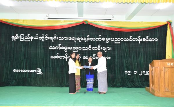 အခမ်းအနားတွင် ရှမ်းပြည်နယ်အစိုးရအဖွဲ့ဝင်၊ တိုင်းရင်းသားရေးရာဝန်ကြီး ဦးအောင်ကြည်ဝင်းက အဖွင့်အမှာစကားပြောကြားခဲ့ပါသည်။ ဆက်လက်၍ ပြည်ထောင်စုဘဏ္ဍာရန်ပုံငွေဖြင့် ထောက်ပံ့ ပေးသည့် သင်ထောက်ကူပစ္စည်းများအား ရှမ်းပြည်နယ်အစိုးရအဖွဲ့ဝင်၊ တိုင်းရင်းသားရေးရာဝန်ကြီး ဦးအောင်ကြည်ဝင်းနှင့် ဥပဒေချုပ် ဦးစိုင်း