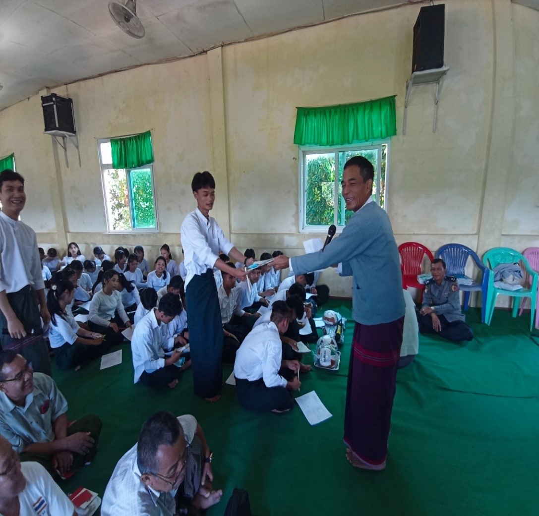 ဆက်လက်၍ တိုင်းရင်းသားအခွင့်အရေးများကာကွယ်စောင့်ရှောက်ရေးဦးစီးဌာန၊ ဒုတိယ ညွှန်ကြားရေးမှူး ဦးကျော်စိုးက ဉာဏဗလနှင့်ပြည့်စုံသော လူငယ်များဖြစ်စေရန် ရည်ရွယ်၍ ဗဟုသုတဆိုင်ရာမေးခွန်းများ၊ ဒေသန္တရမေးခွန်းများ၊ အသိပညာဆိုင်ရာမေးခွန်းများကို ကျောင်းသား/ ကျောင်းသူများအား မေးမြန်းခဲ့ပြီး ဆုလက်ဆောင် ပစ္စည်းများ ပေးအပ်ခဲ့ပါသည်။