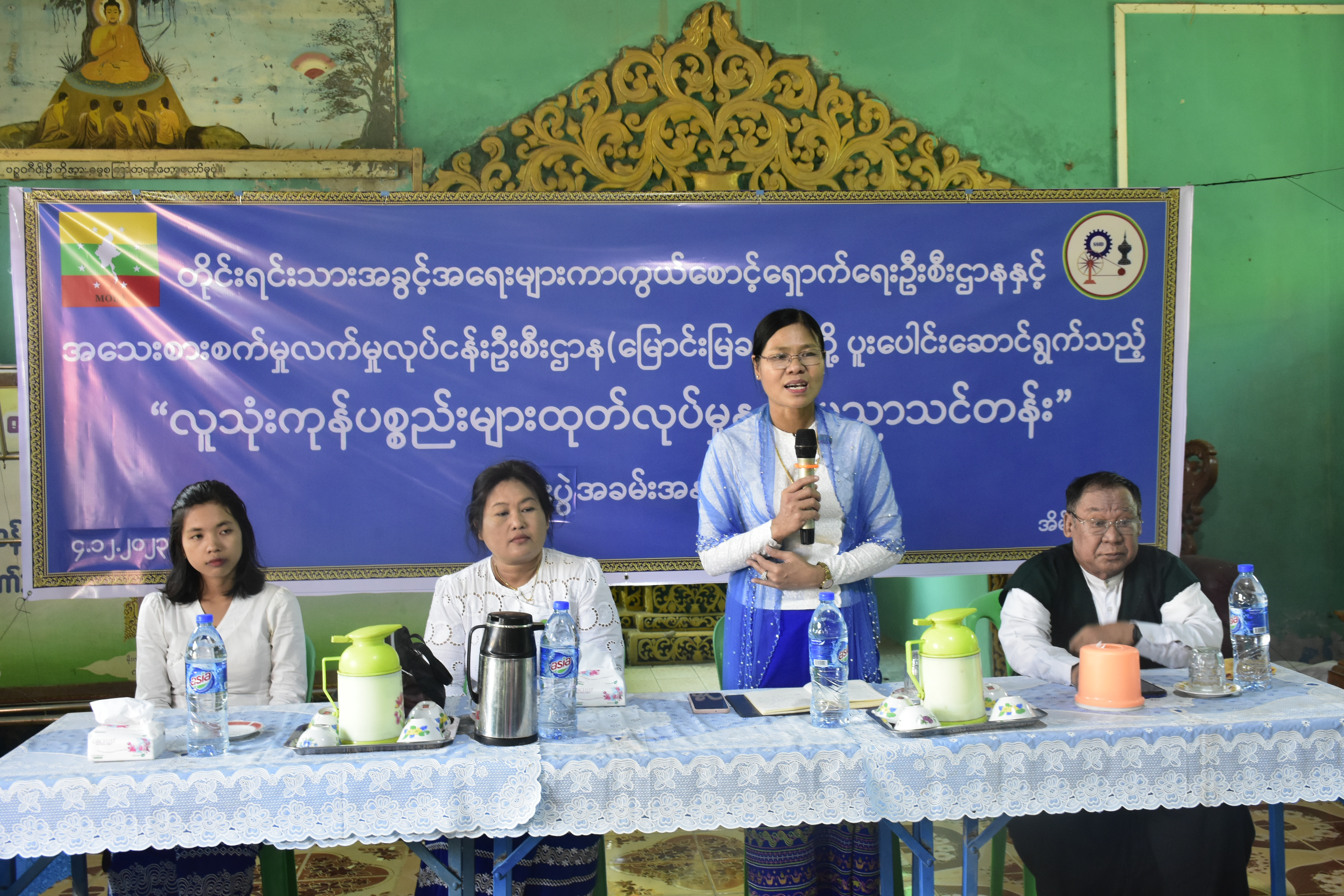 တိုင်းရင်းသားအခွင့်အရေးများကာကွယ်စောင့်ရှောက်ရေးဦးစီးဌာန၊ ဧရာဝတီတိုင်းဒေသကြီး ညွှန်ကြားရေးမှူးရုံးနှင့် အသေးစားစက်မှုလက်မှုလုပ်ငန်းဦးစီးဌာန(မြောင်းမြခရိုင်)တို့ ပူးပေါင်း၍ “လူသုံးကုန်ပစ္စည်းများထုတ်လုပ်မှုနည်းပညာသင်တန်း” ကို (၃၀-၁၁-၂၀၂၃) ရက်နေ့မှ (၄-၁၂-၂၀၂၃) ရက်နေ့အထိ အိမ်မဲမြို့နယ်၊ ညောင်ငူအုပ်စု၊ ညောင်ငူကျေးရွာ၊ ဓမ္မရံသီဘုန်းကြီးကျောင်း ဓမ္မာရုံ၌ ဖွင့်လှစ်သင်ကြားခဲ့ပြီး ဒေသခံတိုင်းရင်းသား အမျိုးသမီး(၂၀)ဦး တက်ရောက်သင်ယူခဲ့ပါသည်။