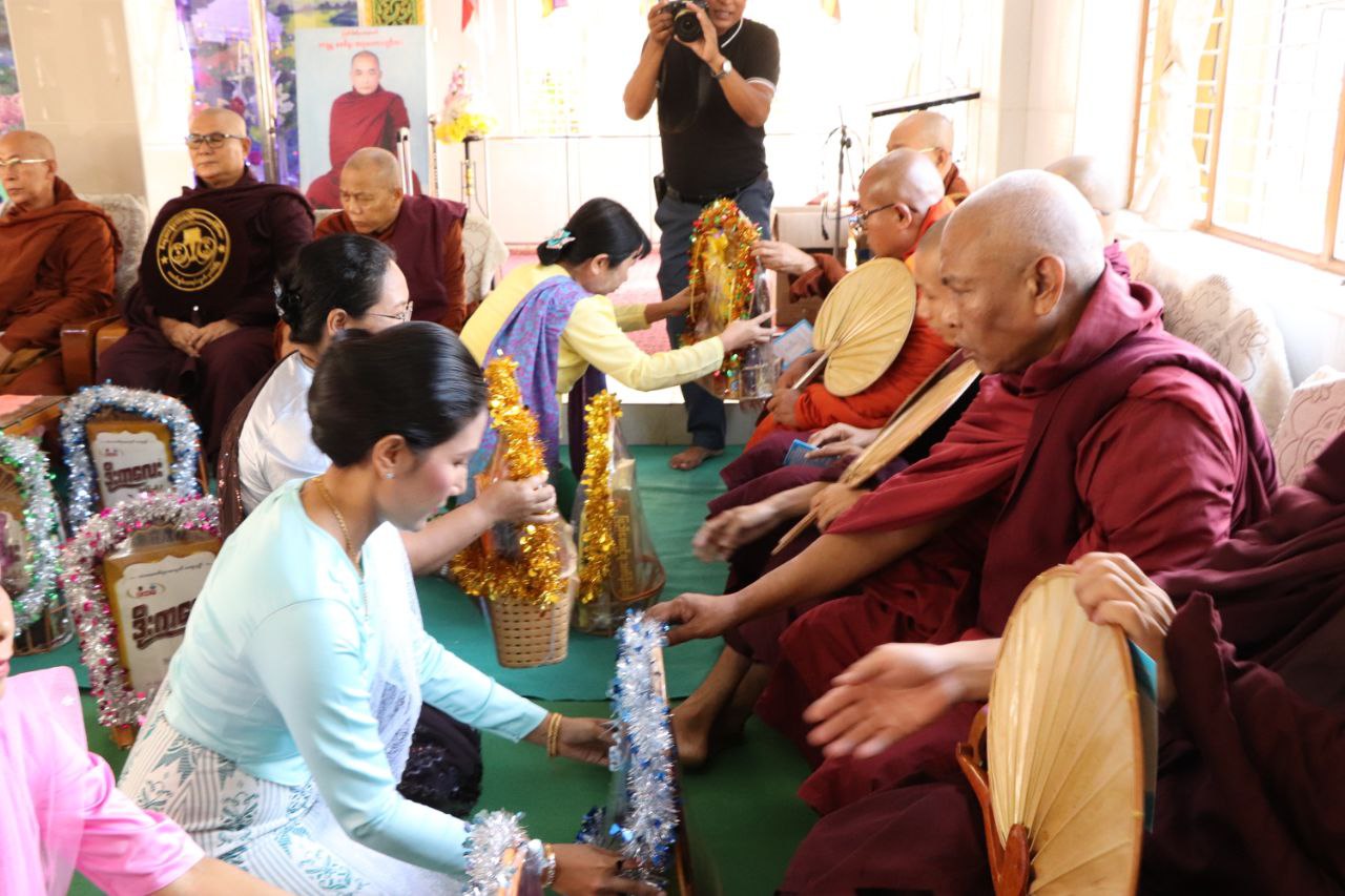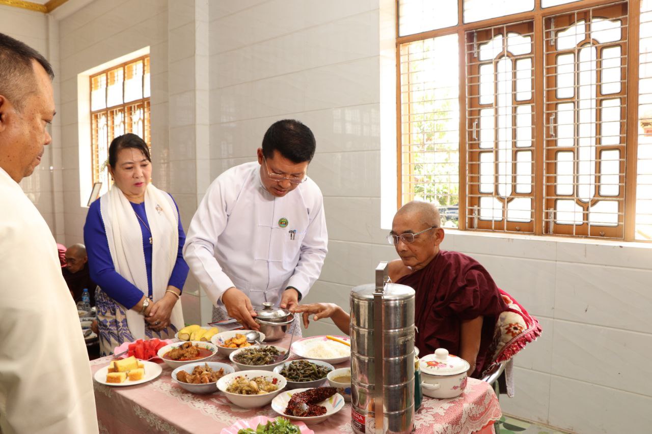 ထို့နောက် ဧရာဝတီတိုင်းဒေသကြီးအစိုးရအဖွဲ့၊ ဝန်ကြီးချုပ်နှင့်ဇနီးက ပင့်သံဃာ ဆရာတော် များအား နေ့ဆွမ်းဆက်ကပ်လှူဒါန်းခဲ့ပါသည်။ ဆက်လက်၍ အခမ်းအနား တက်ရောက်သူများအား နေ့လည်စာဖြင့် တည်ခင်းဧည့်ခံကျွေးမွေးခဲ့ကြောင်း သတင်းရရှိပါသည်။
