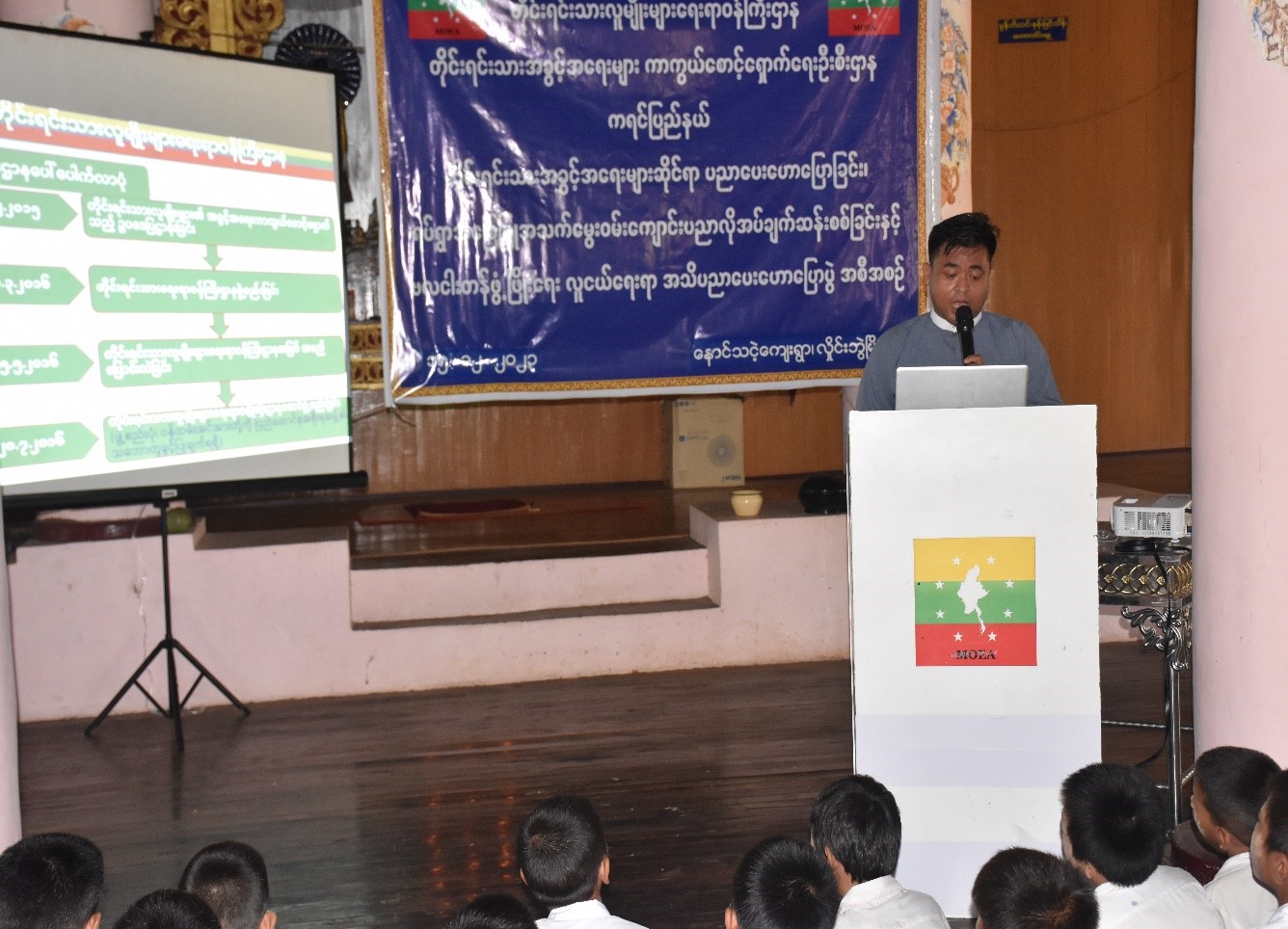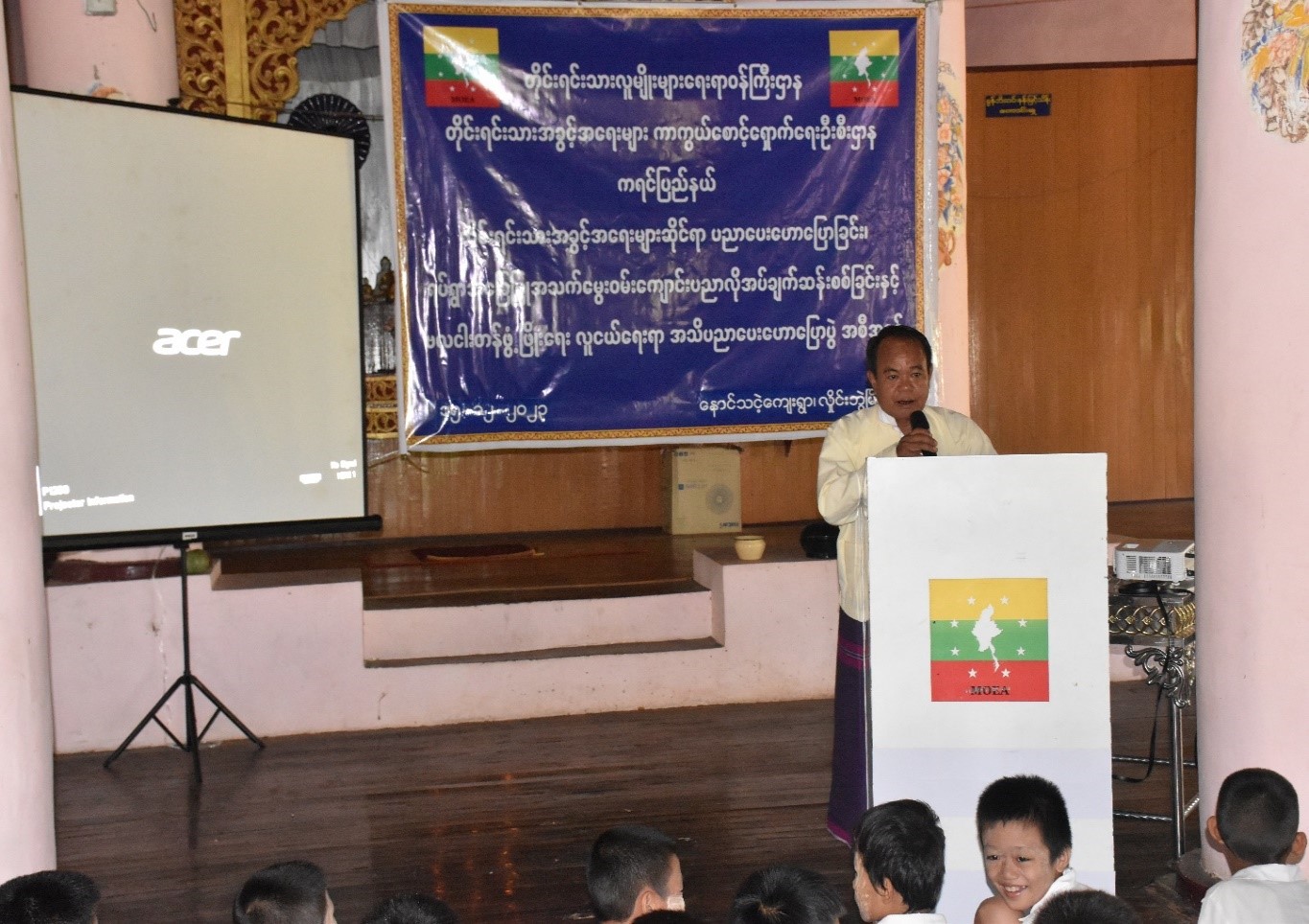 ထို့နောက် အားကစားနှင့်ကာယပညာဦးစီးဌာနမှ ဒုတိယညွှန်ကြားရေးမှူး ဦးစတင်အောင်မြင့် က ဗလငါးတန်ဖွံ့ဖြိုးစေရေး အားကစားနှင့်လူငယ်၊ အားကစားနှင့် ကိုယ်ကာယကြံ့ခိုင်ရေးကို လည်းကောင်း၊ ခရိုင်ပတ်ဝန်းကျင်ထိန်းသိမ်းရေးဦးစီးဌာန၊ လက်ထောက်ညွှန်ကြားရေးမှူး ဦးကျော်ဆန်းက ပတ်ဝန်းကျင်စီမံခန့်ခွဲမှုနှင့် ရာသီဥတုပြောင်းလဲမှုဆိုင်ရာကိစ္စရပ်များ၊ ပတ်ဝန်း ကျင်နှင့် လူငယ်၊ ပလပ်စတစ်စွန့်ပစ်မှုဆိုင်ရာကိစ္စရပ်များကို တိုင်းရင်းသားပြည်သူများ အသိအမြင် များ တိုးပွားလာစေရန်လည်းကောင်း၊ လူမှုဝန်ထမ်းဦးစီးဌာနမှ ဦးစီးမှူး ဦးစိုင်းရန်နောင်က ကလေး သူငယ်အခွင့်အရေးများ၊ ကလေးသူငယ်အလုပ်သမားပပျောက်ရေး ဆိုင်ရာကိစ္စရပ်များကို လည်း ကောင်း၊ ပြန်ကြားရေးနှင့် ပြည်သူ့ဆက်ဆံရေးဦးစီးဌာနမှ ဦးစီးအရာရှိ ဦးစေသော်တာလင်းသန့် က ဗလငါးတန်ဖွံ့ဖြိုးစေရေး လူငယ်ရေးရာ စကားဝိုင်းများ၊ စာပေနှင့်လူငယ်ခေါင်းစဉ်ဖြင့် လည်းကောင်း၊ တိုင်းရင်းသားအခွင့်အရေးများကာကွယ်စောင့်ရှောက်ရေးဦးစီးဌာနမှ ဦးစီးအရာရှိ ဦးဝေယံထက်က တိုင်းရင်းသားလူမျိုးများ၏ အခွင့်အရေးကာကွယ်စောင့်ရှောက်သည့် ဥပဒေ၊ နည်းဥပဒေများ၊ ရှေ့လုပ်ငန်းစဉ်များ၊ မဟာဗျူဟာများကို ဒေသခံတိုင်းရင်းသားများအား လည်းကောင်း၊ တိုင်းရင်းသားစာပေနှင့် ယဉ်ကျေးမှုဦးစီးဌာနမှ ဦးစီးအရာရှိ ဒေါ်မြတ်သီရိအောင်က တိုင်းရင်းသားဘာသာသင်ဆရာ၊ ဆရာမများ ခန့်အပ်ထားရှိမှု အခြေအနေနှင့် ဦးစီးဌာန၏ ဆောင်ရွက်နေမှု အခြေအနေများအား ရှင်းလင်းပြောကြားခဲ့ပါသည်။
