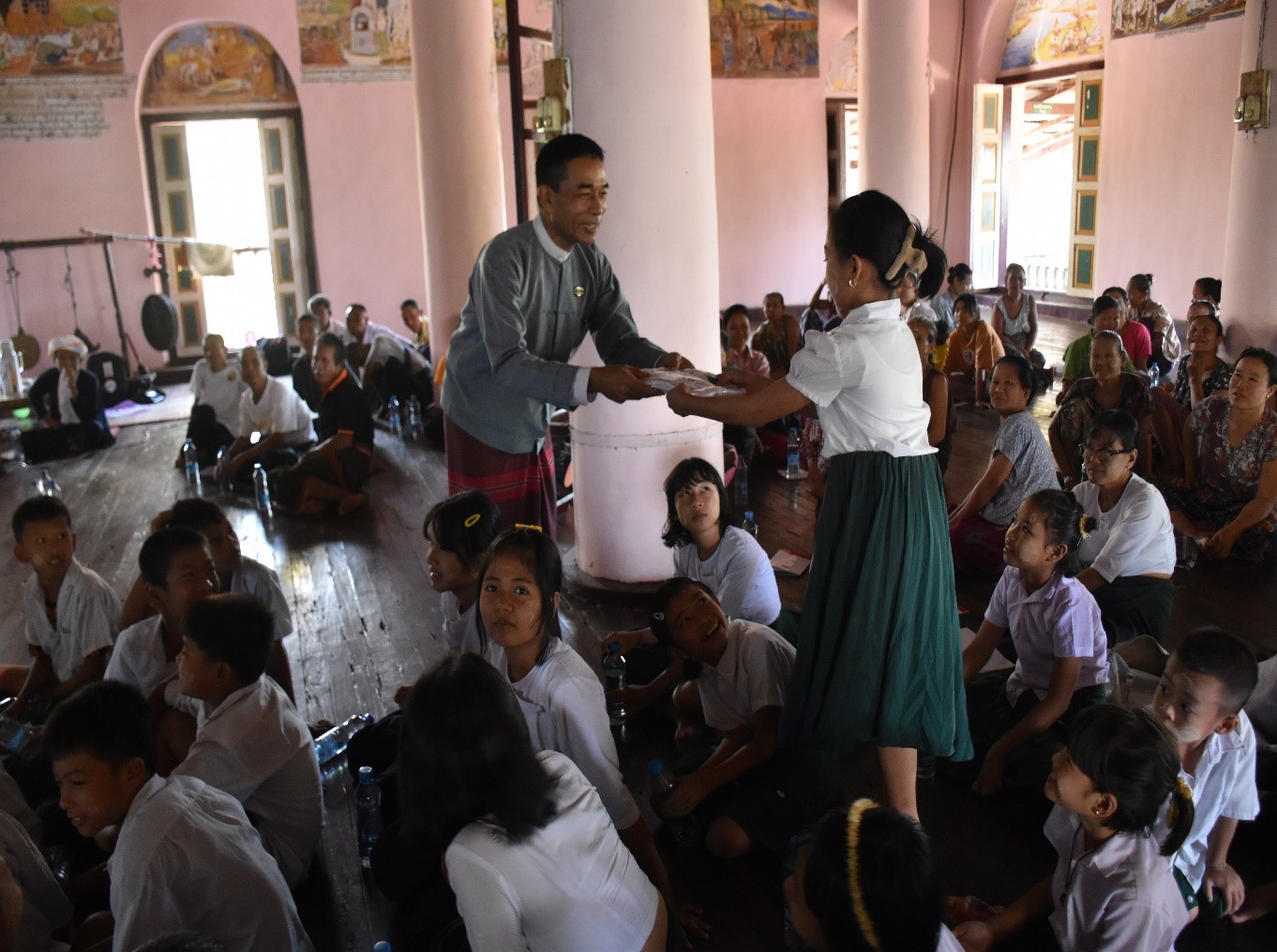 ဆက်လက်၍ တက်ရောက်လာကြသော ကျောင်းသား၊ ကျောင်းသူများအား အသိပညာနှင့် ဗဟုသုတများတိုးပွားစေပြီး ဗလငါးတန်နှင့် ပြည့်စုံစေရန် ဒေသန္တရမေးခွန်းများကို ဒုတိယ ညွှန်ကြားရေးမှူး ဦးကျော်စိုးက မေးမြန်းခဲ့ပြီး ဖြေဆိုနိုင်သူများအား ဆုလက်ဆောင်ပစ္စည်းများ ပေးအပ်ခဲ့ပြီး အားကစားနှင့်ကာယပညာဦးစီးဌာနမှ ကျောင်းအတွက် လိုအပ်သော အားကစား ပစ္စည်းများကို ထောက်ပံ့ပေးအပ်ခဲ့ပါသည်။