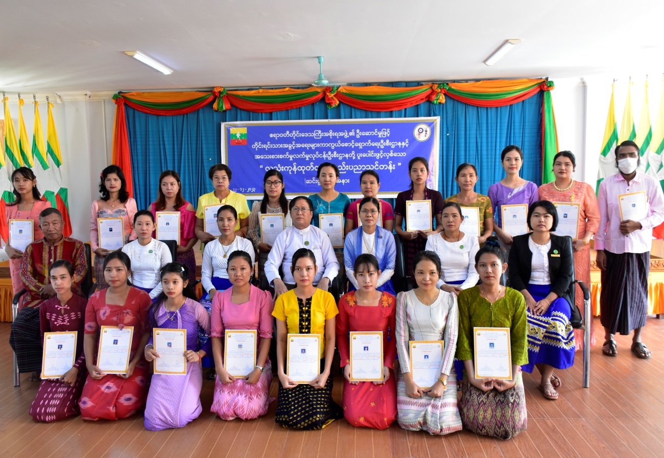 တိုင်းရင်းသားအခွင့်အရေးများကာကွယ်စောင့်ရှောက်ရေးဦးစီးဌာန၊ ဧရာဝတီတိုင်းဒေသကြီး ညွှန်ကြားရေးမှူးရုံးနှင့် တိုင်းဒေသကြီး အသေးစားစက်မှုလက်မှုလုပ်ငန်းဦးစီးဌာနတို့ ပူးပေါင်း၍ ဖွင့်လှစ်သော “လူသုံးကုန်ထုတ်လုပ်မှုနည်းပညာသင်တန်း” သင်တန်းဆင်းပွဲအခမ်းအနားကို (၂၂-၁၂-၂၀၂၃)ရက်နေ့တွင် ဧရာဝတီတိုင်းဒေသကြီး၊ ပုသိမ်မြို့၊ ဦးစီးဌာနညွှန်ကြားရေးမှူးရုံး၌ ကျင်းပ ပြုလုပ်ခဲ့ပါသည်။