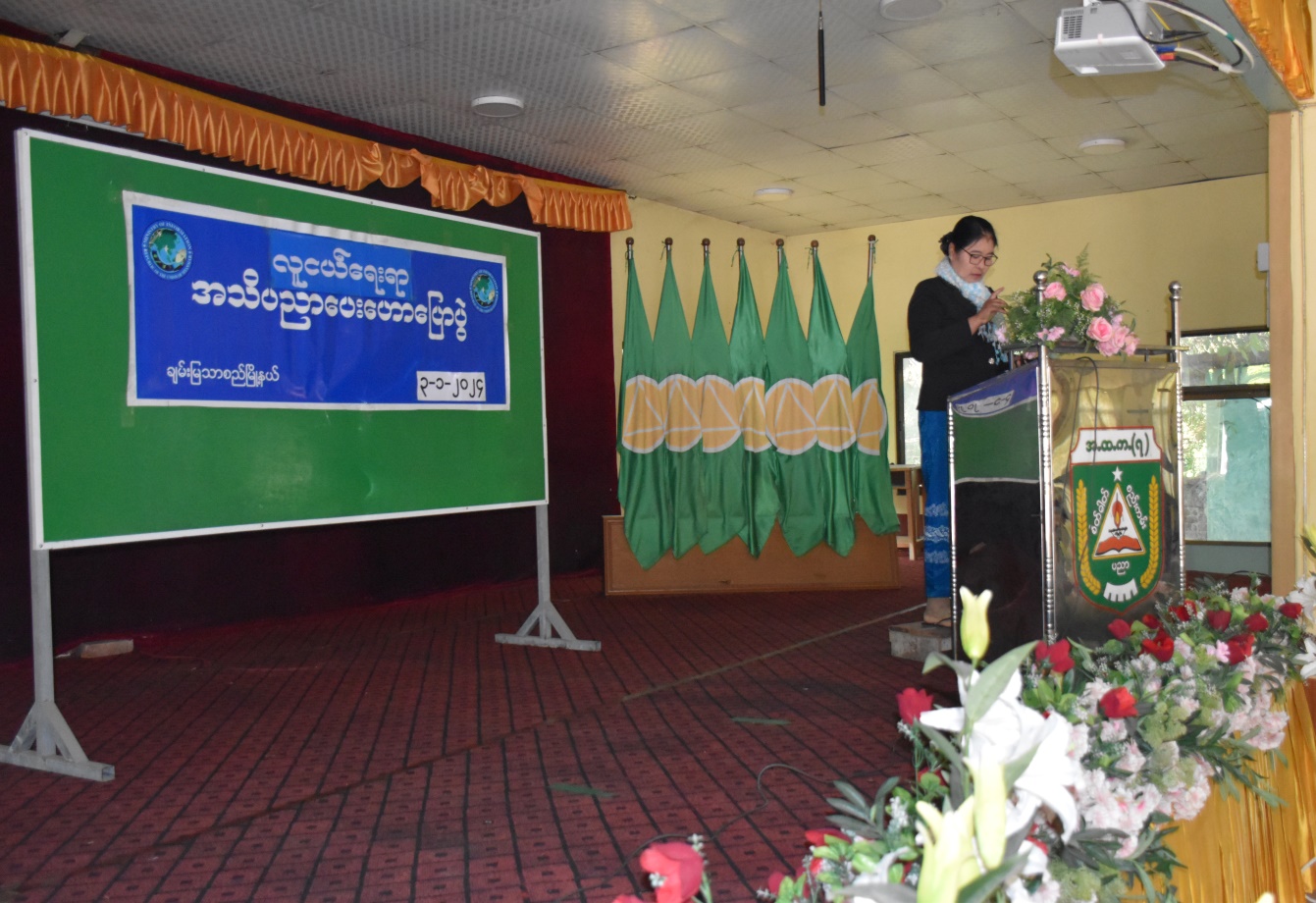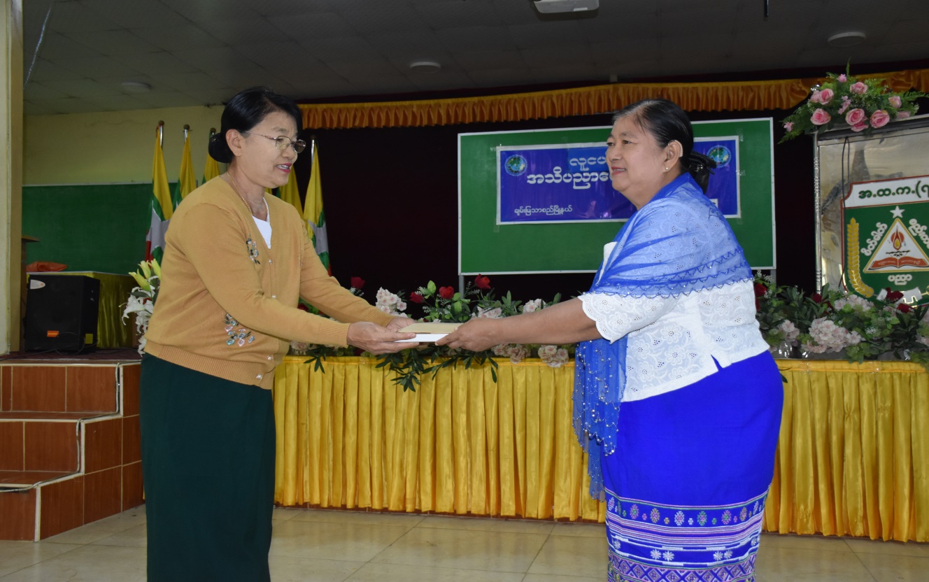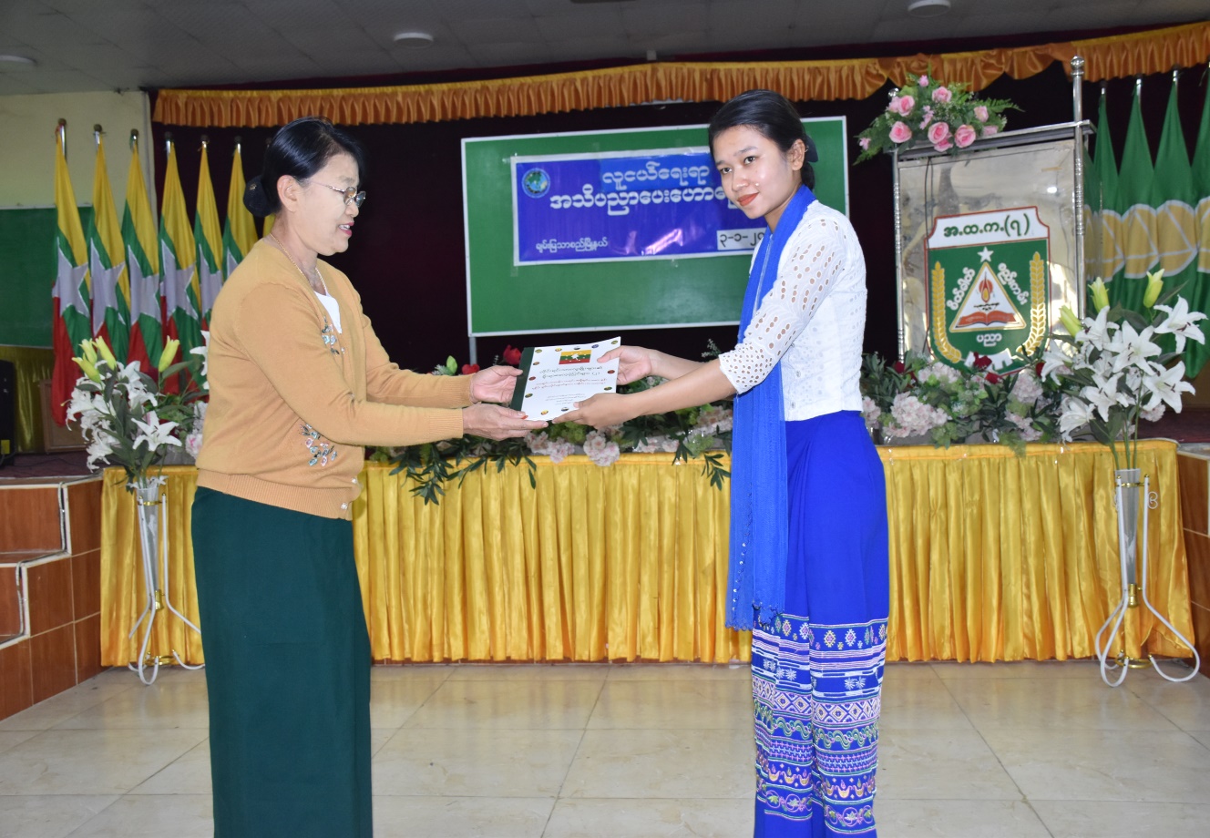 ထို့နောက် တိုင်းရင်းသားအခွင့်အရေးများကာကွယ်စောင့်ရှောက်ရေးဦးစီးဌာနမှ တက် ရောက်လာကြသည့် ကျောင်းသား၊ ကျောင်းသူများအား တိုင်းရင်းသားလူမျိုးများ၏ အခွင့်အရေး နှင့် ရပိုင်ခွင့်များကို ရိုက်နှိပ်ထားသည့် Pamphlet များ ဝေငှခဲ့ပြီး ကျောင်းစာကြည့်တိုက်အတွက် တိုင်းရင်းသားလူမျိုးများ၏ အခွင့်အရေးကာကွယ်စောင့်ရှောက်သည့်ဥပဒေ၊ နည်းဥပဒေစာအုပ် များအားလည်းကောင်း၊ တိုင်းရင်းသားစာပေနှင့်ယဉ်ကျေးမှုဦးစီးဌာနမှ တိုင်းရင်းသားပုံပြ၊ ပုံပြင် စာအုပ်များနှင့် လက်ကမ်းစာစောင်များအား ကျောင်းအုပ်ဆရာမကြီးထံသို့ ပေးအပ်လှူဒါန်းခဲ့ ကြောင်း သိရှိရပါသည်။