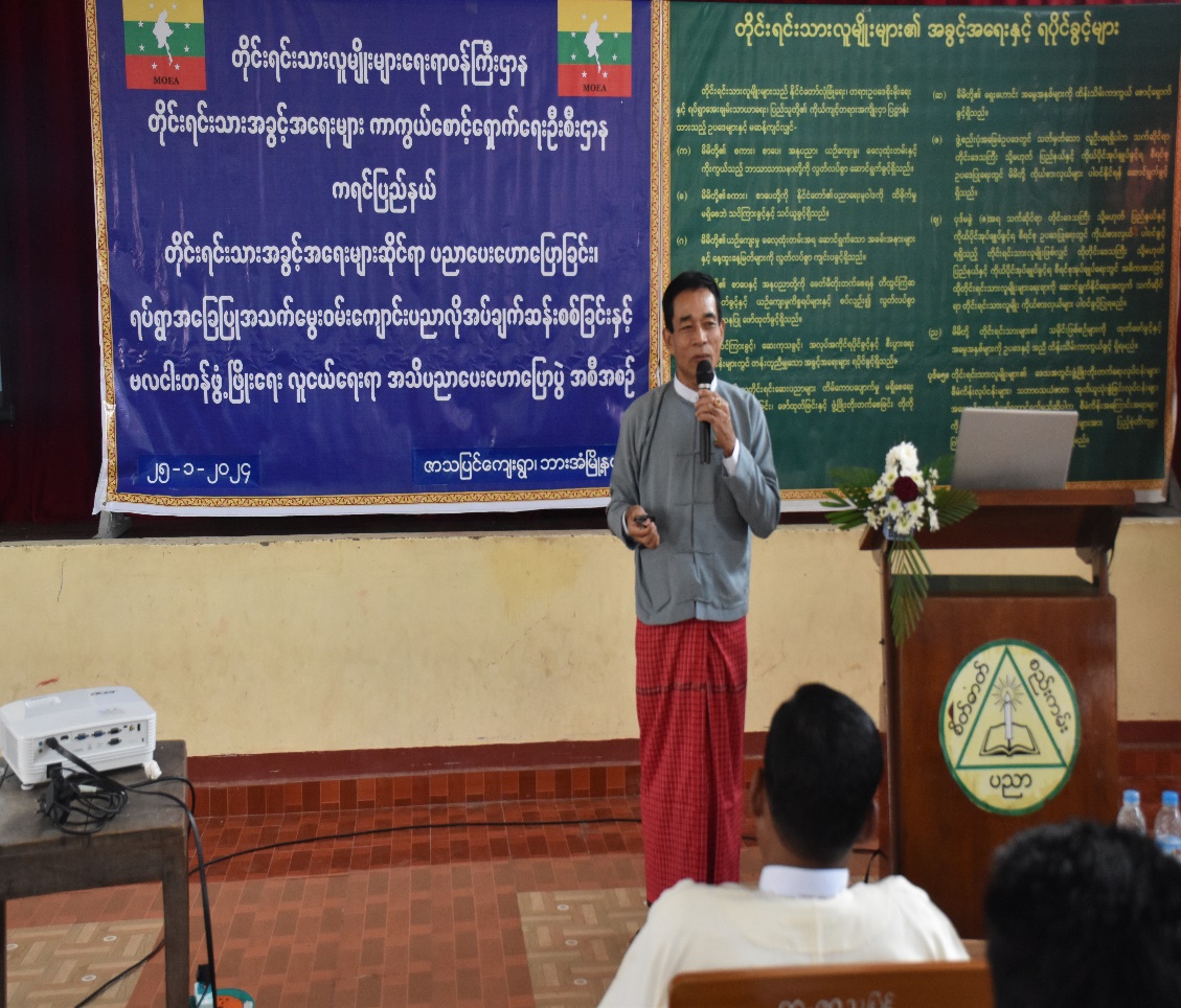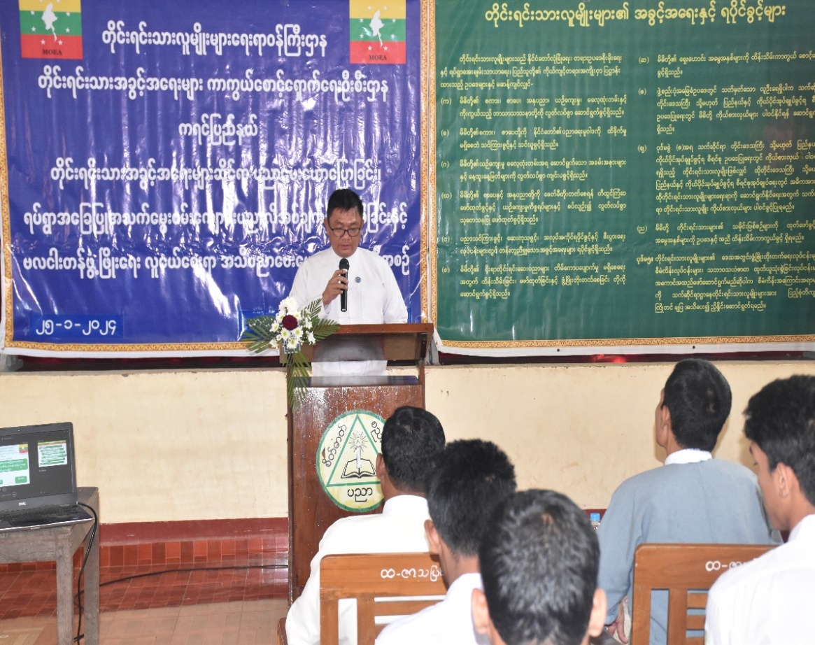 တိုင်းရင်းသားအခွင့်အရေးဆိုင်ရာအသိပညာပေးဟောပြောခြင်းနှင့် ရပ်ရွာအခြေပြု အသက်မွေး ဝမ်းကျောင်းပညာလိုအပ်ချက်တို့ကို ဆန်းစစ်စီမံခြင်းအစီအစဉ်နှင့် လူငယ်ရေးရာ အသိပညာပေး ဟောပြောပွဲကို ဘားအံမြို့နယ်တွင်ကျင်းပ ဘားအံ၊ ဇန်နဝါရီလ ၂၅ ရက်
