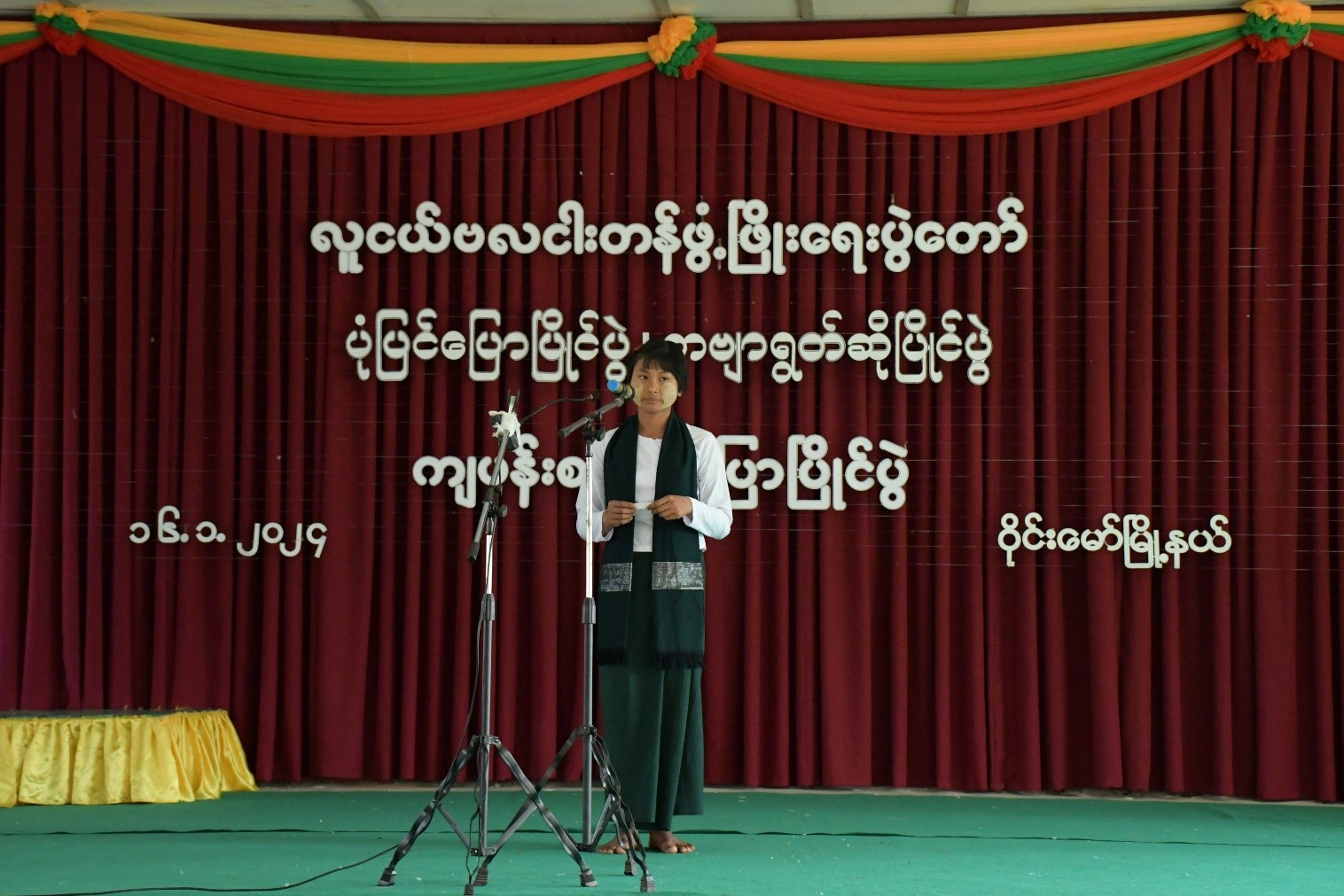 ယင်းနောက် ဆုများရရှိခဲ့ကြသော ပြိုင်ပွဲဝင်ကျောင်းသား၊ ကျောင်းသူများအား မြို့နယ်စီမံ အုပ်ချုပ်ရေးကောင်စီအဖွဲ့ဝင် ဦးကြည်ထွန်း၊ တိုင်းရင်းသားစာပေနှင့်ယဉ် ကျေးမှုဦးစီးဌာနမှ ပြည်နယ် တာဝန်ခံ ဒေါ်အိအိအေး၊ ဦးစီးအရာရှိများဖြစ်ကြသည့် ဦးခင်မောင်ထွန်းနှင့် ဦးလှိုင်ဝင်းဟန်၊ အထက(၂) ကျောင်းအုပ်ဆရာမကြီး ဒေါ်မိုးမိုးကြည်၊ ကချင်ပြည်နယ်စာကြည့်တိုက်များဖောင်ဒေးရှင်း ဥက္ကဋ္ဌ၊ စာရေးဆရာ အကြီးကိုကို(ကသာ)နှင့် တာဝန်ရှိသူများက ဆုများ အသီးသီးချီးမြှင့်ပေးအပ်ကြသည်။