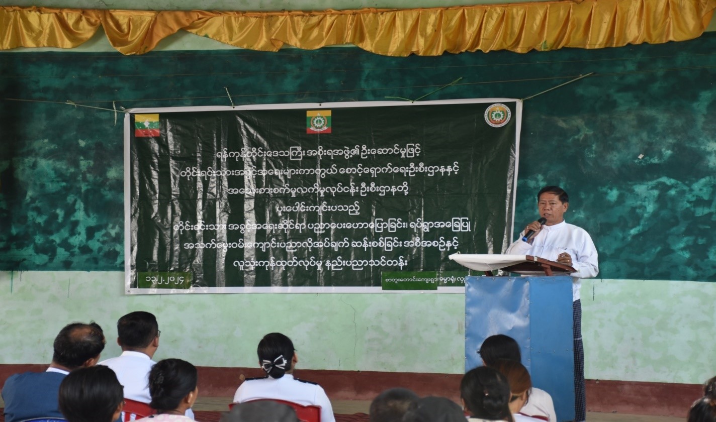 အခမ်းအနားတွင် တိုင်းရင်းသားအခွင့်အရေးများကာကွယ်စောင့်ရှောက်ရေးဦးစီးဌာနမှ ဒုတိယညွှန်ကြားရေးမှူး၊ ဒေါ်ဖြူဖြူဝင်းက တိုင်းရင်းသားလူမျိုးများရေးရာဝန်ကြီးဌာနအကြောင်း၊ တိုင်းရင်းသားလူမျိုးများ၏ အခွင့်အရေးကာကွယ်စောင့်ရှောက်သည့် ဥပဒေ၊နည်းဥပဒေများအားသိရှိနိုင်ရန်နှင့် ရပ်ရွာအခြေပြုအသက်မွေး ဝမ်းကျောင်း ပညာ လိုအပ်ချက်စစ်တမ်းကောက်ယူရ ခြင်းအကြောင်း တို့ကိုပြောကြားခဲ့ပါသည်။
