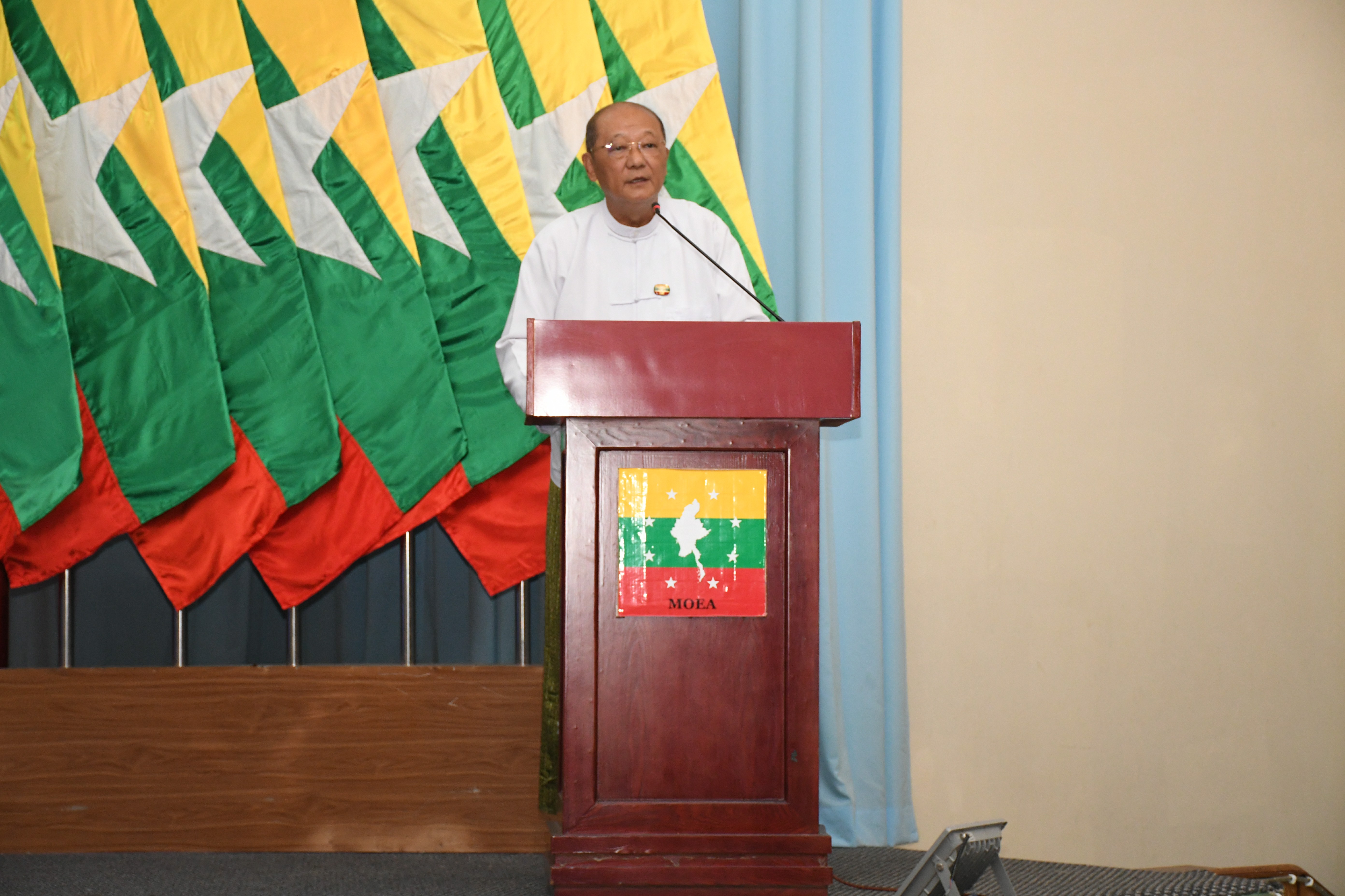 ထို့နောက် ဒုတိယဝန်ကြီး ဦးဇော်အေးမောင်က တိုင်းရင်းသားလူမျိုးများ၏ အခွင့်အရေး ကာ ကွယ် စောင့်ရှောက်သည့် ဥပဒေတွင် တိုင်းရင်းသားလူမျိုးများရေးရာဝန်ကြီးဌာန၏ တာဝန် တစ်ရပ် အနေဖြင့် တိုင်းရင်းသားလူမျိုးများ၏ လူမှုူစီးပွားဘဝဖွံ့ဖြိုးတိုးတက်ရေး ဆောင်ရွက်ရန် ဟူ၍ ပါရှိပါ ကြောင်း၊ သင်တန်းသား၊ သင်တန်းသူများအနေဖြင့် ယခုသင်ကြားပို့ချသည့် လူသုံးကုန်ပစ္စည်းများ ထုတ်လုပ်သည့် နည်းပညာများကို အောင်မြင်စွာတတ်မြောက်၍ မိမိဒေသ ပတ်ဝန်းကျင်ရှိ တိုင်းရင်း သားပြည်သူများအားအသိပညာ၊နည်းပညာများပြန်လည်မျှဝေသင်ကြားပေးနိုင်သူများဖြစ်ရန် ကြိုးစား လေ့လာသင်ယူကြရမည်ဖြစ်ပါကြောင်း၊ ယနေ့ကမ္ဘာတွင် One Village One Product (OVOP) ဖြင့် နိုင်ငံအများစုသည် စီးပွားရေး အောင်မြင်မှု ရရှိလာသည်ကို တွေ့မြင်နိုင်ပါကြောင်း၊ နိုင်ငံတော် အစိုးရ မှလည်း ကျေးရွာတစ်ခု ထုတ်ကုန် တစ်ခု (One Village One Product)၊ ဒေသတစ်ခု ထုတ်ကုန် တစ်ခု (One Region One Product) ဟူသော အစီအစဉ်များဖြင့် ဆင်းရဲနွမ်းပါးမှုလျှော့ချရေး၊ ကျေးလက်ဒေသများ ဖွံ့ဖြိုးရေး၊ ဒေသအလိုက် အဓိကထုတ်ကုန်များကို အခြေခံသည့် ကုန်ထုတ် လုပ်မှုများကို အားပေးဆောင်ရွက်ရေးနှင့် အသေးစား၊ အငယ်စား၊ အလတ်စား၊ အကြီးစားစီးပွားရေး (MSME) လုပ်ငန်းများဖွံ့ဖြိုးတိုးတက်ရေးအတွက် ဦးတည်ဆောင်ရွက် လျက်ရှိပါကြောင်း၊ သို့ဖြစ်ရာ နိုင်ငံတော် က ချမှတ်ထားသော ရှေ့လုပ်ငန်းစဉ် (၅)ရပ်နှင့် ဦးတည်ချက် (၉)ရပ်တို့နှင့် အညီ MSME လုပ်ငန်း များ အား ဖွံဖြိုးတိုးတက်စေရေးအတွက် တိုင်းရင်းသားလူမျိုးများရေးရာဝန်ကြီးဌာနနှင့် သမဝါယမ နှင့် ကျေးလက်ဖွံ့ဖြိုးရေးဝန်ကြီးဌာနတို့ပူးပေါင်း၍ဖွင့်လှစ်ပို့ချပေးသည့်ယခုသင်တန်းသည် တိုင်းရင်းသား များ၏လူမှုစီးပွားဘဝဖွံဖြိုးတိုးတက်ရေးအတွက် အထောက် အပံ့ဖြစ်ပါစေကြောင်း ပြောကြားပါ သည်။