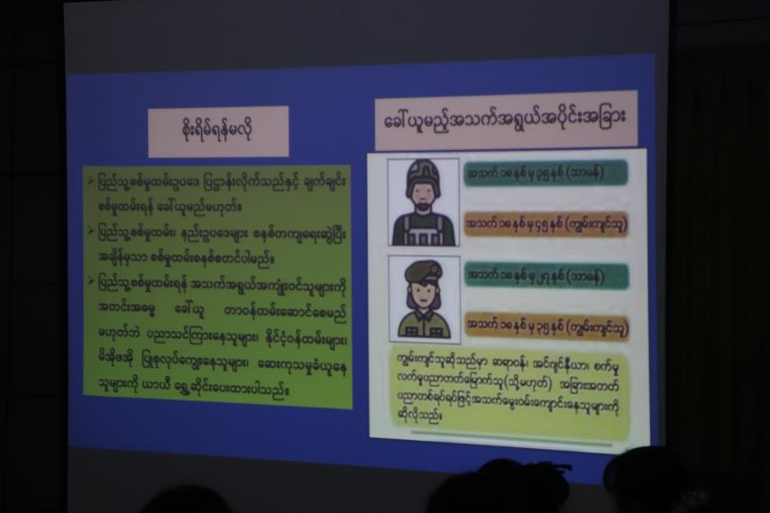 တိုင်းရင်းသားလူမျိုးများရေးရာဝန်ကြီးဌာန၊ ဒုတိယဝန်ကြီး ပြည်ထောင်စုတိုင်းရင်းသားကျေးရွာ(ရန်ကုန်)တွင် လုပ်ငန်းဆောင်ရွက်ပြီးစီးမှု နှင့် ပြည်သူ့စစ်မှုထမ်းဥပဒေနှင့်ပတ်သက်၍ အသိပညာပေးဟောပြောပို့ချခြင်း ၂၀၂၄ခုနှစ်၊ မတ်လ (၂၂)ရက်
