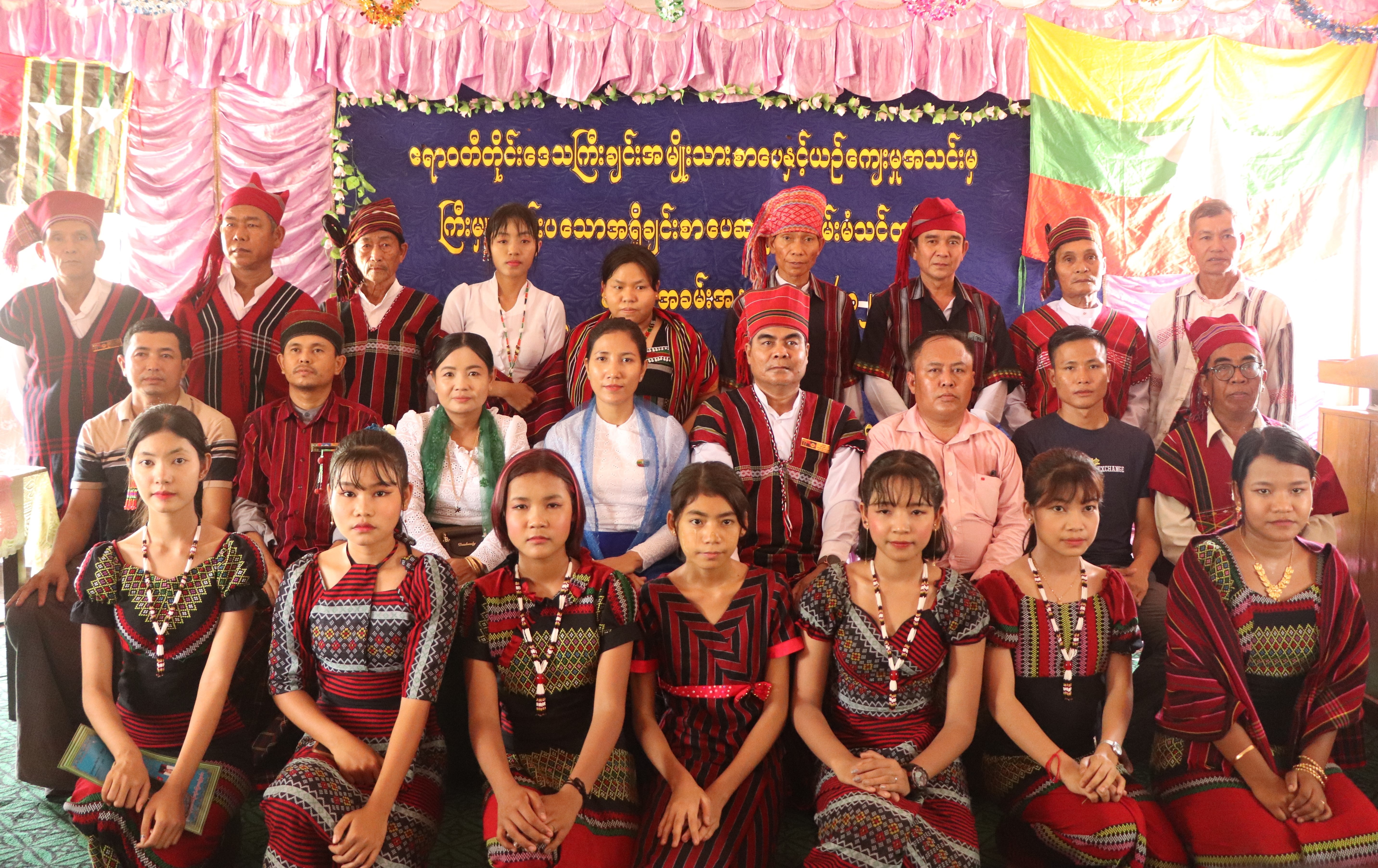 ဧရာဝတီတိုင်းဒေသကြီး၊ တိုင်းရင်းသားစာပေနှင့်ယဉ်ကျေးမှုဦးစီးဌာန၊ ညွှန်ကြားရေးမှူးရုံး အနေဖြင့် ချင်းအမျိုးသားစာပေနှင့်ယဉ်ကျေးမှုအသင်းနှင့် ပူးပေါင်း၍ တိုင်းဒေသကြီးအစိုးရအဖွဲ့၏ ခွင့်ပြုရန်ပုံငွေဖြင့် နွေရာသီ အရှိုချင်းစာပေဆရာဖြစ်မွမ်းမံသင်တန်း အမှတ်စဉ် (၁/၂၀၂၄) သင်တန်း ဆင်းပွဲအခမ်းအနားကို ၂၀၂၄ ခုနှစ်၊ ဧပြီလ ၆ ရက်နေ့တွင် မြန်အောင်မြို့နယ်၊ ရေတာကျေးရွာ၊ အ.လ.က-ဘန့်ဘွေးကုန်းကျောင်း၌ ကျင်းပပြုလုပ်ခဲ့ရာ အခမ်းအနားသို့ တိုင်းရင်းသားစာပေနှင့်ယဉ်ကျေးမှုဦးစီး ဌာနမှ တာဝန်ခံအရာရှိနှင့်အတူ အမှုထမ်းများ၊ သက်ဆိုင်ရ ဌာနများမှ တာဝန်ရှိသူများ၊ ချင်းအမျိုးသား စာပေနှင့်ယဉ်ကျေးမှုအသင်းဝင်များ၊ ချင်းတိုင်းရင်းသားဘာသာစာပေသင် TA/LT ဆရာ၊ ဆရာမ များနှင့် ဖိတ်ကြားထားသောဧည့်သည်တော်များ တက်ရောက်ခဲ့ကြပါသည်။