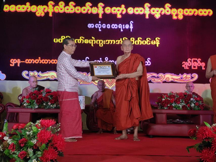 အခမ်းအနားတွင် မွန်ပြည်နယ်အစိုးရအဖွဲ့ဝင် တိုင်းရင်းသားရေးရာဝန်ကြီး ဦးခင်မောင်ဦးက အမှာစကားပြောကြားခဲ့ပြီး မွန်ပြည်နယ်အစိုးရအဖွဲ့မှ ထောက်ပံ့သော ရန်ပုံငွေကျပ်သိန်း(၃၁၀)အား စီးပွားရေးရာဝန်ကြီးမှ နာယက ဆရာတော်ထံ ပေးအပ်ခဲ့ပြီး ထူးချွန်ဆုရ သင်တန်းသား/သူများအား ဆုချီးမြှင့်ခြင်းနှင့် သင်တန်းဆင်း လက်မှတ်များ ပေးအပ်ခဲ့ကြောင်း သတင်းရရှိပါသည်။