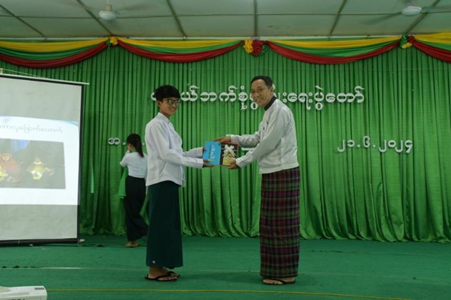 ထို့နောက် ကချင်ပြည်နယ် စာကြည့်တိုက်များဖောင်ဒေးရှင်းဥက္ကဋ္ဌ စာရေးဆရာ အကြီးကိုကို (ကသာ)က လူငယ်ဘက်စုံဖွံ့ဖြိုးရေးပွဲတော် ကျင်းပရခြင်း၏ ရည်ရွယ်ချက်များကို ရှင်းလင်းတင်ပြပြီး ပြည်နယ်ဝန်ကြီးချုပ်က လူငယ်ဘက်စုံဖွံ့ဖြိုးရေးပွဲတော် အထိမ်းအမှတ်အထက်တန်းအဆင့် စာစီစာကုံး ပြိုင်ပွဲတွင် ဆုရရှိသူများအား ဂုဏ်ပြုဆုတံဆိပ်၊ ဂုဏ်ပြုချီးမြှင့်ငွေနှင့် ဂုဏ်ပြုမှတ်တမ်းလွှာ များကိုလည်းကောင်း၊ ပြည်နယ်လူမှုရေးရာဝန်ကြီးက ပွဲတော်တွင် ပါဝင်ကူညီခဲ့ကြသော အကအဖွဲ့များ နှင့် ဘင်ခရာအဖွဲ့တို့အတွက် ဂုဏ်ပြုချီးမြှင့်ငွေများကိုလည်းကောင်း အသီးသီး ချီးမြှင့်ခဲ့ကြကာ Grade-4 ကျောင်းသူလေးများ၏ အကအလှများဖြင့် ဖျော်ဖြေတင်ဆက်မှုကိုလည်း ကြည့်ရှုအားပေးခဲ့ကြပါသည်။