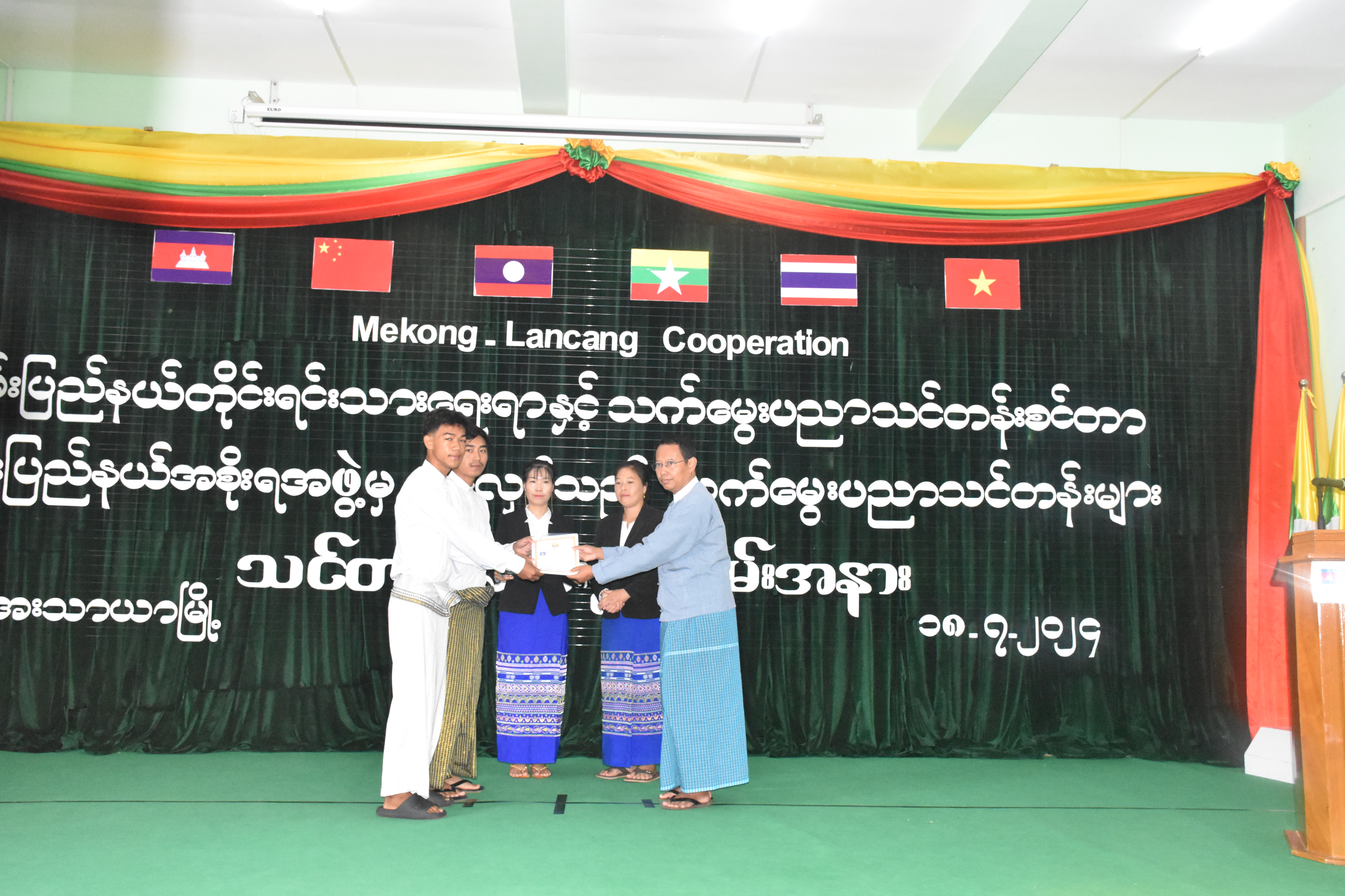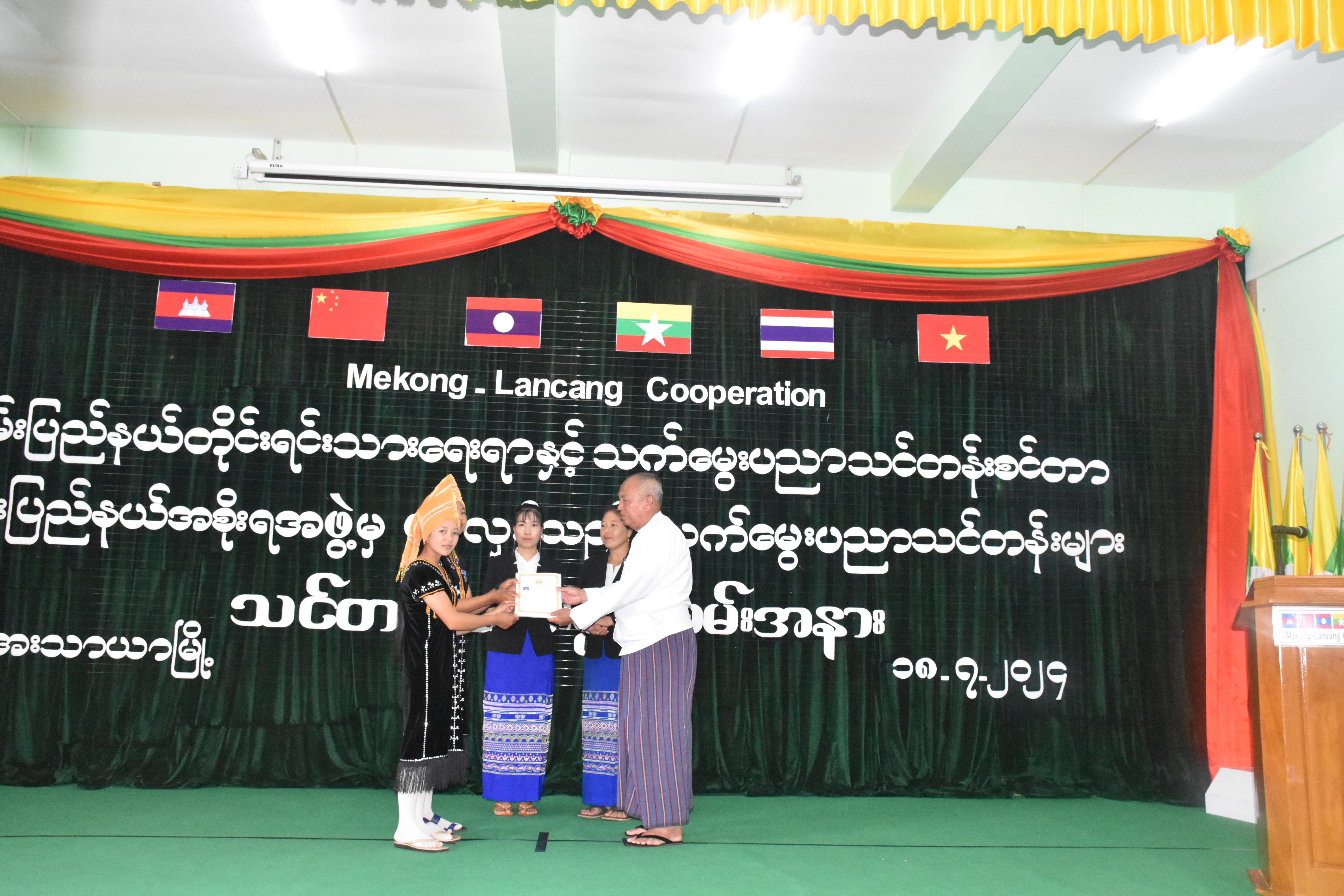 အခမ်းအနားတွင် ရှမ်းပြည်နယ်ဝန်ကြီးချုပ် ဦးအောင်အောင်နှင့် ရှမ်းပြည်နယ်အစိုးရအဖွဲ့ဝင်၊ တိုင်းရင်းသားရေးရာဝန်ကြီး ဦးအောင်ကြည်ဝင်းတို့က အမှာစကားပြောကြားခဲ့ပါသည်။ ရှမ်းပြည်နယ် ဝန်ကြီးချုပ်၊ ရှမ်းပြည်နယ်အစိုးရအဖွဲ့ဝင်ဝန်ကြီးများနှင့် တိုင်းရင်းသားအခွင့်အရေးများကာကွယ် စောင့်ရှောက်ရေးဦးစီးဌာန၊ ညွှန်ကြားရေးမှူးချုပ် ဦးမင်းအေးကို တို့ကရှမ်းပြည်နယ် အစိုးရအဖွဲ့မှ ထောက်ပံ့ပေးသည့် ထောက်ပံ့ပစ္စည်းများ၊ သင်တန်းဆင်းလက်မှတ်များကို သင်တန်းသား/သူများ အား ပေးအပ်ခဲ့ပါသည်။