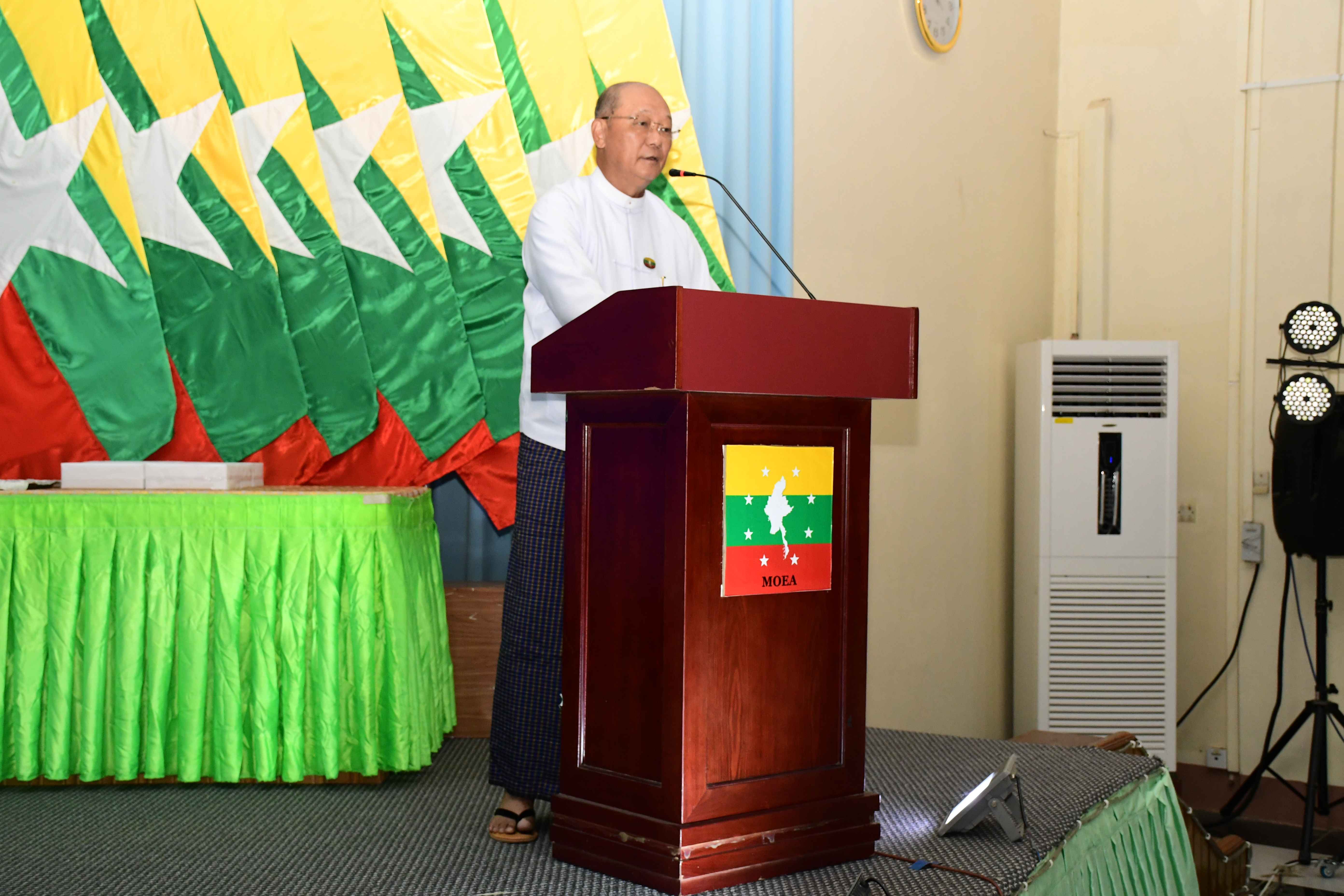 ရှေးဦးစွာ ပြည်ထောင်စုဝန်ကြီးက အဖွင့်အမှာစကားပြောကြားရာတွင် လူသားတိုင်းသည် ပညာကို မွေးကင်းစအရွယ်မှစ၍ ဘဝတစ်သက်စာ လေ့လာသင်ယူခြင်းဖြင့် ရှင်သန်နေထိုင်ကြရပါကြောင်း၊ လေ့လာသင်ယူခြင်းသည် ကျွမ်းကျင်တတ်မြောက်စေရေးအတွက် ပထမဦးဆုံး ခြေလှမ်းပင်ဖြစ်ပြီး ထိုမှတစ်ဆင့် ဒုတိယခြေလှမ်းဖြစ်သည့် လေ့ကျင့်မှုများကို ပြုလုပ်ကြရပါကြောင်း၊ သင်တန်းသားများအနေဖြင့် သင်တန်းမှပို့ချလိုက်သည့် နည်းပညာရပ်များကို အသုံးပြု၍ ကိုယ်တိုင် ကိုယ်ကျ လက်တွေ့လေ့ကျင့်မှုများကို စဉ်ဆက်မပြတ် ဆက်လက် လုပ်ဆောင်သွားကြရန် လိုအပ်ပါကြောင်း၊ ယနေ့ခေတ်တွင် ကွန်ပျူတာပညာရပ်သည် လူမှုစီးပွားရေး ဆောင်ရွက်မှုတိုင်းအတွက် မရှိမဖြစ်အရေးပါသော ခေတ်မီ နည်းပညာရပ်တစ်ခုဖြစ်သဖြင့် ဝန်ထမ်းများ အားလုံး လေ့လာဆည်းပူးထားကြရန် လိုအပ်ပါကြောင်း၊ မိမိတို့ဌာန၊ ဌာနခွဲ၊ ဌာနစု၊ ဌာနစိတ်များ၌ အသုံးပြုနေသည့် ကွန်ပျူတာများကို ပုံမှန်စစ်ဆေးပြီး ပြုပြင်ထိန်းသိမ်းမှုများ ပြုလုပ်သွားကြရန်နှင့် တစ်စုံတစ်ရာ ချို့ယွင်းမှုရှိလာသည့်အခါ သင်တန်းမှလေ့လာသိရှိခဲ့သော ပညာရပ် များကို ပြန်လည်အသုံးချမည်ဆိုပါက ပြင်ပမှဝန်ဆောင်မှုများ မလိုအပ်သဖြင့် ဌာနလုံခြုံရေး ကောင်းမွန်စေခြင်းနှင့် နိုင်ငံတော်ဘဏ္ဍာငွေကို ခြိုးခြံချွေတာရာရောက်ပြီး ရုံးလုပ်ငန်းများကို အချိန်မီ ဆောင်ရွက်နိုင်မည်ဖြစ်ပါကြောင်း၊ ICT (Information and Communication Technology) ကို အသုံးချ၍ စွမ်းဆောင်ရည်ပြည့်ဝသော၊ ဖန်တီးနိုင်စွမ်းရှိသော ဝန်ထမ်းကောင်းများ ဖြစ်လာစေရေး ကြိုးစားကြစေလိုပါကြောင်း၊ မိမိတို့၏စွမ်းဆောင်ရည်များ မြင့်မားတိုးတက်စေခြင်းဖြင့် နိုင်ငံတော်နှင့် ဝန်ကြီးဌာန၏ လုပ်ငန်းစဉ်၊ မျှော်မှန်းချက်၊ မူဝါဒနှင့် ရည်မှန်းချက်များကို အကောင်အထည်ဖော်ရာတွင်လည်း အထောက်အပံ့ကောင်းများ ရရှိစေနိုင်မည်ဖြစ်ပါကြောင်း၊ တိုင်းပြည်တစ်ပြည် ဖွံ့ဖြိုးတိုးတက်ခြင်း၏ အခြေခံအနေဖြင့် အသိပညာ၊ အတတ်ပညာနှင့် ပြည့်စုံသည့် လူ့စွမ်းအားအရင်းအမြစ်ကောင်းများ မရှိမဖြစ်လိုအပ်ပါကြောင်း၊ နိုင်ငံတော် ဖွံ့ဖြိုး တိုးတက်ရေးလုပ်ငန်းစဉ်များတွင် ဝန်ထမ်းများအနေဖြင့် နိုင်ငံတော်အပေါ် သစ္စာရှိသော၊ အသိပညာ၊ အတတ်ပညာနှင့် ပြည့်စုံသော၊ အားကိုးအားထားပြုနိုင်သော စွမ်းဆောင်ရည်မြင့်မားသည့် နိုင်ငံ့ဝန်ထမ်းကောင်းများဖြစ်စေရေး အထူးကြိုးပမ်းဆောင်ရွက်သွားကြရန် တိုက်တွန်းပြောကြား ပါသည်။