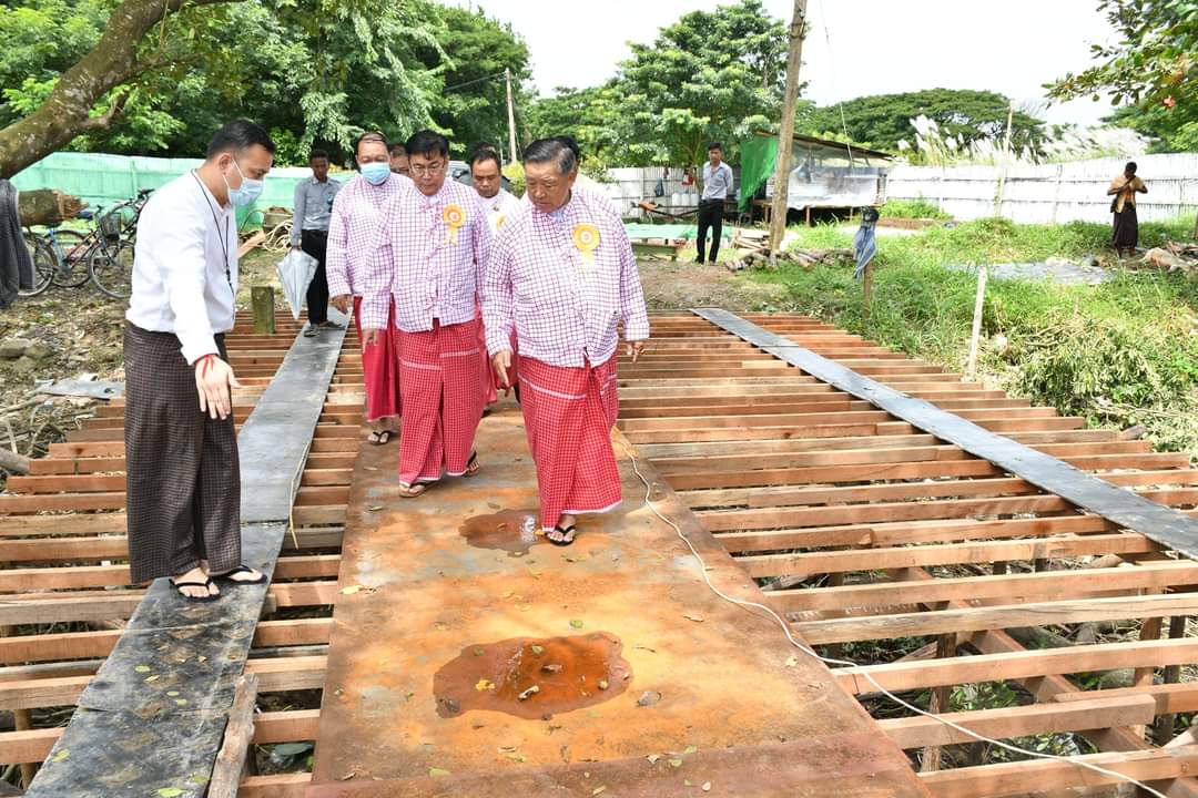 ပြည်ထောင်စုဝန်ကြီး ဦးစောထွန်းအောင်မြင့် ပြည်ထောင်စုတိုင်းရင်းသားကျေးရွာ (ရန်ကုန်) ဆိပ်ခံဗောတံတားတည်ဆောက်ပြီးစီးမှုအခြေအနေများကို ကြည့်ရှုစစ်ဆေး