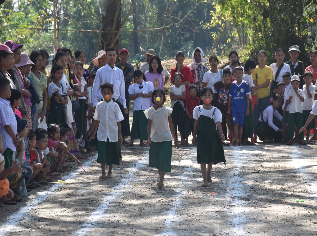 ထို့နောက် ဗလငါးတန်နှင့် ပြည့်စုံသော ပြပွဲပြိုင်ပွဲများဖြစ်သည့် အာလူးကောက်ပြိုင်ပွဲ၊ ဘောလုံးပြိုင်ပွဲ၊ ကဗျာရွတ်ပြိုင်ပွဲ၊ ပန်းချီပြိုင်ပွဲ၊ ဆေးရောင်ချယ်ပြိုင်ပွဲ၊ စက္ကူဖြင့် စုပေါင်းအရုပ် ခေါက်ပြိုင်ပွဲ၊ ဉာဏ်စမ်းမေးခွန်းများဖြေဆိုခြင်း စသည့်ပြိုင်ပွဲများကို ကျင်းပခဲ့ပြီး ဆုရရှိသည့် ကျောင်းသား/ ကျောင်းသူများအား ဆုများ ပေးအပ်ချီးမြှင့်ခဲ့ပါသည်။ ဆက်လက်၍ အားကစားပစ္စည်းများပေးအပ်ခဲ့ရာ ကျောင်းအုပ်ဆရာမကြီး ဒေါ်သန်းသန်းမြင့်က လက်ခံရယူခဲ့ပြီး ကျေးဇူးတင်စကား ပြောကြားခဲ့ပါသည်။ ယင်းနောက် ကျောင်းသား/ ကျောင်းသူလေးများက ဝါးညှပ်အက၊ ဒုံးယိမ်းအကများဖြင့် ကပြဖျော်ဖြေခဲ့ပြီး စုပေါင်းမှတ်တမ်းတင်ဓါတ်ပုံများ ရိုက်ကူးခြင်းတို့ကို ဆောင်ရွက်ခဲ့ကြောင်း သိရှိရပါသည်။