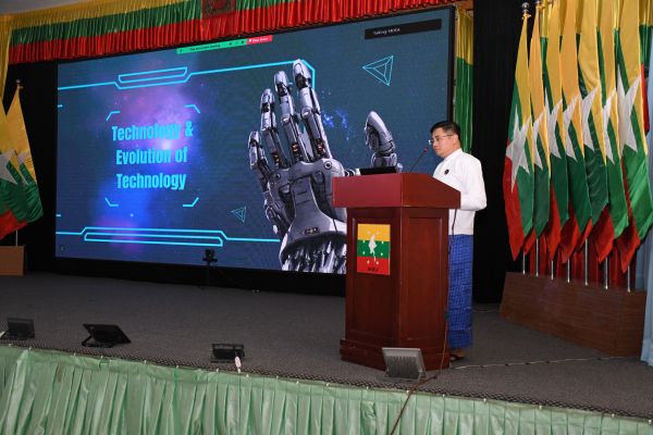 ဦးစွာ ပြည်ထောင်စုဝန်ကြီးက အဖွင့်အမှာစကားပြောကြားရာတွင် AI နည်းပညာသည် လူသားများ၏ လုပ်ဆောင်နိုင်စွမ်းကို အတုယူပြီး ပြဿနာများကို ဖြေရှင်းရန်နှင့် ဆုံးဖြတ်ချက်များ ချမှတ်ရန်အတွက် ကွန်ပျူတာများနှင့် စက်များကို အသုံးပြုထားသည့် နည်းပညာဖြစ်ပါကြောင်း၊ အထူးသဖြင့် ကွန်ပျူတာများ၊ စက်များက လူသားတို့၏ အသိဉာဏ်ကဲ့သို့ မျှတစွာတွေးခေါ် နိုင်စွမ်း၊ သင်ယူနိုင်စွမ်း၊ ဆုံးဖြတ်နိုင်စွမ်း၊ ပြဿနာများကို ဖြေရှင်းနိုင်စွမ်းရှိသည့် ဉာဏ်ရည်တု နည်းပညာတစ်ခုပင်ဖြစ်ပါကြောင်း၊ AI နည်းပညာကို တာဝန်ယူမှုရှိစွာနဲ့ တီထွင်အသုံးချမည် ဆိုပါက လူသားများအတွက် အကျိုးများနိုင်သလို တာဝန်မဲ့စွာ အသုံးချပါက အန္တရာယ်ဖြစ်စေနိုင် သည်ကိုလည်း သတိပြုရမည်ဖြစ်ပါကြောင်း၊ နိုင်ငံတော်အနေဖြင့်လည်း e-Government စနစ်မှသည် Digital Government သို့ ဦးတည်၍ ဆက်လက်အကောင်အထည်ဖော်နိုင်ရန် ဆောင်ရွက်လျက်ရှိပြီး ဝန်ထမ်းများအနေဖြင့်လည်း AI နှင့်ပတ်သက်၍ စိတ်ပါဝင်စားစွာ လေ့လာမှတ်သားကြရန် လိုအပ်မည်ဖြစ်ပါကြောင်း၊ ယနေ့ ကျင်းပပြုလုပ်သည့် AI ဆွေးနွေးပွဲမှ တစ်ဆင့် နည်းပညာဆိုင်ရာ အသိပညာဗဟုသုတများစွာရရှိပြီး မိမိဌာနနှင့် နိုင်ငံတော်အတွက် အကျိုးပြုသော နိုင်ငံ့ဝန်ထမ်းကောင်းများ ဖြစ်လာစေရေးအတွက် ကြိုးပမ်းဆောင်ရွက် သွားကြ ရမည်ဖြစ်ပါကြောင်း ပြောကြားပါသည်။