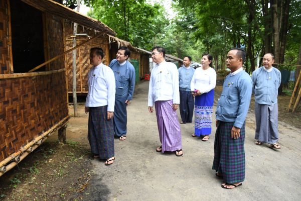 ယင်းနောက် ပြည်ထောင်စုဝန်ကြီး၊ ဒုတိယဝန်ကြီးနှင့် တာဝန်ရှိသူများသည် ဝန်ထမ်းမိသားစုများ ဘာရှာများတွင် အခြေတကျနေထိုင်နေမှုအခြေအနေ၊ Modular House များ ဆောက်လုပ် ပြီးစီးမှုအခြေအနေ၊ လျှပ်စစ်မီးသွယ်တန်းပြီးစီးမှုနှင့် သုံးရေသွယ်တန်းထားရှိမှု အခြေအနေများကို ကြည့်ရှုစစ်ဆေး၍ ဝန်ထမ်းမိသားစုများ အမြန်ဆုံးနေထိုင်နိုင်ရေး စီစဉ်ဆောင်ရွက်ရန် မှာကြားခဲ့ပြီး လိုအပ်သည်များကို ပေါင်းစပ်ညှိနှိုင်းဖြည့်ဆည်း ဆောင်ရွက်ပေးခဲ့ပါသည်။