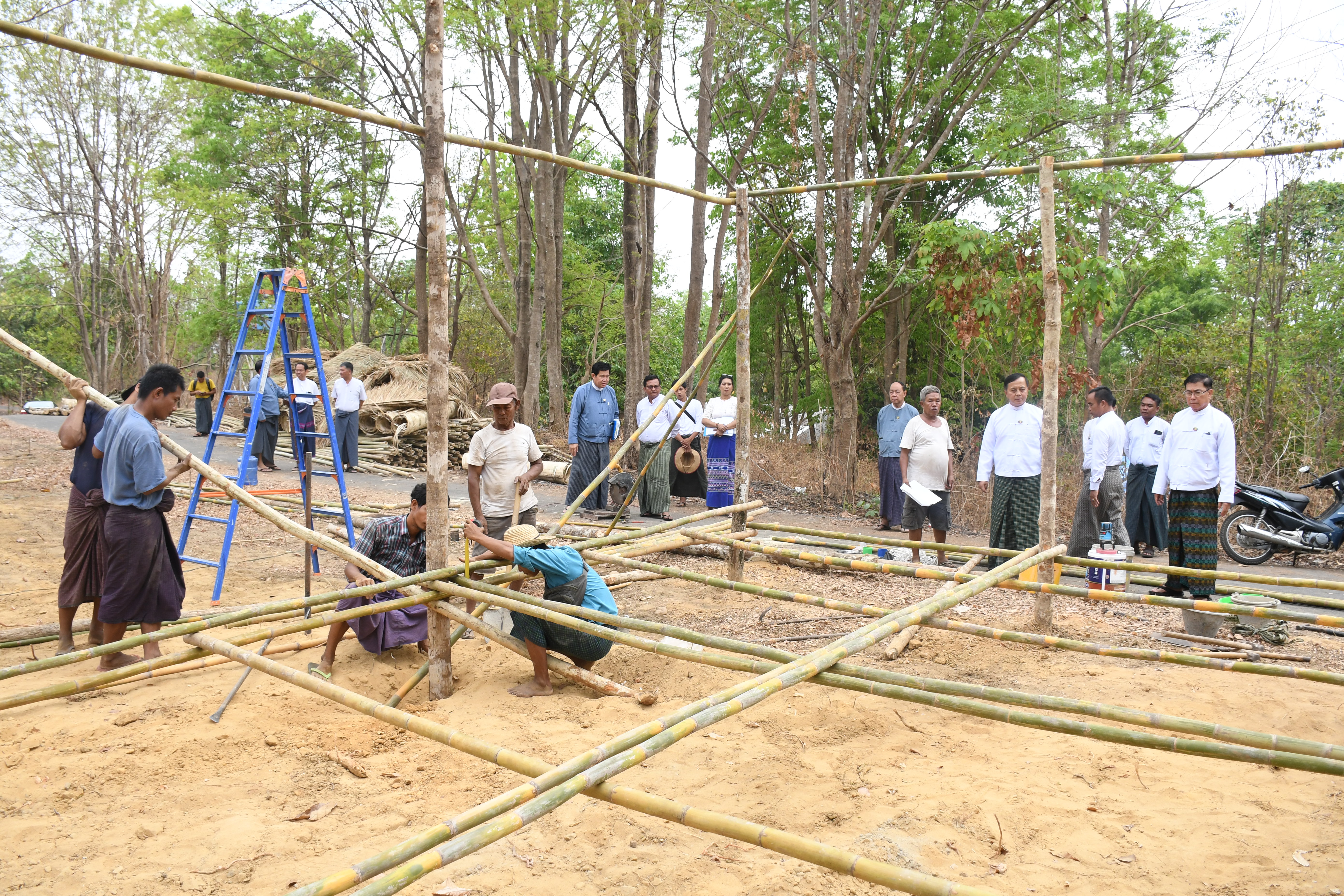 ပြည်ထောင်စုဝန်ကြီးနှင့် ဒုတိယဝန်ကြီးတို့သည် ယာယီတဲဆောက်လုပ်ရန်အတွက် မြေနေရာအား ပန္နက်ရိုက်သွင်းပေးခဲ့ပြီး ယာယီနေအိမ်ဆောက်လုပ်နေမှုအား ကြည့်ရှုစစ်ဆေးခဲ့ ပါသည်။