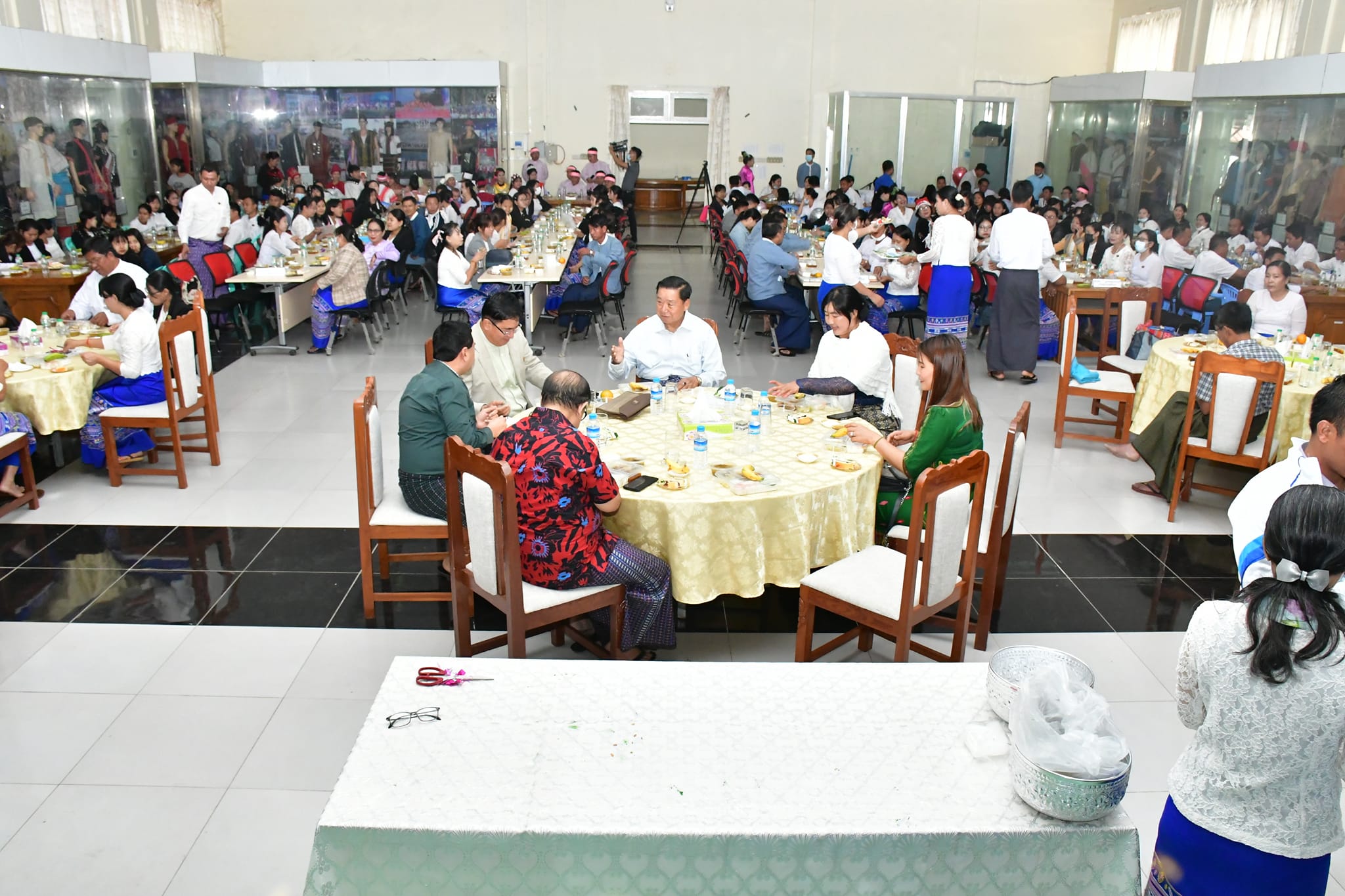 ထို့နောက် ပြည်ထောင်စုဝန်ကြီးမိသားစုက ဌာနရှိဝန်ထမ်းများအား ခရစ္စမတ် လက်ဆောင် ကံစမ်းမဲများ ဖောက်ပေးပြီး ဝန်ထမ်းများနှင့်အတူတကွ လက်ရည်တပြင်တည်း ပျော်ပျော်ပါးပါး နေ့လည်စာသုံးဆောင်နေစဉ် ဝန်ထမ်းများက ခရစ္စမတ်တေးသီချင်းများ၊ တိုင်းရင်းသား တေးသီချင်းများ၊ အဆိုအကများဖြင့် သီဆို၊ ကပြ ဖျော်ဖြေခဲ့ကြရာ ဂုဏ်ပြု ဆုငွေများချီးမြှင့်၍ အခမ်းအနားကို ရုပ်သိမ်းခဲ့ကြောင်း သိရှိရပါသည်။