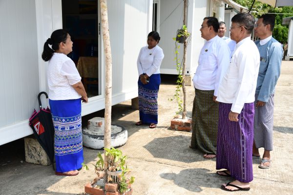 ဆက်လက်၍ ပြည်ထောင်စုဝန်ကြီးနှင့်အဖွဲ့သည် တိုင်းရင်းသားလူမျိုးများရေးရာ ဝန်ကြီးဌာန၊ ရုံးမြေဧရိယာအတွင်း၌ ဆောက်လုပ်ထားသော ငလျင်ဒဏ်သင့် ဝန်ထမ်းများ ယာယီနေထိုင်ရာ Container House များတွင် ဝန်ထမ်းများမိသားစုအလိုက် နေအိမ်နေထိုင်မှု အခြေအနေများ ကြည့်ရှုစစ်ဆေးပြီး ဝန်ထမ်းမိသားစုများအနေဖြင့် သန့်ရှင်းသပ်ရပ်စွာ နေထိုင်ကြစေရေး မှာကြားပြီး အားပေးစကား ပြောကြားကာ လိုအပ်သည်များကို ဖြည့်ဆည်း ဆောင်ရွက် ပေးခဲ့ကြောင်း သိရှိရပါသည်။