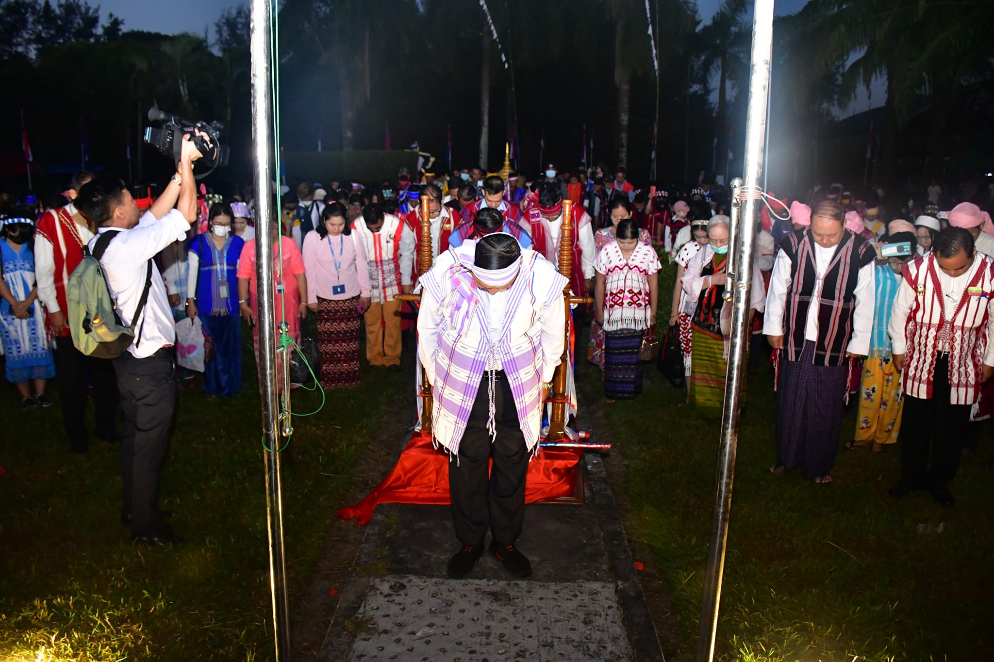 ပထမဦးစွာ နိုင်ငံတော်စီမံအုပ်ချုပ်ရေးကောင်စီအဖွဲ့ဝင်များဖြစ်ကြသည့် Jeng Phang နော်တောင်၊ ဦးစောဒန်နီရယ်၊ ပြည်ထောင်စုဝန်ကြီး ဦးစောထွန်းအောင်မြင့်၊ ရန်ကုန်တိုင်းဒေသကြီးအစိုးရအဖွဲ့ ဝန်ကြီးချုပ် ဦးစိုးသိန်းနှင့် ရန်ကုန်တိုင်းစစ်ဌာနချုပ် တိုင်းမှူး ဗိုလ်ချုပ်ညွန့်ဝင်းဆွေတို့က ဖားစည် (၉)ချက်တီးကာ ကရင်လူငယ် (၉)ဦးက ကျွဲဂျိုမှုတ်ပြီး ပဲခူးရိုးမတောင်ပေါ်ကရင်ရိုးရာအိုးစည်အကဖြင့် အခမ်းအနားကို ဖွင့်လှစ်ခဲ့ ပါသည်။