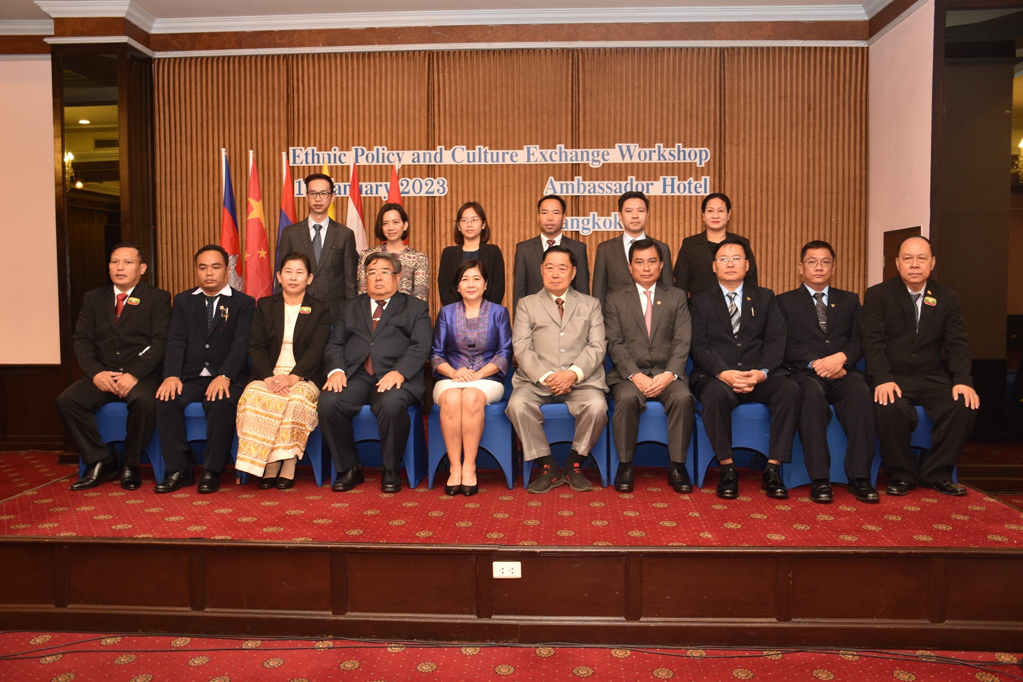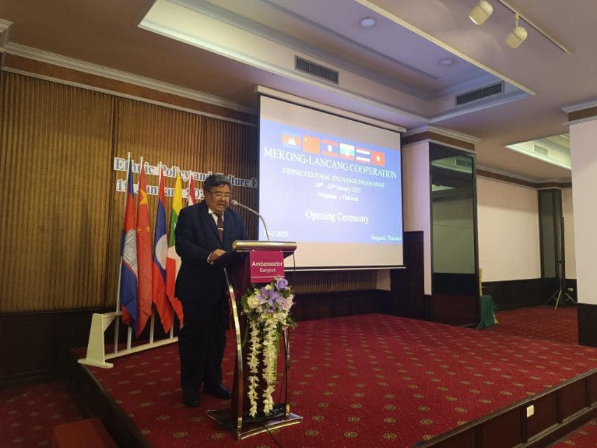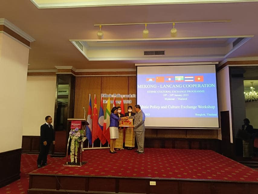 မဲခေါင်-လန်ချန်း ပူးပေါင်းဆောင်ရွက်မှုအထူးရန်ပုံငွေ(၂၀၂၀)ဖြင့် တိုင်းရင်းသားရေးရာ ယဉ်ကျေးမှုဖလှယ်ရေးအစီအစဉ်အရ တိုင်းရင်းသားရေးရာ မူဝါဒနှင့် ယဉ်ကျေးမှုဖလှယ်ရေး ဆွေးနွေးပွဲ ဖွင့်ပွဲအခမ်းအနားကို ယနေ့နံနက်ပိုင်း၌ ထိုင်းနိုင်ငံ၊ ဘန်ကောက်မြို့၊ Ambassador Hotel တွင် ကျင်းပပြုလုပ်ရာ တိုင်းရင်းသားလူမျိုးများရေးရာဝန်ကြီးဌာန၊ ပြည်ထောင်စု ဝန်ကြီး ဦးစောထွန်းအောင်မြင့်၊ ကရင်ပြည်နယ်အစိုးရအဖွဲ့ဝင် တိုင်းရင်းသားရေးရာဝန်ကြီး ဦးစန်းကို၊ တနင်္သာရီတိုင်းဒေသကြီး အစိုးရအဖွဲ့ဝင် တိုင်းရင်းသားရေးရာဝန်ကြီး ဦးစောမာတင်လူသာ၊ ဝန်ကြီးဌာနမှကိုယ်စားလှယ်များနှင့် ထိုင်းနိုင်ငံ၊ လူမှုဘဝ လုံခြုံရေးနှင့် ဖွံ့ဖြိုးတိုးတက်ရေးဝန်ကြီးဌာန၊ နိုင်ငံခြားရေးဝန်ကြီးဌာန၊ တရားရေးဝန်ကြီးဌာန၊ ပြည်ထဲရေး ဝန်ကြီးဌာန၊ မဲခေါင်-လန်ချန်းဒေသတွင်း နိုင်ငံများ၏ သံရုံးများမှတာဝန်ရှိသူများ၊ ထိုင်းနိုင်ငံ ဆိုင်ရာ မြန်မာနိုင်ငံသံရုံးမှ သံအမတ်ကြီးဦးချစ်ဆွေ၊ သံရုံးတာဝန်ခံများနှင့် တာဝန်ရှိသူများ တက်ရောက်ခဲ့ကြပါသည်။