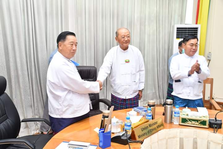 နိုင်ငံတော်စီမံအုပ်ချုပ်ရေးကောင်စီ ဗဟိုအကြံပေးအဖွဲ့ အဖွဲ့ခေါင်းဆောင် ဦးစောထွန်းအောင်မြင့်၊ တိုင်းရင်းသားလူမျိုးများရေးရာဝန်ကြီးဌာန ပြည်ထောင်စုဝန်ကြီး Jeng Phang နော်တောင်နှင့် ဝန်ထမ်းများ နှုတ်ဆက်တွေ့ဆုံခြင်း အခမ်းအနားကျင်းပ နေပြည်တော် ဖေဖော်ဝါရီ (၂)