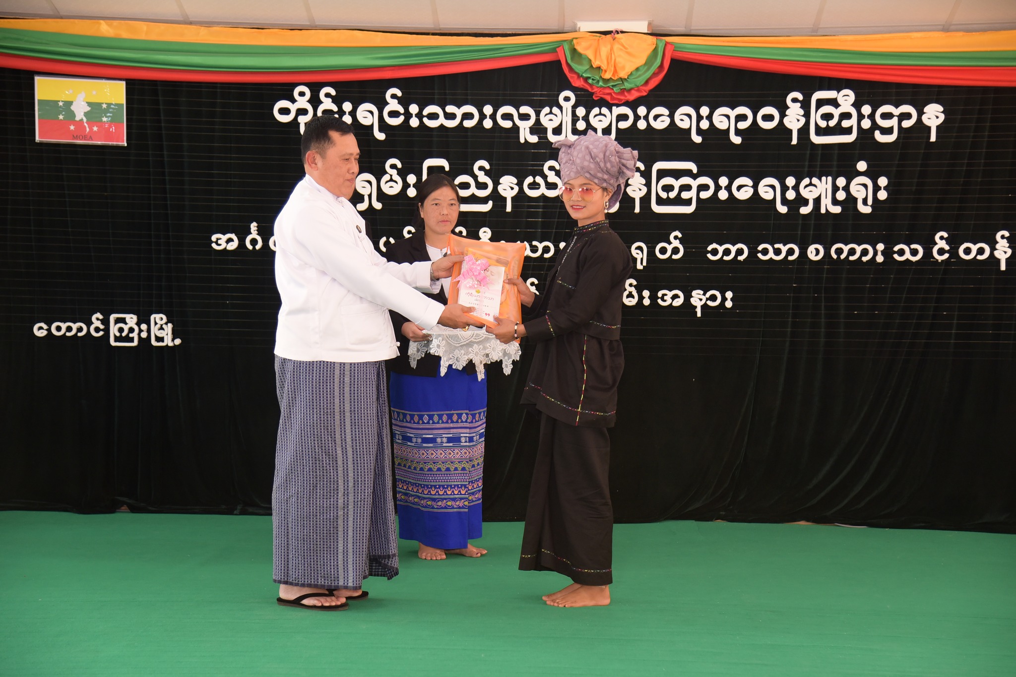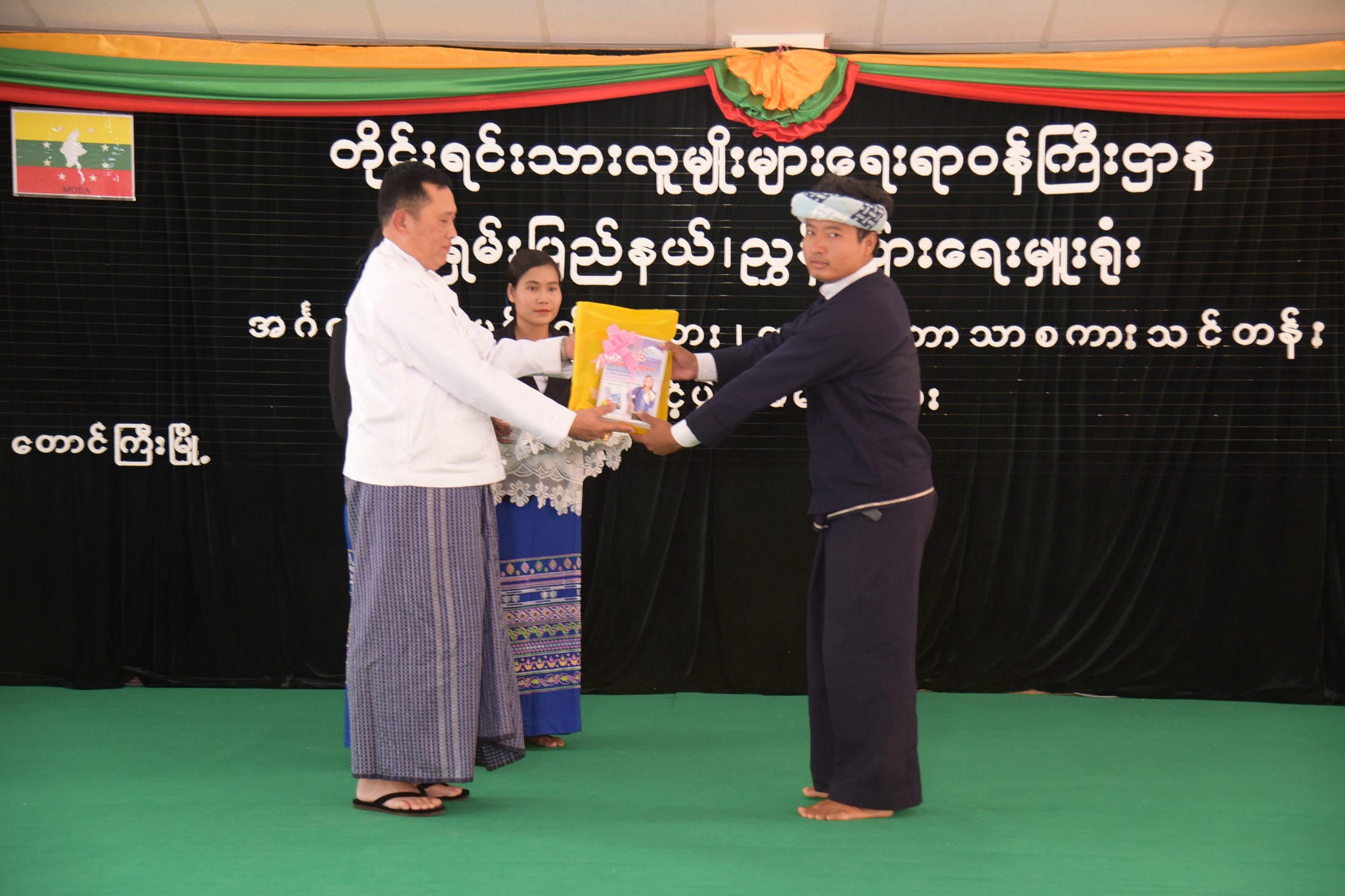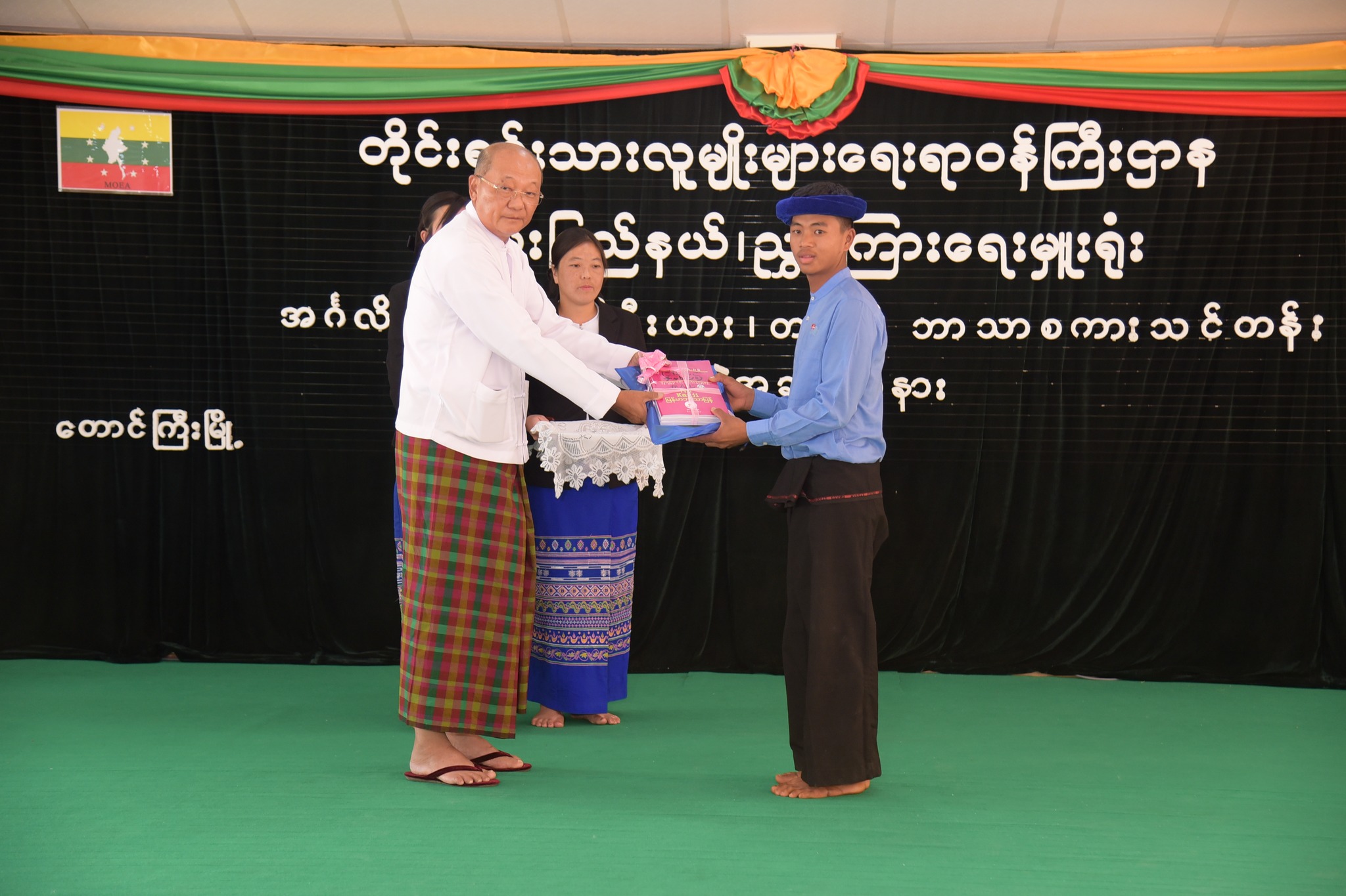 ၎င်းနောက် ပြည်ထောင်စုဝန်ကြီး Jeng Phang နော်တောင်နှင့် ရှမ်းပြည်နယ် ဝန်ကြီးချုပ် ဦးအောင်ဇော်အေးတို့က သင်တန်းသား/သင်တန်းသူများအား သင်ရိုး ညွှန်းတမ်းစာအုပ်များ၊ သင်ထောက်ကူပစ္စည်းများ၊ စားသောက်ကုန်ပစ္စည်းများနှင့် ထောက်ပံ့ ငွေများကို ပေးအပ်ခဲ့ပါသည်။ ယင်းနောက် ပြည်ထောင်စုဝန်ကြီး၊ ပြည်နယ်ဝန်ကြီးချုပ်နှင့် တာဝန်ရှိသူများသည် သင်တန်းနည်းပြဆရာများ၊ သင်တန်းသား/သူများနှင့်အတူ စုပေါင်းမှတ်တမ်းဓါတ်ပုံရိုက်ကူးကြပြီး ပြည်ထောင်စုဝန်ကြီးနှင့် ပြည်နယ်ဝန်ကြီးချုပ်တို့က သင်တန်းနည်းပြဆရာများ၊ သင်တန်းသား/သူများအား ရင်းရင်းနှီးနှီးလိုက်လံနှုတ်ဆက် ခဲ့ပါသည်။
