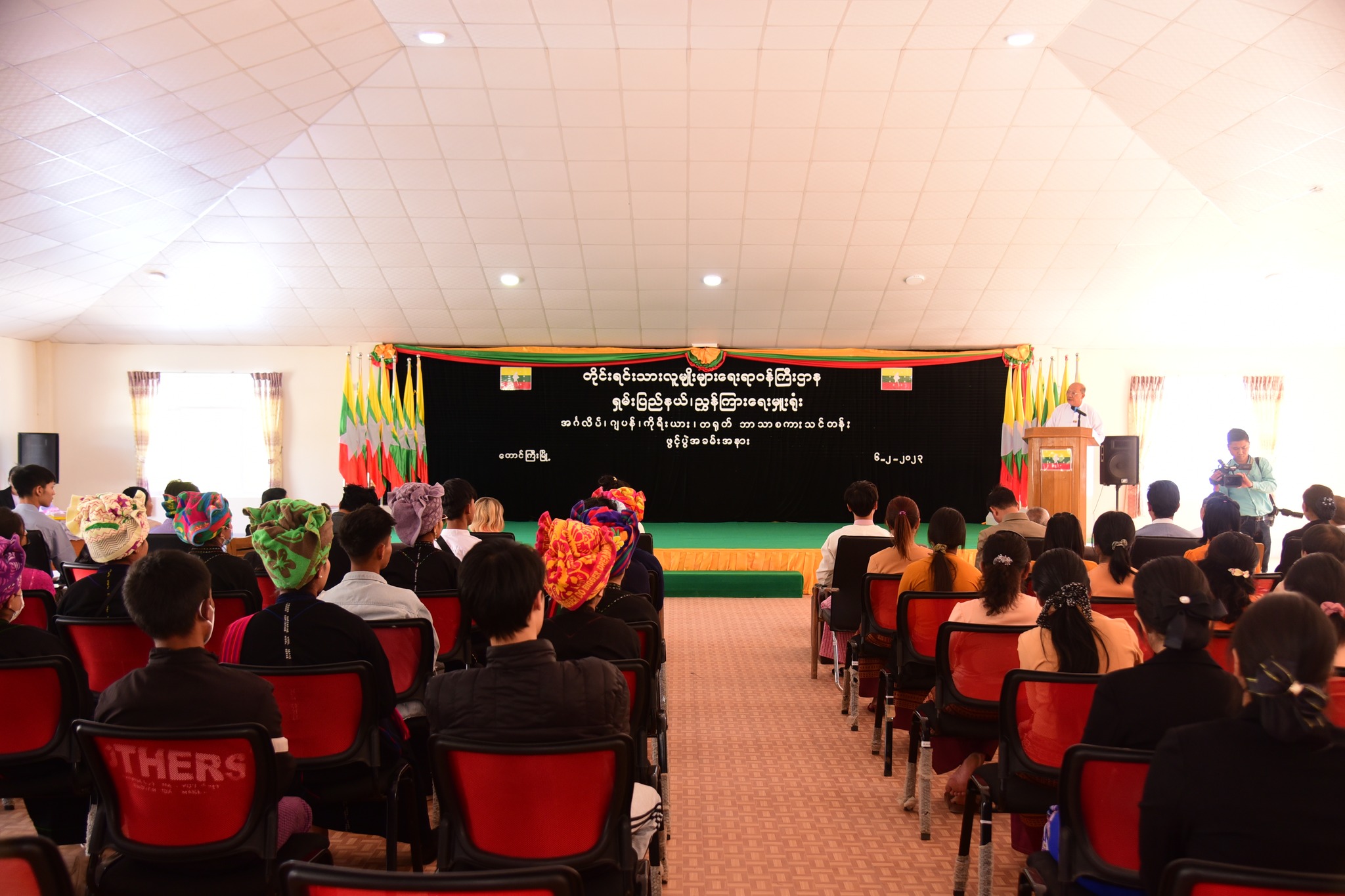 (၇၆) နှစ်မြောက် ရှမ်းပြည်နယ်နေ့ကို ကြိုဆိုဂုဏ်ပြုသောအားဖြင့် အင်္ဂလိပ်၊ ဂျပန်၊ ကိုးရီးယား၊ တရုတ် ဘာသာစကားသင်တန်းဖွင့်ပွဲအခမ်းအနားကို ဖေဖော်ဝါရီလ (၆) ရက်နေ့ နေ့လယ်ပိုင်းတွင် ရှမ်းပြည်နယ်၊ တောင်ကြီးမြို့နယ်ရှိ တိုင်းရင်းသားလူမျိုးများရေးရာဝန်ကြီးဌာန၊ ရှမ်းပြည်နယ် ညွှန်ကြားရေးမှူးရုံး၊ အစည်းအဝေးခန်းမ၌ ကျင်းပပြုလုပ်ရာ တိုင်းရင်းသားလူမျိုးများရေးရာဝန်ကြီးဌာန ပြည်ထောင်စုဝန်ကြီး Jeng Phang နော်တောင်၊ ရှမ်းပြည်နယ်အစိုးရအဖွဲ့ ဝန်ကြီးချုပ် ဦးအောင်ဇော်အေး၊ ပြည်နယ်အစိုးရအဖွဲ့ဝင် တိုင်းရင်းသားရေးရာဝန်ကြီး၊ ညွှန်ကြားရေးမှူးချုပ်၊ ဒုတိယညွှန်ကြားရေးမှူးချုပ်များ၊ ဝန်ထမ်းများ၊ သင်တန်းဆရာများနှင့် သင်တန်းသား/သူများ တက်ရောက်ကြပါသည်။