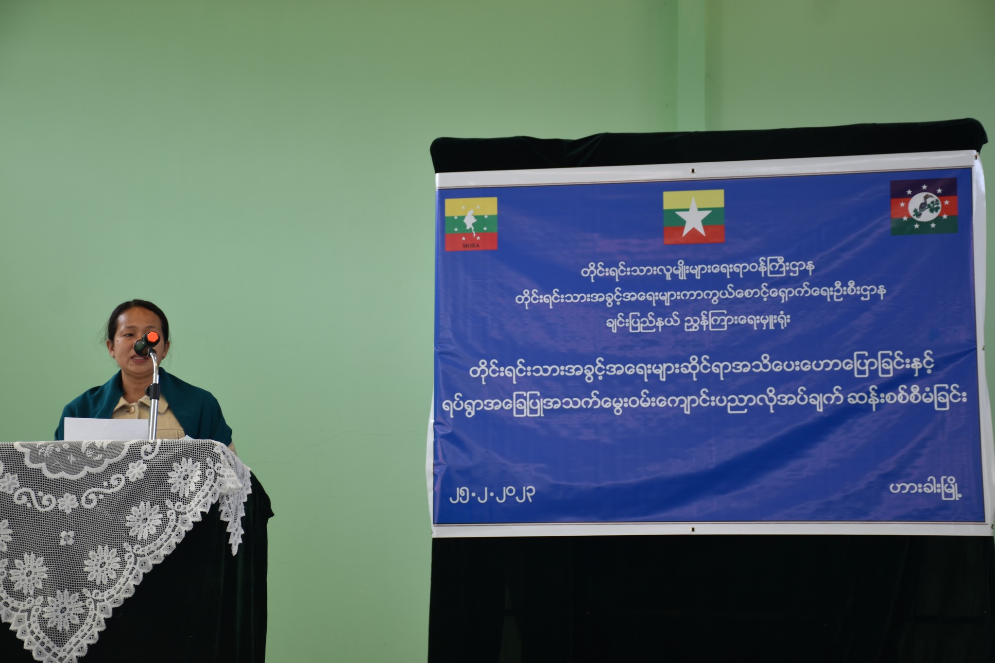 တိုင်းရင်းသားအခွင့်အရေးဆိုင်ရာပညာပေးဟောပြောခြင်းနှင့် ရပ်ရွာအခြေပြုအသက်မွေး ဝမ်းကျောင်းပညာလိုအပ်ချက်တို့ကို ဆန်းစစ်စီမံခြင်းအစီအစဉ် ချင်းပြည်နယ်တွင် ကျင်းပ ချင်း၊ ဖေဖေါ်ဝါရီ ၂၅ ရက်