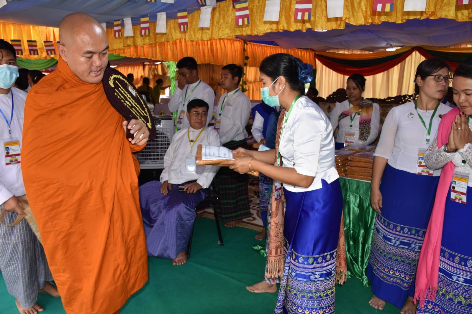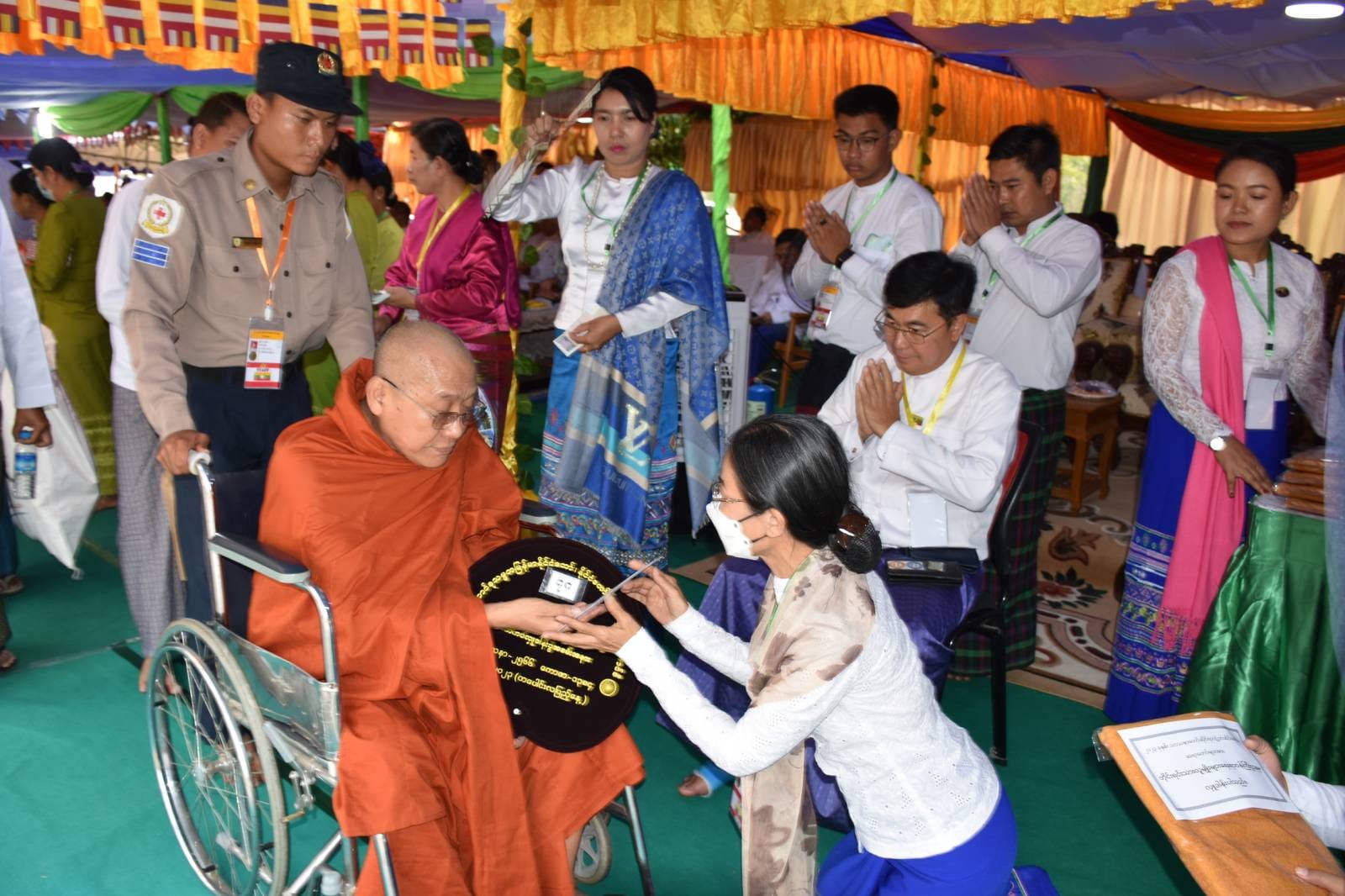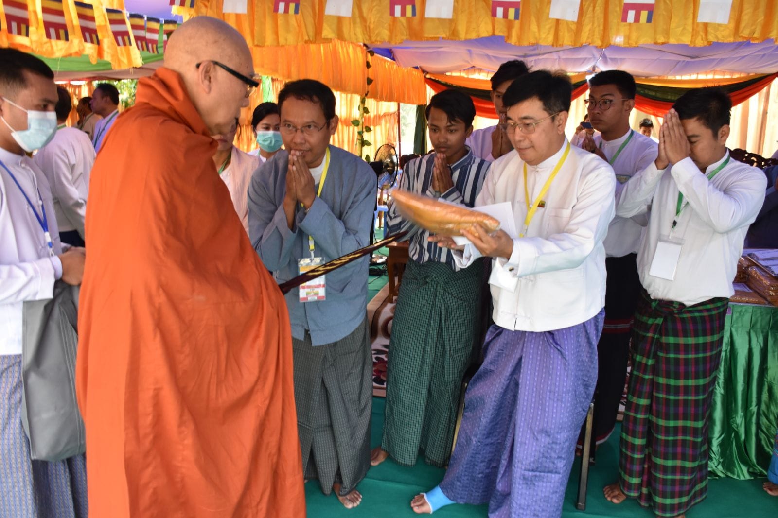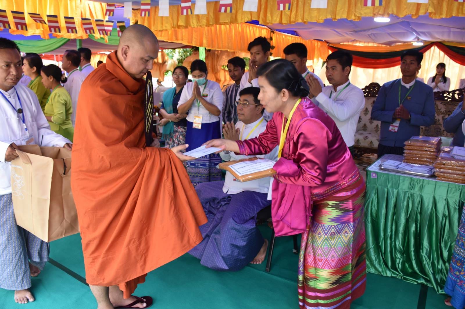 ၂၀၂၃ ခုနှစ် သာသနာတော်ဆိုင်ရာဘွဲ့တံဆိပ်တော်ဆက်ကပ်ပူဇော်ခံတော်မူကြသည့်ဆရာတော်များနှင့်သီလရှင်များအား ဆွမ်းဆန်စိမ်းလောင်းလှူပွဲတွင် တိုင်းရင်းသားလူမျိုးများရေးရာဝန်ကြီးဌာန ဒုတိယဝန်ကြီး ဦးဇော်အေးမောင် ပါဝင်ဆက်ကပ်လောင်းလှူ နေပြည်တော်၊ မတ် ၅