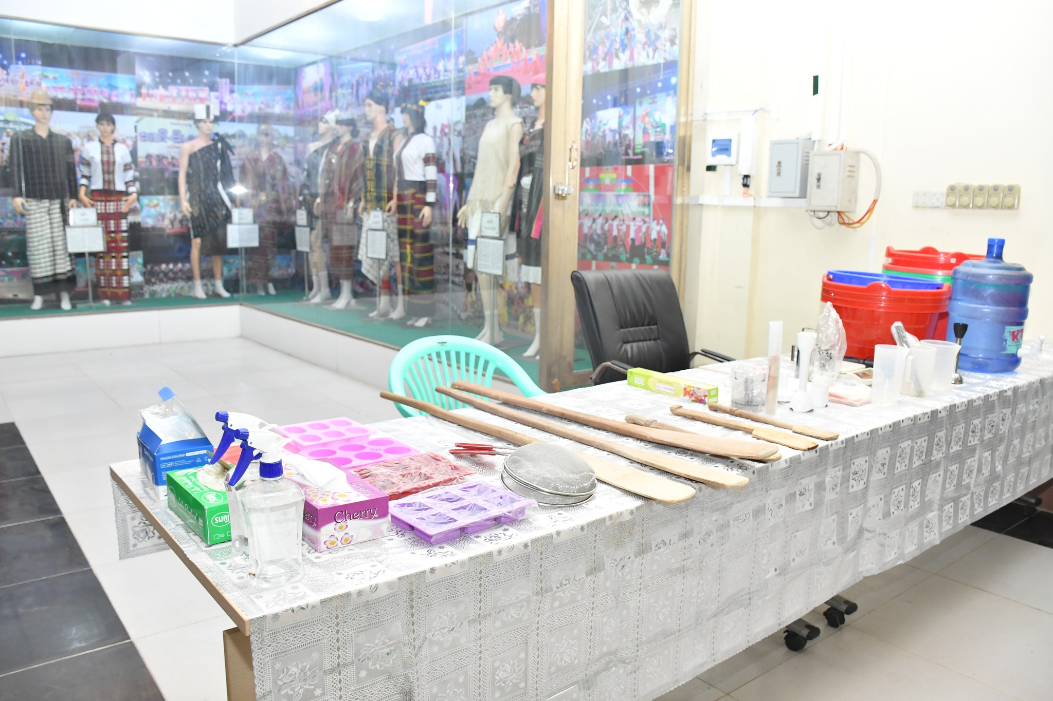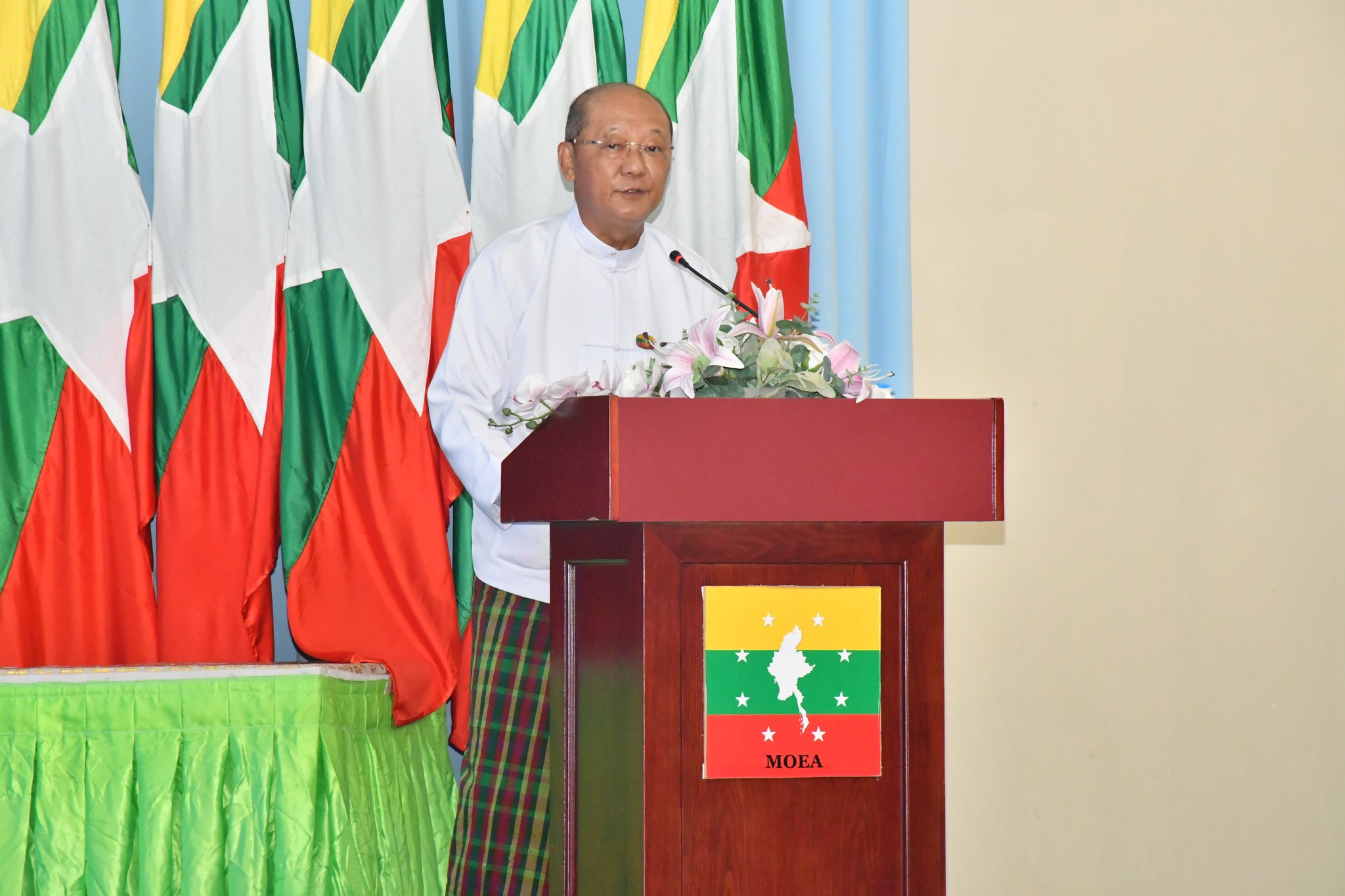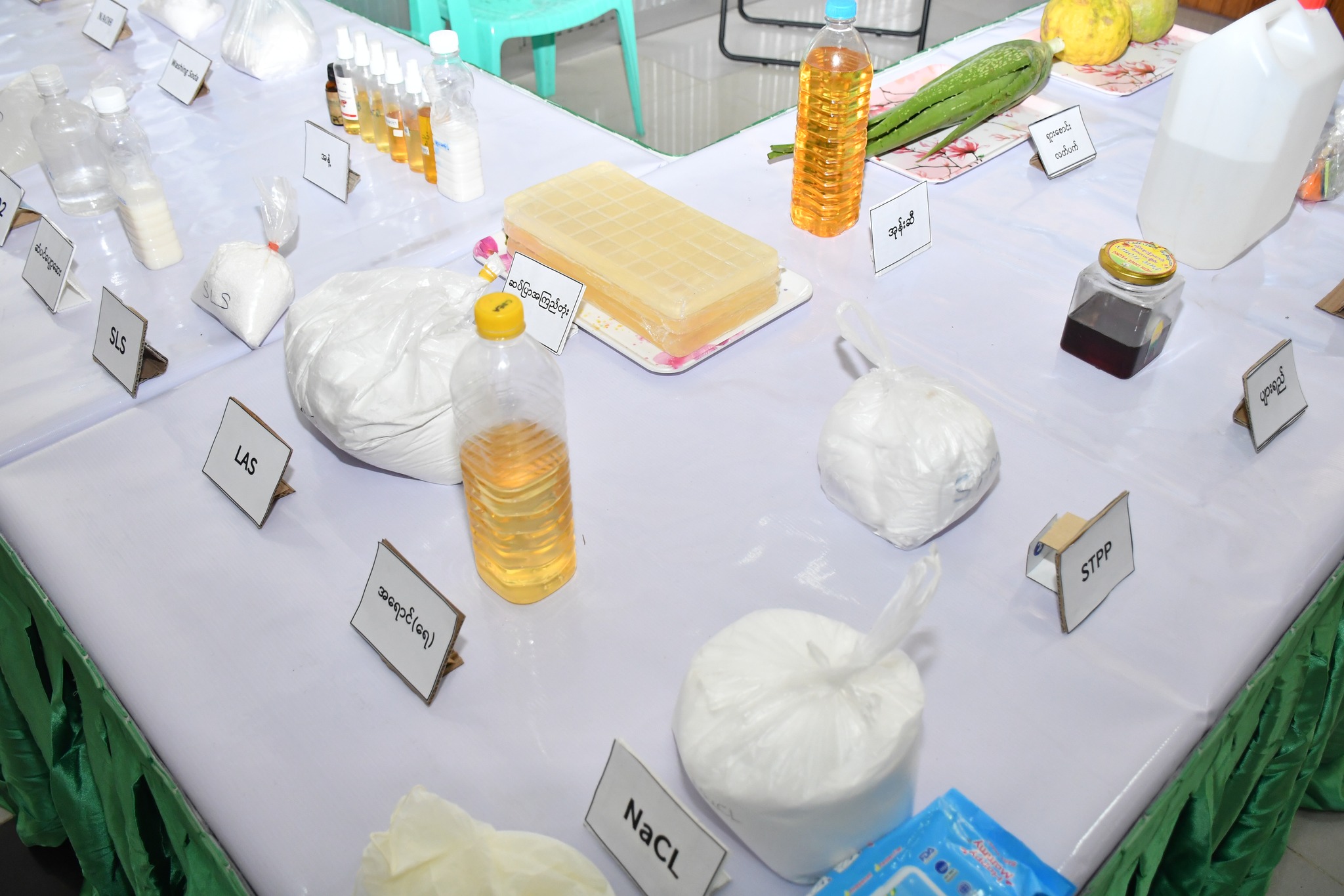 ရှေးဦးစွာ ပြည်ထောင်စုဝန်ကြီးက အဖွင့်အမှာစကား ပြောကြားရာတွင် ဤသင်တန်းကို မိမိတို့ဝန်ကြီးဌာနမှ ဝန်ထမ်းများနှင့် ဝန်ထမ်းမိသားစုများ လူသုံးကုန်ပစ္စည်းများ ထုတ်လုပ်သည့် နည်းပညာများကို သင်ယူတတ်မြောက်စေရန်၊ နည်းပညာများကို နားလည်တတ်မြောက်ပြီး ကိုယ်ပိုင်အသေးစား၊ အငယ်စား၊ အလတ်စား လုပ်ငန်းများကို ထူထောင်နိုင်ကာ မိသားစု စားဝတ်နေရေးအတွက် တစ်ဖက်တစ်လမ်းမှဝင်ငွေရရှိစေရန်နှင့် ဝန်ထမ်းမိသားစုများ အလုပ်အကိုင် အခွင့်အလမ်းများရရှိစေရန်ရည်ရွယ်ပြီး ဖွင့်လှစ်ပို့ချရခြင်း ဖြစ်ပါကြောင်း၊ ယခုသင်တန်းတွင် နေ့စဉ်လူအများ မရှိမဖြစ်သုံးစွဲလျက်ရှိသော လူသုံးကုန်ပစ္စည်းများဖြစ်သည့် ဘက်စုံသုံးဆပ်ပြာရည်၊ အဝတ်လျှော်ဆပ်ပြာရည် ၊ ရေချိုးဆပ်ပြာရည် ၊ ပန်းကန်ဆေးဆပ်ပြာ ရည်၊ ဆပ်ပြာခဲအမျိုးမျိုး၊ သဘာဝခေါင်းလျှော်ရည်၊ ဆပ်ပြာကရင်မ် နှင့် Hand Gel တို့ကို ထုတ်လုပ်သည့် နည်းပညာများကို သမဝါယမနှင့်ကျေးလက်ဖွံ့ဖြိုးရေးဝန်ကြီးဌာန၊ အသေးစားစက်မှုလက်မှု လုပ်ငန်းဦးစီးဌာနမှ သင်တန်းနည်းပြများက မေတ္တာ၊ စေတနာ၊ ဝါသနာကို အရင်းခံပြီး (၅)ရက်ကြာ သင်ကြားပို့ချပေးသွားမည် ဖြစ်ပါကြောင်း၊ နိုင်ငံတော်မှလည်း “သွင်းကုန်အစားထိုးရန်နှင့်ပို့ကုန်မြှင့်တင်နိုင်ရေးဒေသထွက်ကုန်ကြမ်းများကိုအခြေခံသည့်အသေးစား၊အငယ်စား၊ အလတ် စား စီးပွားရေးလုပ်ငန်း (MSME)များကို ရေရှည် အာမခံချက် ရှိအောင်အားပေးကူညီပြီး နိုင်ငံတော်၏ ထုတ်ကုန်များစွာထုတ်လုပ်နိုင်သည့် အလုပ်အကိုင် အခွင့်အလမ်းများ ဆောင်ရွက်ဖော်ဆောင်ရေး” ဟု စီးပွားရေးဦးတည်ချက် (၄) ရပ်တွင် လမ်းညွှန်ချမှတ်ထားပါကြောင်း၊ အဆိုပါလမ်းညွှန်ချက်နှင့်အညီ မိမိတို့ဝန်ကြီးဌာနသည် တိုင်းရင်းသား လူမျိုးများ၏ လူမှုစီးပွားရေးဖွံ့ဖြိုးတိုးတက်စေရန် ဆောင်ရွက်လျက်ရှိရာ တိုင်းဒေသကြီး/ ပြည်နယ်အလိုက် တိုင်းရင်းသားဒေသများတွင် လိုအပ်လျက်ရှိသော အသက်မွေးဝမ်းကျောင်းပညာ သင်တန်းများကို ဖွင့်လှစ်ပို့ချပေးလျက်ရှိပါကြောင်း၊ ၂၀၂၀-၂၀၂၁ နှင့် ၂၀၂၁-၂၀၂၂ ဘဏ္ဍာနှစ်များတွင် ဦးစီးဌာန၏ဘဏ္ဍာငွေဖြင့် ရှမ်းပြည်နယ်နှင့် ရခိုင်ပြည်နယ်တို့တွင် အသက်မွေးဝမ်း ကျောင်း ပညာသင်တန်း (၃)ခုကို ဖွင့်လှစ်ပေးနိုင်ခဲ့ပြီး သင်တန်းသား/ သူ (၇၃) ဦးကို သင်ကြားပေးနိုင်ခဲ့ပါကြောင်း၊ ထို့အပြင် ၂၀၂၂-၂၀၂၃ ဘဏ္ဍာနှစ်များတွင်လည်း ကချင်ပြည်နယ်တွင် အသေးစားစက်မှုလက်မှုဦးစီးဌာနနှင့်ပူးပေါင်း၍ အသက်မွေးဝမ်းကျောင်းပညာ သင်တန်း(၃)ခု၊ တနင်္သာရီတိုင်းဒေသကြီးတွင် တိုင်းဒေသကြီး ဘဏ္ဍာငွေဖြင့် (၁)ခု၊ ရန်ကုန် တိုင်းဒေသကြီးတွင် တိုင်းဒေသကြီး ဘဏ္ဍာငွေဖြင့် (၁၂)ခု၊ ရှမ်းပြည်နယ်တွင် ပြည်နယ်ဘဏ္ဍာငွေဖြင့် (၄)ခုတို့