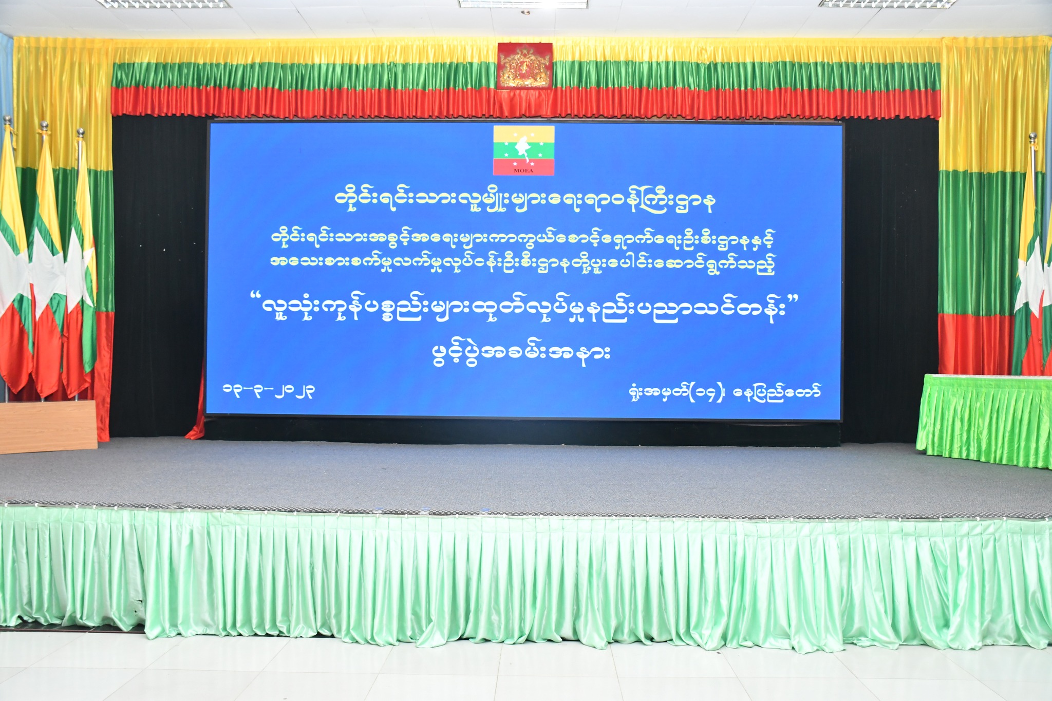 မတ်လ ၁၃ ရက်နေ့ နံနက်ပိုင်းတွင် တိုင်းရင်းသားလူမျိုးများရေးရာဝန်ကြီးဌာန၊ အစည်းအဝေး ခန်းမ၌ တိုင်းရင်းသားအခွင့် အရေးများကာကွယ်စောင့်ရှောက်ရေးဦးစီးဌာနနှင့် သမဝါယမနှင့်ကျေးလက်ဖွံ့ဖြိုးရေးဝန်ကြီးဌာန၊ အသေးစားစက်မှုလက်မှုလုပ်ငန်းဦးစီးဌာနတို့ ပူးပေါင်း၍ ကျင်းပပြုလုပ်သည့် လူသုံးကုန်ပစ္စည်းများထုတ်လုပ်မှု နည်းပညာသင်တန်းဖွင့်ပွဲ အခမ်းအနားသို့ တိုင်းရင်းသားလူမျိုးများရေးရာဝန်ကြီးဌာန ပြည်ထောင်စုဝန်ကြီး Jeng Phang နော်တောင်၊ ဒုတိယဝန်ကြီးဦးဇော်အေးမောင်၊ အမြဲတမ်းအတွင်းဝန်၊ ညွှန်ကြားရေးမှူးချုပ်များ၊ ဒုတိယအမြဲတမ်းအတွင်းဝန်၊ ဒုတိယညွှန်ကြား ရေးမှူးချုပ်များ ၊ အရာထမ်းများ၊ အမှုထမ်းများ၊ သင်တန်းကြီးကြပ်သူ၊ သင်တန်းနည်းပြများနှင့် သင်တန်းသား၊ သင်တန်းသူများ တက်ရောက်ခဲ့ ကြပါသည်။