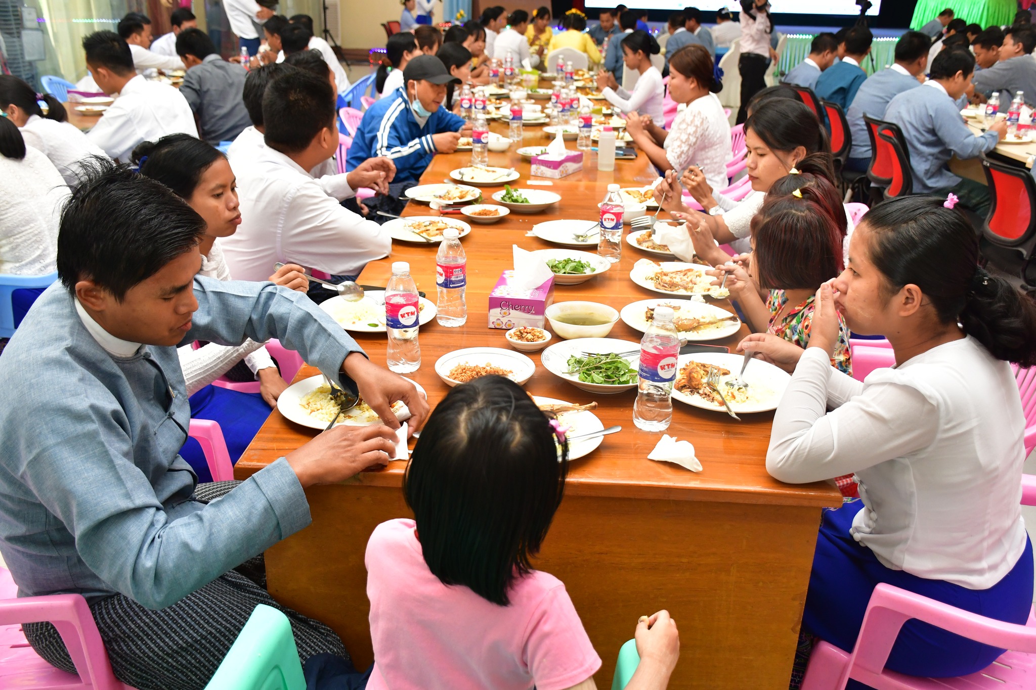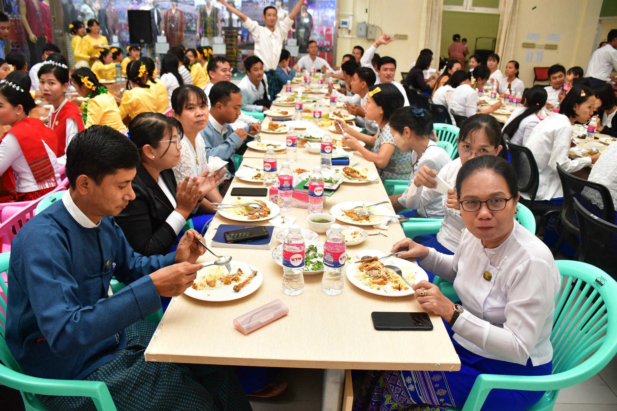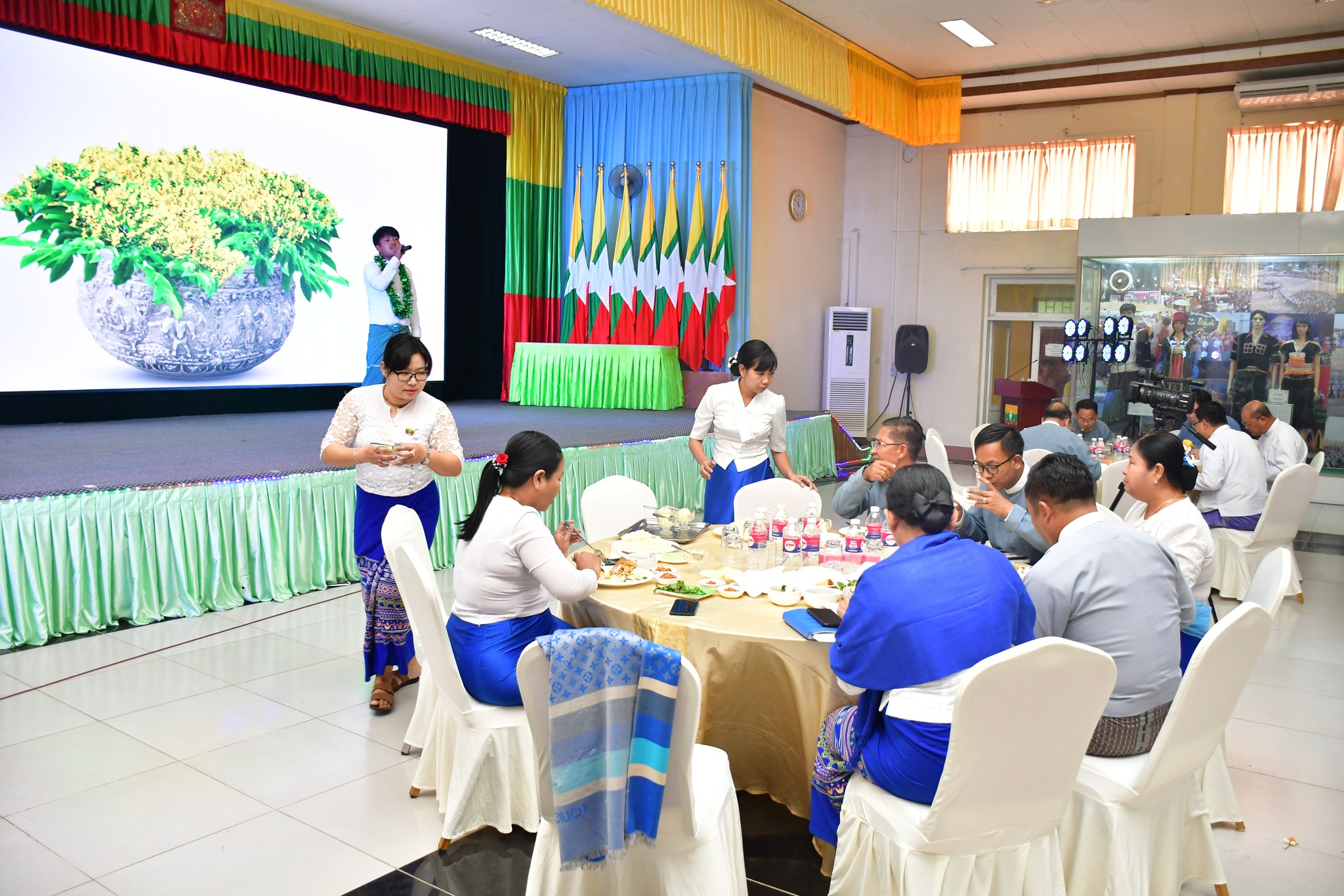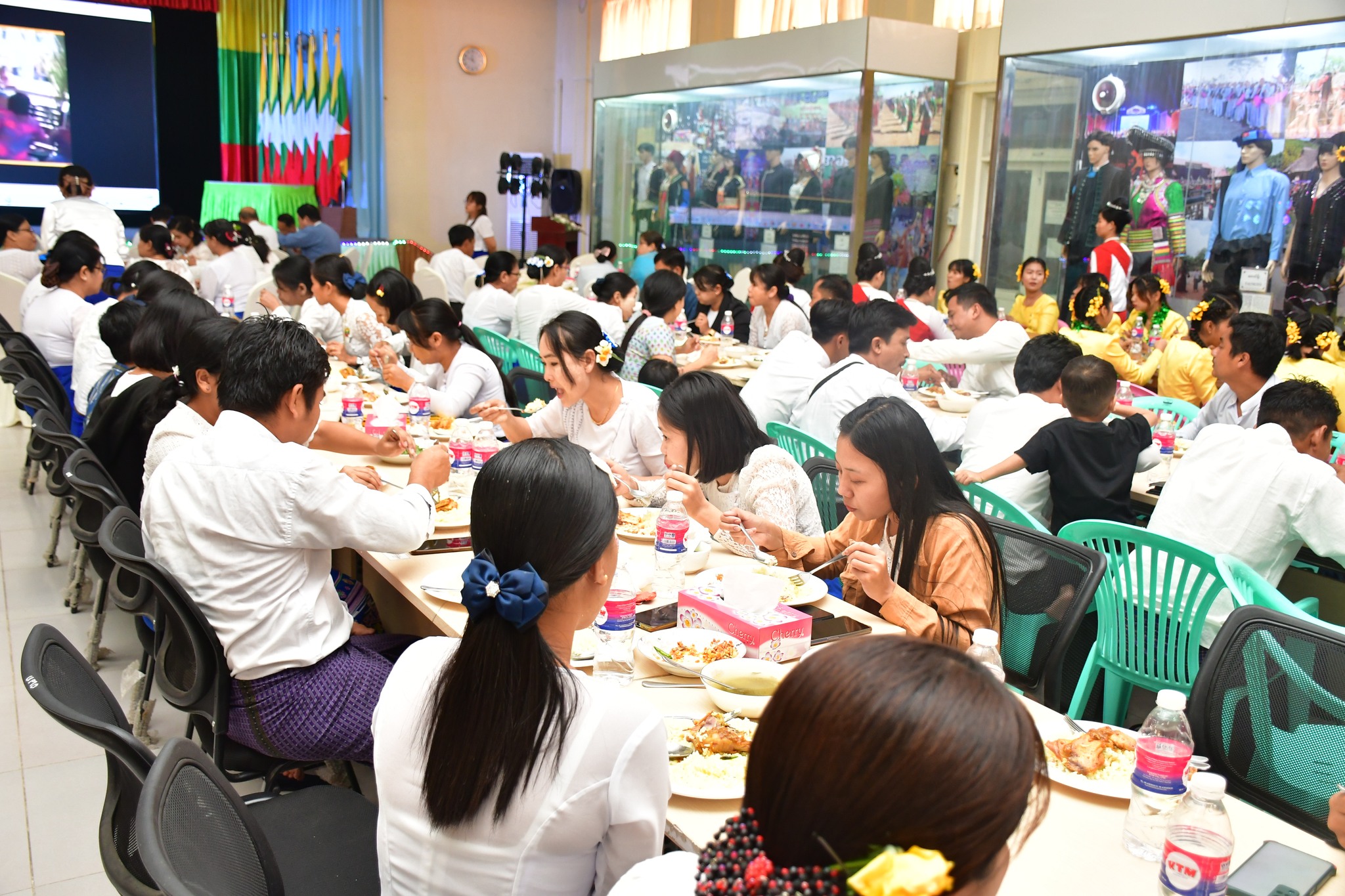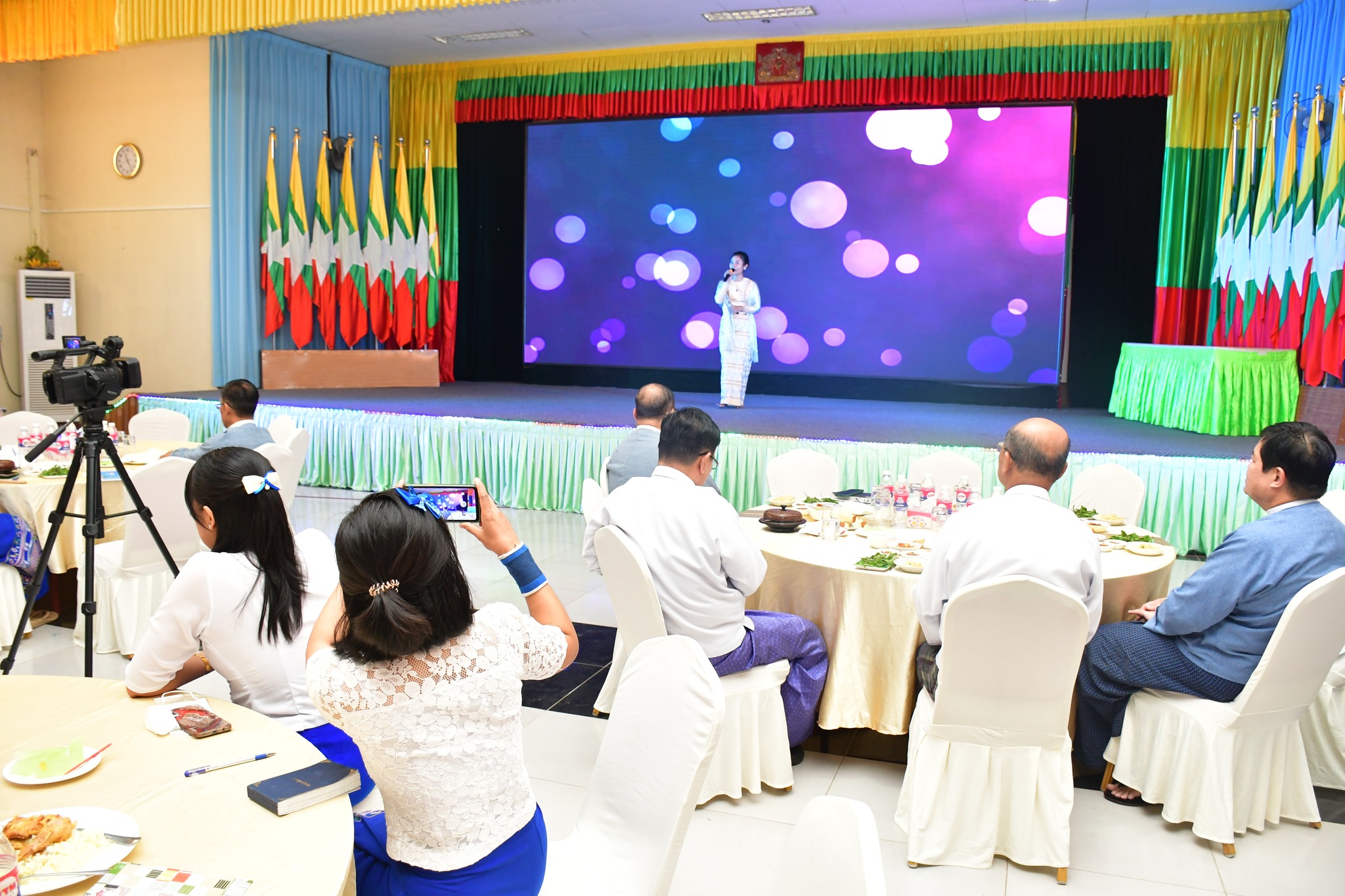 ဆက်လက်၍ ဝန်ကြီးဌာနရှိ ဝန်ထမ်းများက တိုင်းရင်းသားရိုးရာအဆို၊ အကများ၊ ခါသင်္ကြန်ယိမ်းအကများဖြင့် ဧည့်ခံဖျော်ဖြေကြပြီး အခမ်းအနားသို့တက်ရောက်လာကြသည့် ပြည်ထောင်စုဝန်ကြီး၊ ဒုတိယဝန်ကြီး၊ အမြဲတမ်းအတွင်းဝန်၊ ညွှန်ကြားရေးမှူးချုပ်များ၊ ဒုတိယညွှန်ကြားရေးမှူးချုပ်များနှင့် အရာထမ်း အမှုထမ်းများအာလုံး နေ့လယ်စာကို လက်ရည် တပြင်တည်း အတူတကွသုံးဆောင်ခဲ့ကြကြောင်း သိရှိရပါသည်။