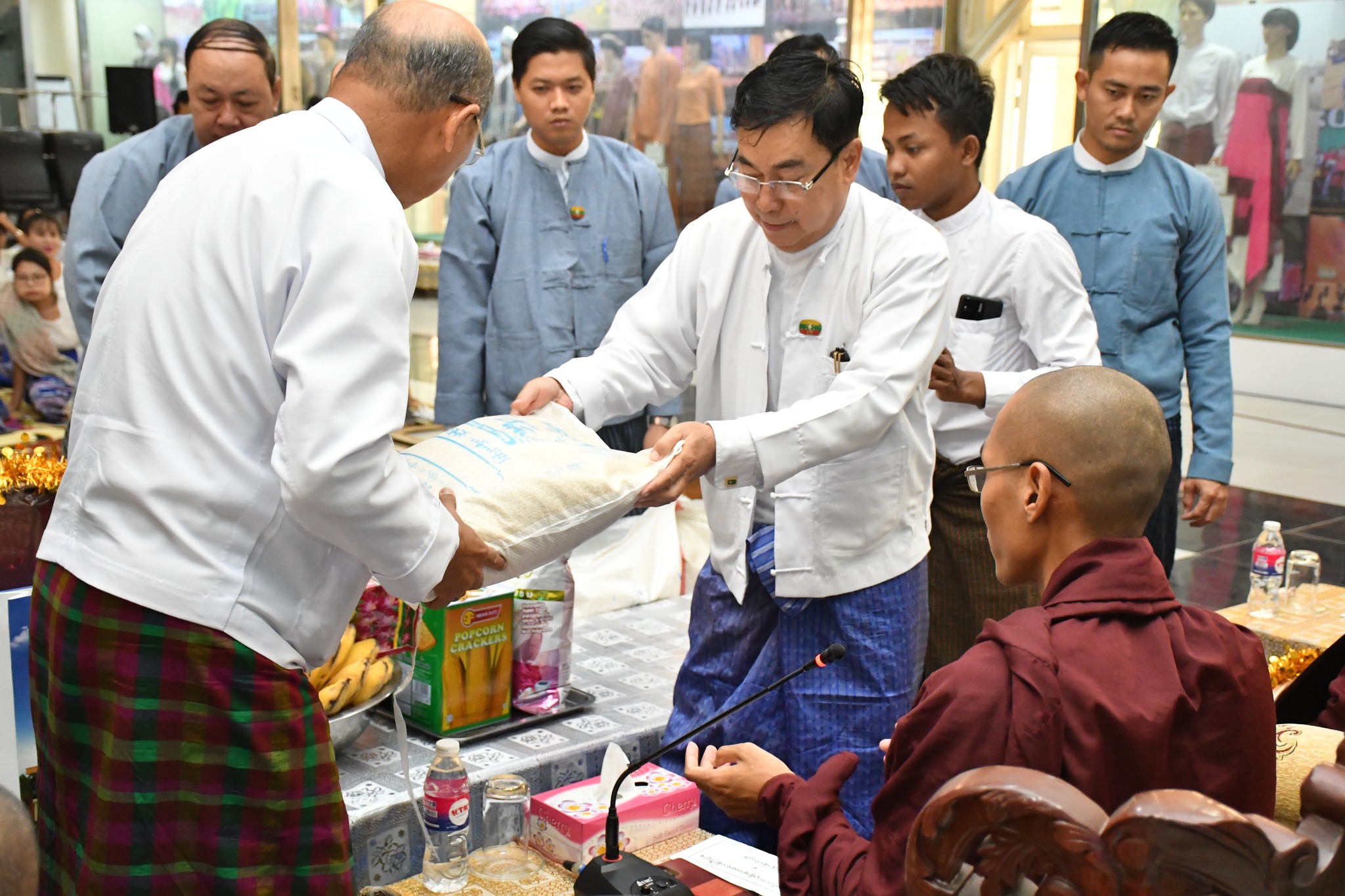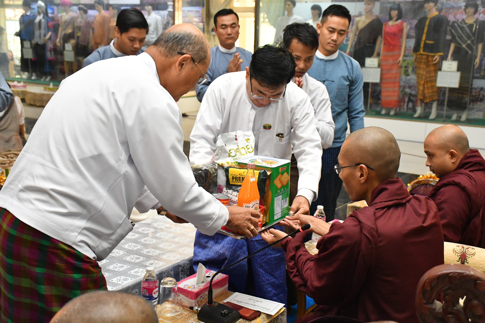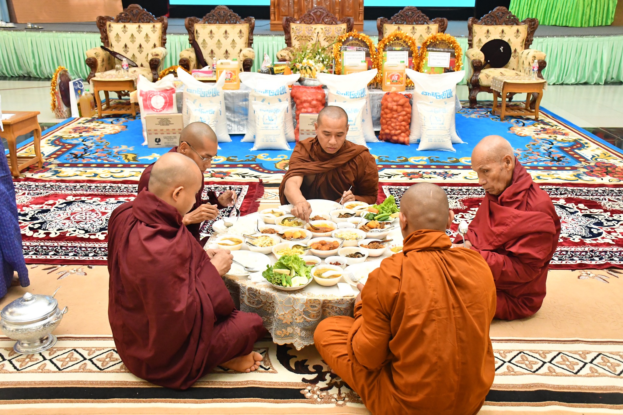 အခမ်းအနားအပြီးတွင် ပြည်ထောင်စုဝန်ကြီး၊ ဒုတိယဝန်ကြီးနှင့် တာဝန်ရှိသူများက ဆရာတော်၊ သံဃာတော်များအား နေ့ဆွမ်းဆက်ကပ် လှူဒါန်းခဲ့ကြောင်း သတင်းရရှိ ပါသည်။