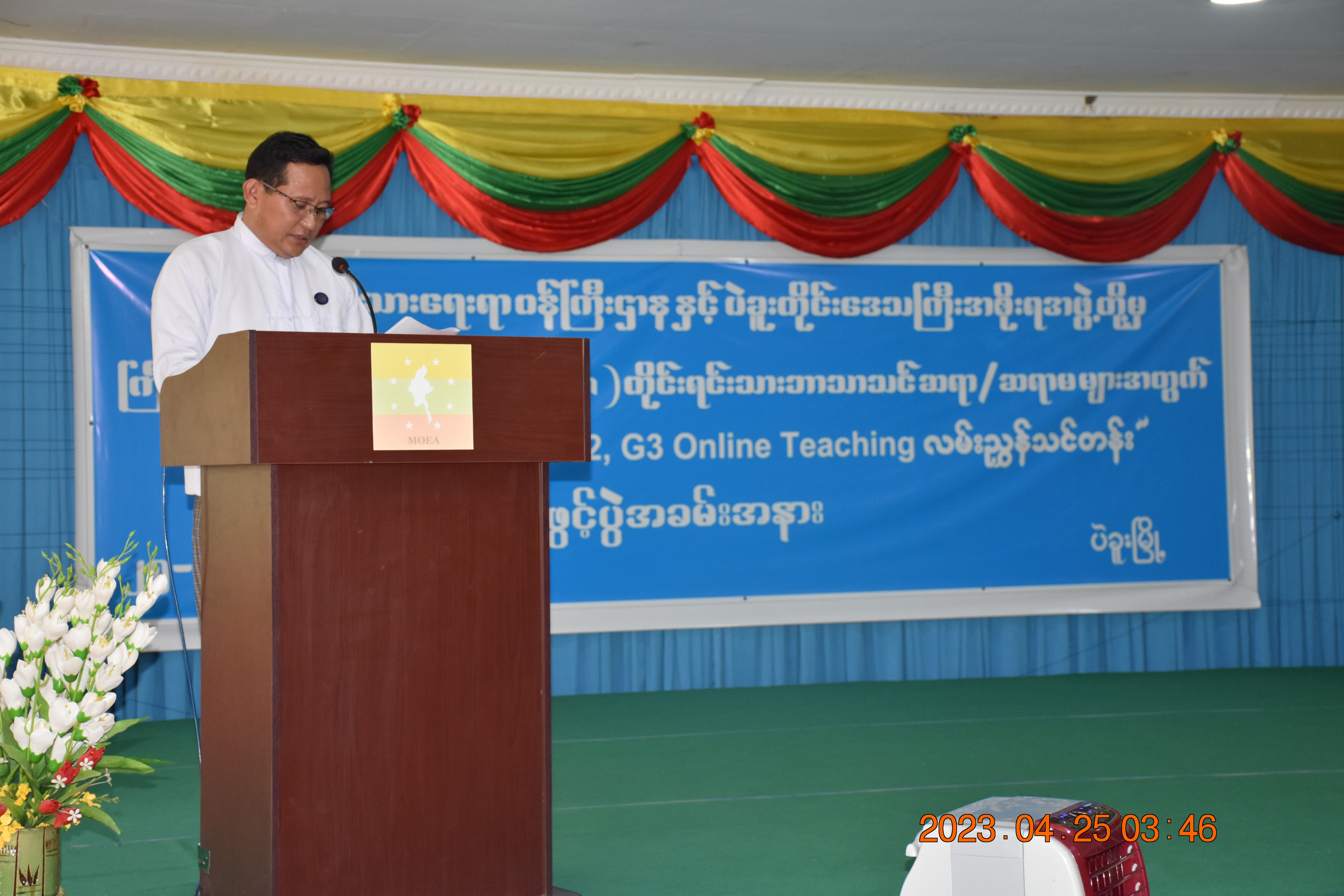 တိုင်းရင်းသားလူမျိုးများရေးရာဝန်ကြီးဌာနနှင့် ပဲခူးတိုင်းဒေသကြီးအစိုးရအဖွဲ့တို့မှ ကြီးမှူးကျင်းပသည့် ကရင်(စကော)တိုင်းရင်းသားဘာသာ စာပေသင် TA ဆရာ/ဆရာမများ အတွက် ကရင်စာပေသင်ရိုး G1,G2,G3 Online Teaching လမ်းညွှန်သင်တန်း (၂၀၂၃-၂၀၂၄) ဖွင့်ပွဲအခမ်းအနားကို ကျင်းပ ပြုလုပ် ပဲခူး၊ ၂၅-၄-၂-၂၃