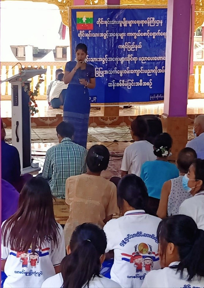 ထို့နောက် ကျေးလက်ကျန်းမားရေးဌာနခွဲမှ ဆရာမ ဒေါ်နန်းနှင်းသွယ်တာ က COVID – 19 ရောဂါကာကွယ်တားဆီးရေးဆိုင်ရာ ကိစ္စရပ်များ၊ သွေးလွန်တုတ်ကွေးရောဂါ ကြိုတင်တားဆီး ကာကွယ်ခြင်းဆိုင်ရာ ကိစ္စရပ်များကိုလည်းကောင်း၊ တိုင်းရင်းသားအခွင့်အရေးများကာကွယ် စောင့်ရှောက်ရေးဦးစီးဌာန၊ ကရင်ပြည်နယ်၊ ညွှန်ကြားရေးမှူးရုံးမှ အငယ်တန်းစာရေး ဦးအောင်ဖြိုးသော် က အမုန်းစကားနှင့်အကြမ်းဖက်လှုံ့ဆော်မှုကို တားဆီးခြင်းဆိုင်ရာ အသိပညာ ပေးကိစ္စရပ်များနှင့် ရပ်ရွာအခြေပြု အသက်မွေးဝမ်းကျောင်းပညာလိုအပ်ချက်တို့ကို ဆန်းစစ်စီမံခြင်း စစ်တမ်းကောက်ယူရခြင်း ရည်ရွယ်ချက်နှင့် စစ်တမ်းဖြေဆိုပုံ မေးခွန်းများကို ရှင်းလင်းပြောကြား ခဲ့ပါသည်။
