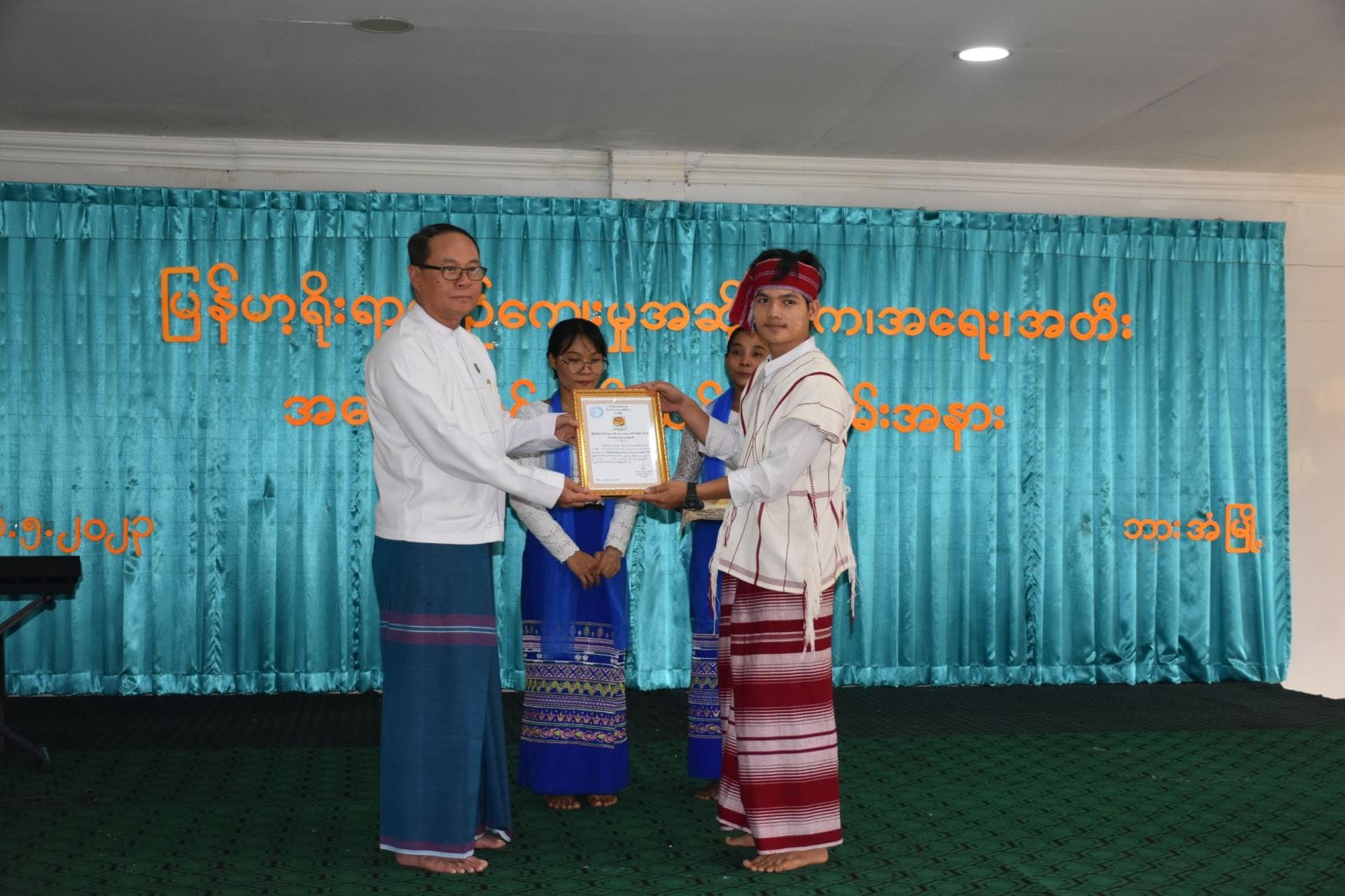 ထို့နောက် သင်တန်းသား၊သင်တန်းသူများမှ အဆိုအကများဖြင့် ကပြဖျော်ဖြေခဲ့ကြရာ ပြည်နယ်ဝန်ကြီးချုပ်နှင့်အဖွဲ့များက ဆုများပေးအပ်ချီးမြှင့်ခဲ့ကြပါသည်။