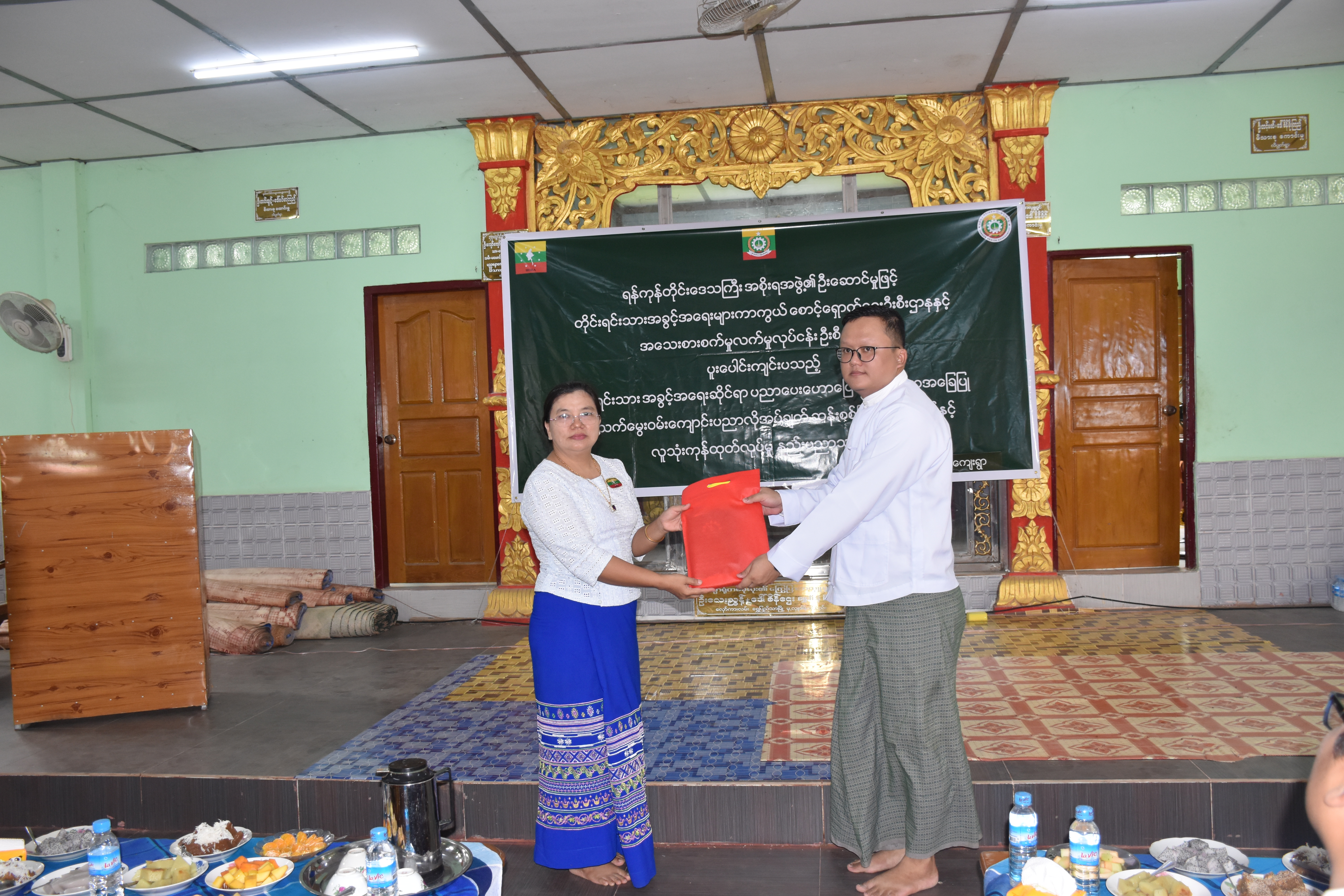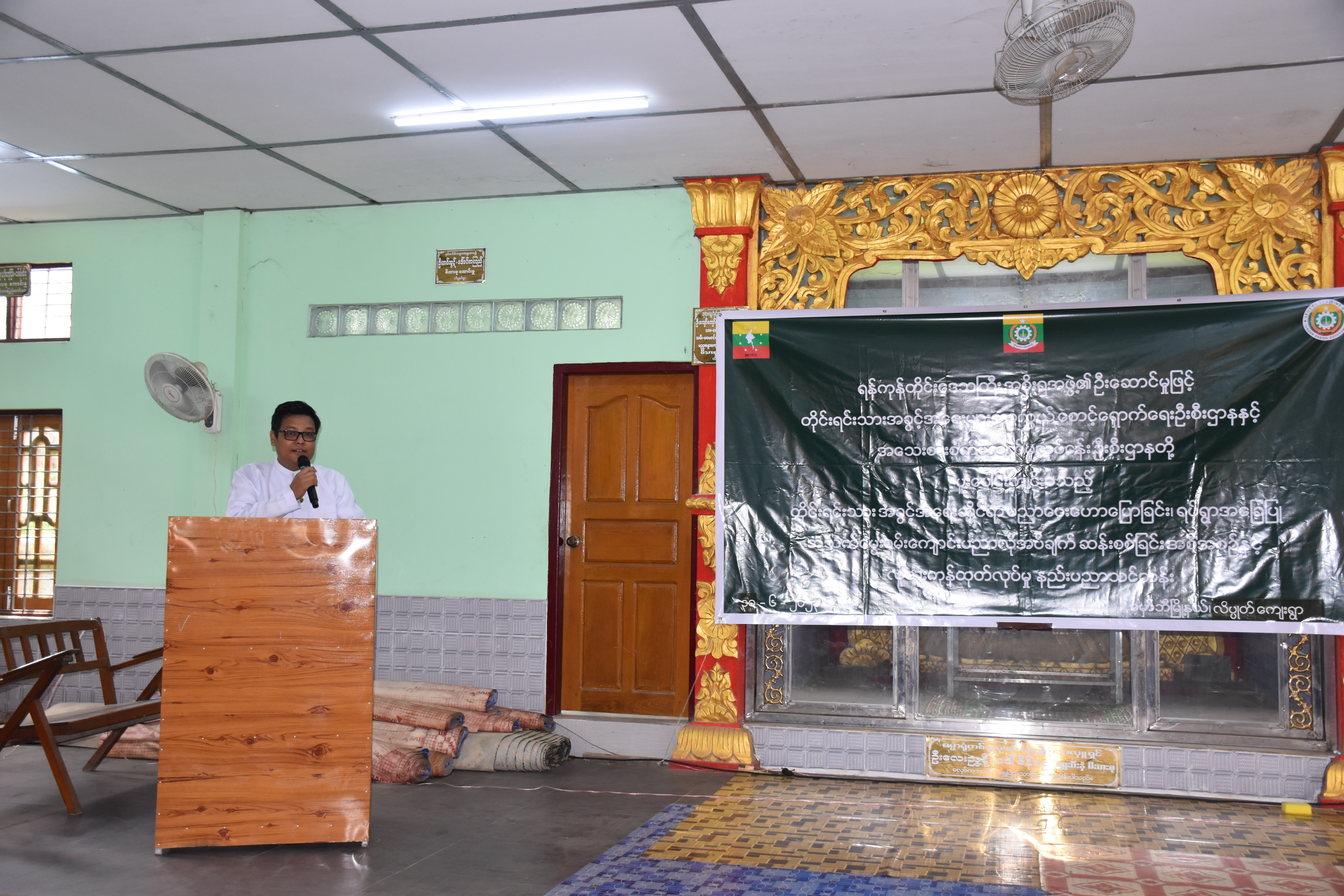 ရန်ကုန်တိုင်းဒေသကြီးအစိုးရအဖွဲ့၊ တိုင်းရင်းသားရေးရာဝန်ကြီး ဦးဆောင်၍ တိုင်းရင်းသား အခွင့်အရေးများကာကွယ်စောင့်ရှောက်ရေးဦးစီးဌာန၊ ရန်ကုန်တိုင်းဒေသကြီး၊ ညွှန်ကြားရေးမှူးရုံးမှ ကြီးမှူးကျင်းပသော “တိုင်းရင်းသားအခွင့်အရေးဆိုင်ရာအသိ ပညာပေးဟောပြောခြင်းနှင့် ရပ်ရွာ အခြေပြုအသက်မွေးဝမ်းကျောင်းပညာ လိုအပ်ချက်တို့ကို ဆန်းစစ်စီမံခြင်း အစီအစဉ်”နှင့် “ဆပ်ပြာရည်၊ ခေါင်းလျှော်ရည်၊ ဆပ်ပြာခဲ၊ လက်သန့်ဆေးရည် လူသုံးကုန်ထုတ်လုပ်မှုနည်း ပညာသင်တန်းဖွင့်ပွဲအခမ်းအနား”ကို (၃၀-၆-၂၀၂၃) ရက်နေ့တွင် ရန်ကုန်တိုင်းဒေသကြီး၊ မှော်ဘီမြို့ နယ်၊ လိပ္ပုတ်ကျေးရွာ၊ ဓမ္မာရုံ၌ ကျင်းပပြုလုပ်ခဲ့ပါသည်။