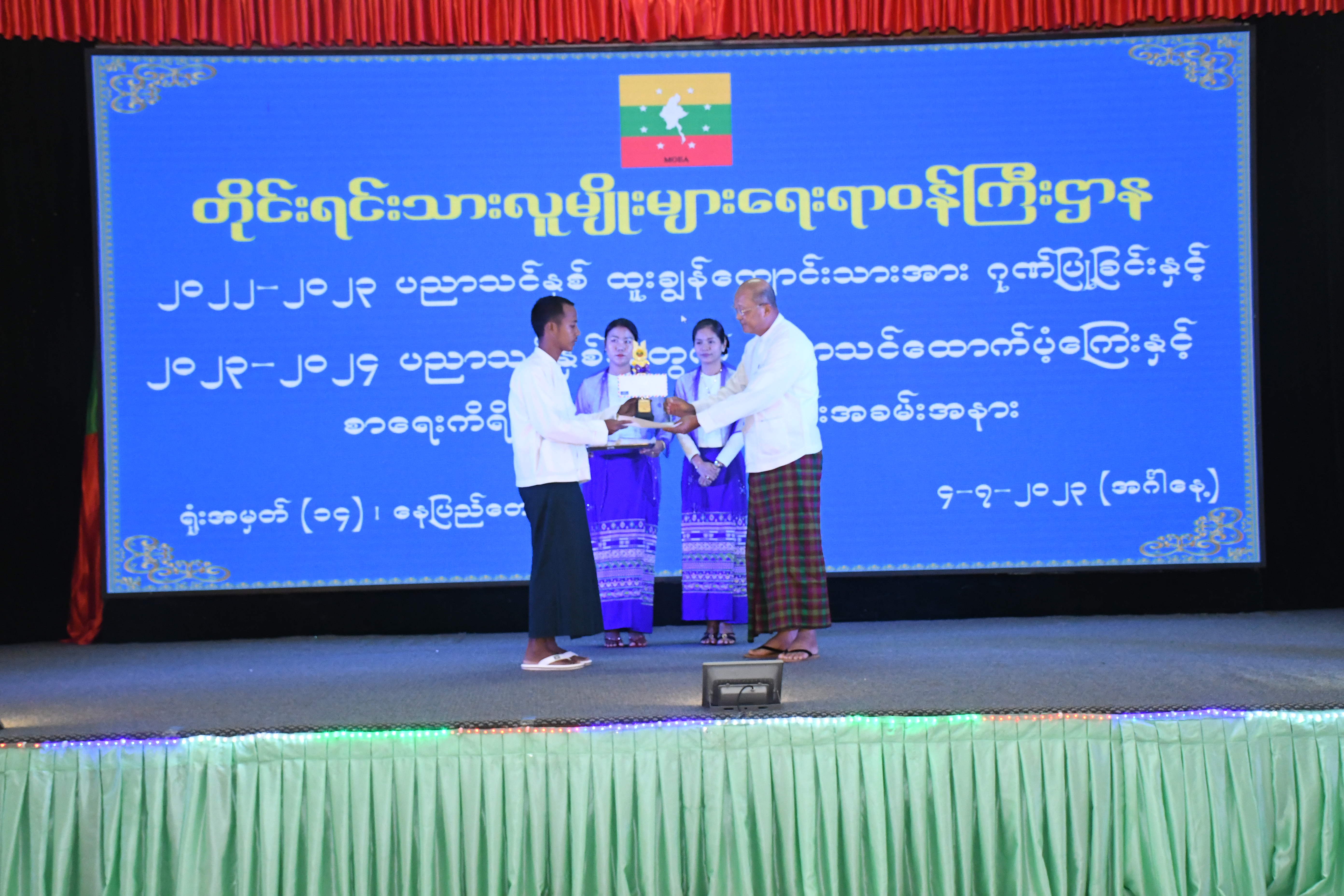 တိုင်းရင်းသားလူမျိုးများရေးရာဝန်ကြီးဌာန ဝန်ထမ်းမိသားစုများ၏ ထူးချွန်ကျောင်းသား ဂုဏ်ပြုခြင်း၊ ပညာသင် ထောက်ပံ့ကြေးနှင့် စာရေးကိရိယာများပေးအပ်ခြင်း အခမ်းအနားကျင်းပ နေပြည်တော် ဇူလိုင် ၄