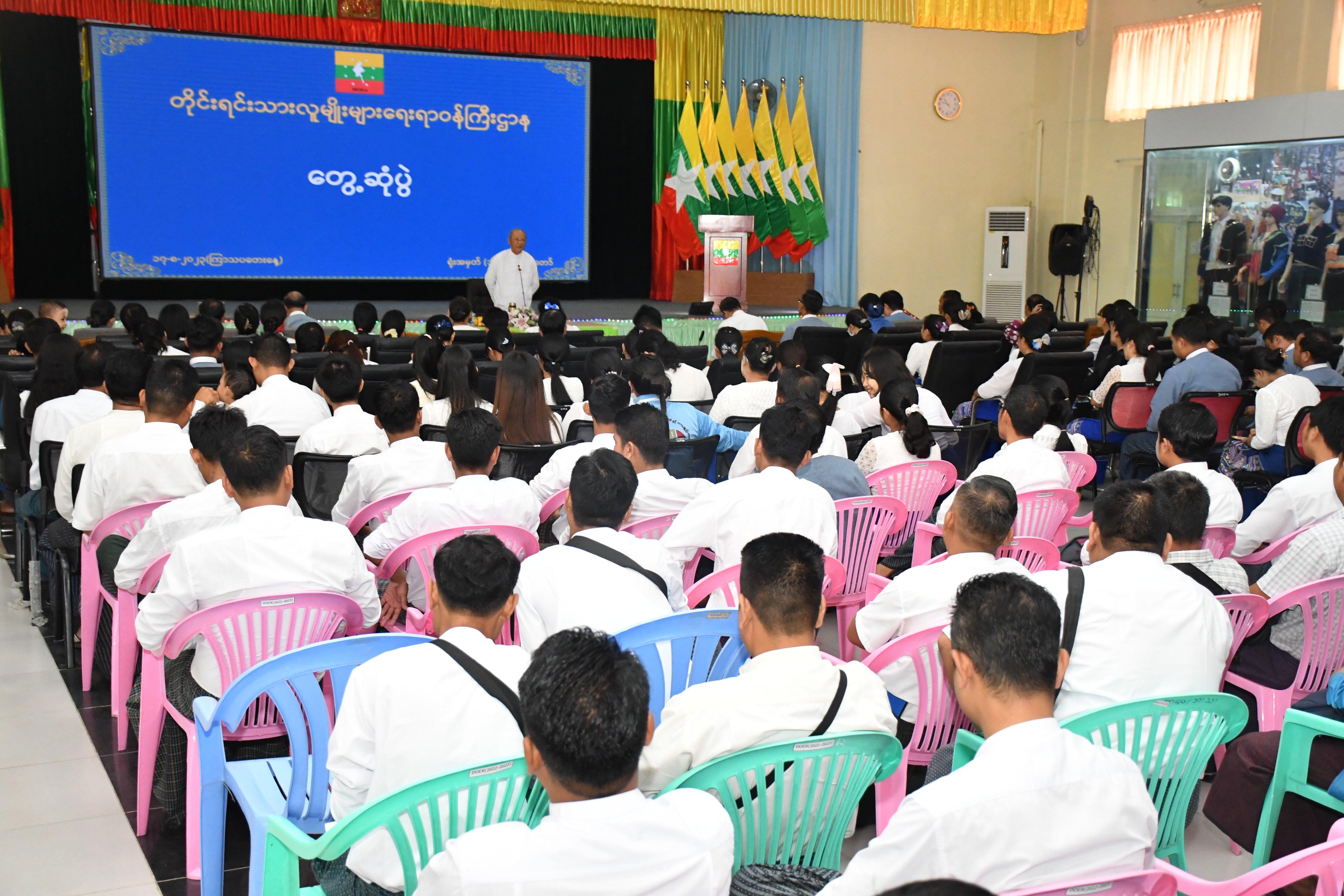 ထို့နောက် ဒုတိယဝန်ကြီးဦးဇော်အေးမောင်က မြန်မာ့ပထဝီနိုင်ငံရေး၊ ကမ္ဘာ့ပထဝီနိုင်ငံရေး နှင့်မြန်မာနိုင်ငံကြုံတွေ့ခဲ့ရသည့် သမိုင်းကြောင်းများကို ရှင်းလင်းဆွေးနွေးပြီး ယနေ့ခေတ် လူငယ်များသည် မြန်မာနိုင်ငံ၏ သမိုင်းကြောင်းအမှန်ကို သိရှိရန်လိုအပ်ပါကြောင်း၊ ဝန်ထမ်း များအနေဖြင့် မိမိတို့၏ အရည်အသွေး မြှင့်တင်နိုင်ရန်အတွက် ရိုးသားခြင်း၊ ကြိုးစားခြင်း၊ လုံ့လဝီရိယရှိခြင်း၊ လုပ်ငန်းကျွမ်းကျင်မှုရှိခြင်း၊ စည်းစနစ်ကျနမှုရှိခြင်းတို့ လိုအပ်ပါကြောင်း၊ နိုင်ငံတော်တည်ငြိမ်အေးချမ်းရေးအတွက် အစိုးရ၊ ဝန်ထမ်း၊ ပြည်သူများအားလုံး ညီညွတ်စွာ အတူတကွ ပူးပေါင်းဆောင်ရွက်ကြရမည် ဖြစ်ပါကြောင်း၊ ဝန်ထမ်းများအနေဖြင့် နိုင်ငံတော်၏ ရှေ့လုပ်ငန်းစဉ်(၅)ရပ်နှင့် ဦးတည်ချက်(၉)ရပ်အား အကောင်အထည်ဖော် ဆောင်ရွက်ကြရမည် ဖြစ်ပါကြောင်း ပြောကြားပါသည်။