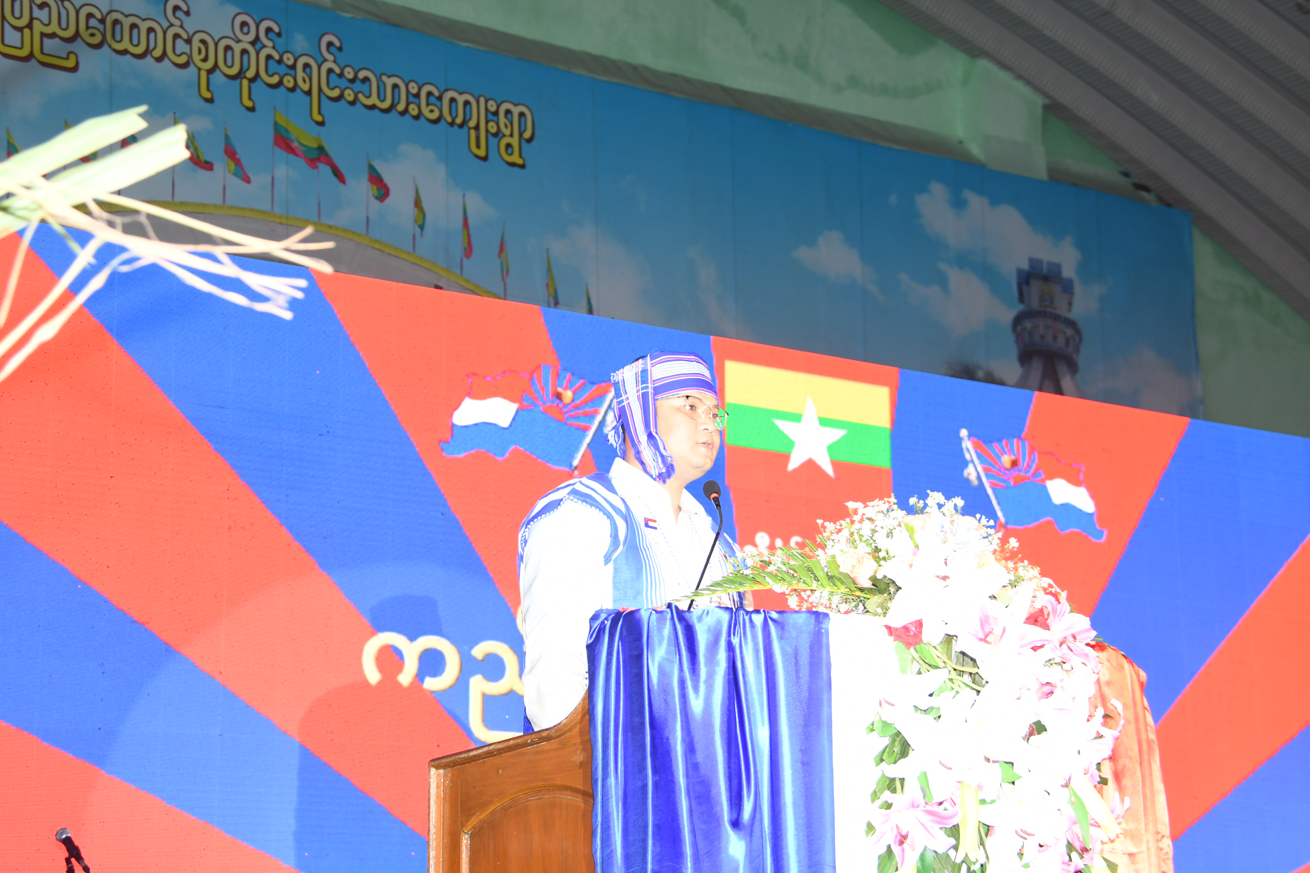 ဆက်လက်ပြီး ပထမဦးစွာ နိုင်ငံတော်စီမံအုပ်ချုပ်ရေးကောင်စီ ဗဟိုအကြံပေး အဖွဲ့ခေါင်းဆောင် ဦးစောထွန်းအောင်မြင့်က နှုတ်ခွန်းဆက်စကားပြောကြားပြီးနောက် ပြည်ထောင်စုဝန်ကြီး Jeng Phang နော်တောင်က နှုတ်ခွန်းဆက်စကားပြောကြားရာတွင် မြန်မာသက္ကရာဇ် ဝါခေါင်လဆန်း (၁) ရက်နေ့မှစတင်ပြီး ဝါခေါင်လပြည့်နေ့အထိ ကျင်းပလေ့ ရှိကြသည့် ကရင်ရိုးရာဝါခေါင်လချည်ဖြူဖွဲ့မင်္ဂလာအခမ်းအနားသည် ကရင်တိုင်းရင်းသား ဘိုးဘွားမိဘများ၏ အစဉ်အလာမပျက် လက်ဆင့်ကမ်းခဲ့ကြသည့် မင်္ဂလာတရားများနှင့် ပြည့်စုံသည့် ရိုးရာအမွေအနှစ်တစ်ခုပင်ဖြစ်ပါကြောင်း၊ မိသားစုများအားလုံး စည်းစည်း လုံးလုံးဖြင့် ပြန်လည်တွေ့ဆုံပြီး လက်ရည်တပြင်တည်းဖြစ်ခြင်း၊ နွေးနွေးထွေးထွေးဖြင့် ချစ်ကြည်ရင်းနှီးစည်းလုံးမှုများတိုးပွားစေခြင်းနှင့် ရိုးရာယဉ်ကျေးမှုထုံးတမ်းအစဉ်အလာ များကို ထိန်းသိမ်းဖော်ထုတ်ခြင်းတို့ဖြင့် ထူးမြတ်သည့်မင်္ဂလာအခမ်းအနားဖြစ်ပါကြောင်း၊ “ချည်ဖြူဖွဲ့မင်္ဂလာကျင်းပခြင်းဖြင့်” မကောင်းသည့်ဖြစ်ပျက်မှု၊ ဖြစ်စဉ်အကြောင်းအရာများ ပျောက်ပျက်ပြီး ကောင်းမွန်သည့်မင်္ဂလာတရားများ မိမိတို့ထံ သက်ဝင်ရောက်ရှိလာစေရန် ဆောင်ရွက်ကြသည့် ပွဲတော်လည်းဖြစ်ပါကြောင်း၊ ပွဲတော်အတွက် လိုအပ်သည့်အရာများမှာ ငှက်ပျောသီး၊ ကောက်ညှင်းထုပ်၊ ထမင်းဆုပ်၊ နတ်ပန်းညို၊ ချည်ဖြူ၊ သန့်စင်သောရေနှင့် ကြံပိုင်းတို့ဖြစ်ကြပြီး စနစ်တကျဆောင်ရွက်သည့် ပွဲတော်လည်းဖြစ်ပါကြောင်း၊ ဤအရာ များကိုကြည့်ခြင်းအားဖြင့် ကရင်တိုင်းရင်းသားများ၏စနစ်တကျစုပေါင်းညီညာ ဆောင်ရွက် တတ်မှု၊ လက်ဆင့်ကမ်းအမွေအနှစ်များ လွှဲပြောင်းပေးအပ်ခံယူတတ်မှုနှင့် ရိုးရာယဉ်ကျေးမှု များကို စနစ်တကျထိန်းသိမ်းဆောင်ရွက်တတ်မှုများကို တွေ့ရှိရမည်ဖြစ် ပါကြောင်း၊ မိမိတို့ တိုင်းရင်းသားလူမျိုးများရေးရာဝန်ကြီးဌာနအနေဖြင့် နိုင်ငံတော်စီမံ အုပ်ချုပ်ရေးကောင်စီ၏ ဦးတည်ချက် (၉)ရပ်အနက် လူမှုရေးဦးတည်ချက်ပါ တစ်နိုင်ငံလုံး အသိပညာအတတ်ပညာ မြင့်မားတိုးတက်စေရေးနှင့် ကုန်ထုတ်လုပ်မှုအထောက်အကူပြု ပညာရှင်များထွန်းကား လာစေရေးတို့အတွက် လူတိုင်းလက်လှမ်းမီသည့် ဘက်စုံပညာရေးစနစ်ကို အကောင်အထည် ဖော်ဆောင်ရေးဆိုသည့် ဦးတည်ချက်ကို အထောက်အကူပြုစေရန်အတွက် တိုင်းဒေသကြီး/ ပြည်နယ်များတွင် တိုင်းရင်းသားဘာသာစာပေသင်ကြားမှုကို ပညာရေးဝန်ကြီးဌာနနှင့် ပေါင်းစပ်ညှိနှိုင်းဆောင်ရွက်ပေးလျက်ရှိပါကြောင်း၊ တိုင်းရင်းသားစာပေနှင့်ယဉ်ကျေးမှု အဖွဲ့များ အသင်းအဖွဲ့မှတ်ပုံတင်ခြင်းဆိုင်ရာဥပဒေနှင့်အညီ စနစ်တကျ မှတ်ပုံတင်နိုင်ရေး ကိစ္စနှင့် တိုင်းရင်းသားများအတွက် တိုက်ရိုက်အကျိုးခံစားစေမည့် 