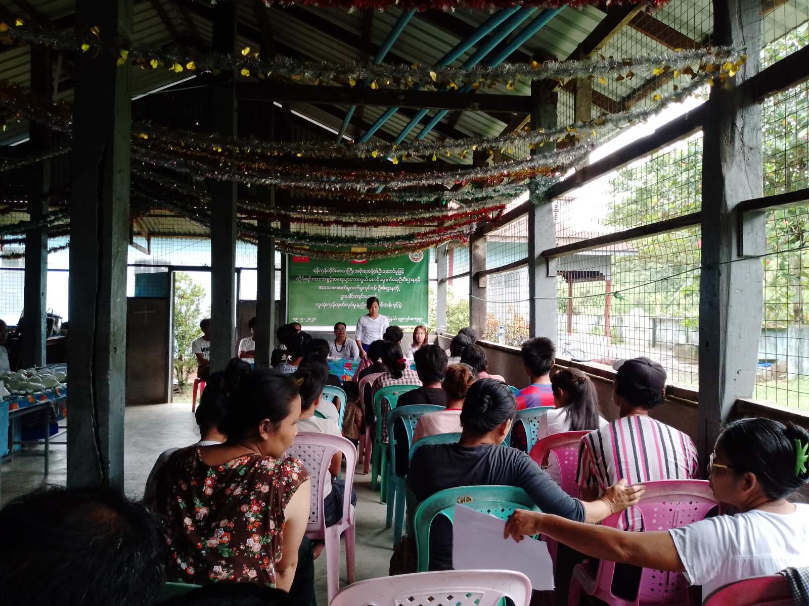ဆက်လက်၍ အသေးစားစက်မှုလက်မှုလုပ်ငန်းဦးစီးဌာနမှ ဦးစီးအရာရှိ ဒေါ်ခင်စန်းထွေးက အသေးစားစက်မှုလက်မှုဦးစီးဌာန၏ သင်တန်းဖွင့်လှစ်ပေးနေမှုအခြေအနေနှင့် သင်တန်းဖွင့်လှစ် ရခြင်း၏ ရည်ရွယ်ချက်၊ သင်တန်းတွင် သင်ကြားပေးမည့်အကြောင်းအရာများနှင့် အမျိုးအစား တို့ကို ရှင်းလင်းပြောကြားခဲ့ပါသည်။ ထို့နောက် ရှင်းလင်းပြောကြားချက်များကို မှော်ဘီမြို့နယ်၊ ကရင်စာပေနှင့် ယဉ်ကျေးမှုအသင်း အတွင်းရေးမှူး ဦးစောဂျိုးဇက်မှ ကရင်ဘာသာစကားဖြင့် ပြန်လည်ပြောကြားခဲ့ပါသည်။