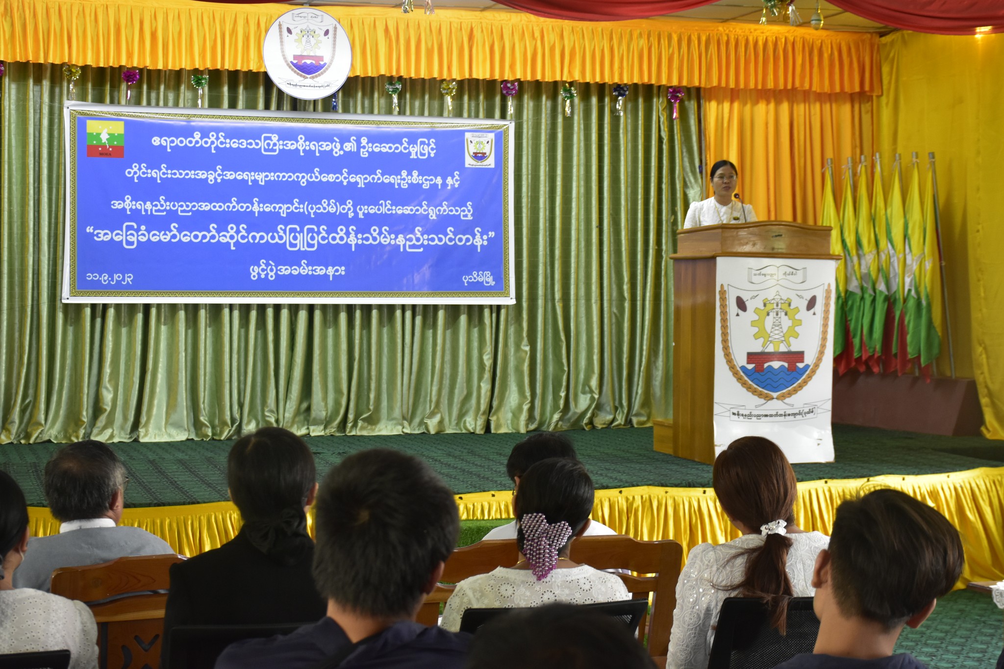 အစီအစဉ်အရ တိုင်းဒေသကြီးအစိုးရအဖွဲ့ဝင် တိုင်ရင်းသားရေးရာဝန်ကြီး ဦးစောလင်းခယ်က အဖွင့်အမှာစကားပြောကြားခဲ့ပြီးနောက် အစိုးရနည်းပညာအထက်တန်း ကျောင်း(ပုသိမ်)မှ ကျောင်းအုပ် ဆရာကြီး ဦးအေးမင်းထွန်းက သင်တန်းနှင့် စပ်လျဉ်း၍ အကဲဖြတ်စစ်ဆေးမှုအစီအစဉ်များ၊ သင်တန်းတွင် ထူးချွန်သူများအားဆုချီးမြှင့်ခြင်း အစီအစဉ်များနှင့် သင်တန်းတွင် ပို့ချမည့် အကြောင်းအရာများကို လည်းကောင်း ရှင်းလင်းပြောကြားခဲ့ပါသည်။