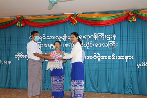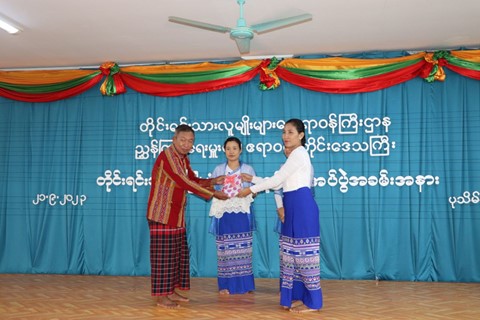 တိုင်းရင်သားပုံပြပုံပြင်စာအုပ်များပေးအပ်ပွဲအခမ်းအနားကို ဧရာဝတီတိုင်းဒေသကြီး တိုင်းရင်းသားလူမျိုးများရေးရာဝန်ကြီးဌာန၊ ညွှန်ကြားရေးမှူးရုံး အစည်းအဝေးခန်းမ၌ကျင်းပ ဧရာဝတီ၊ စက်တင်ဘာ ၂၁