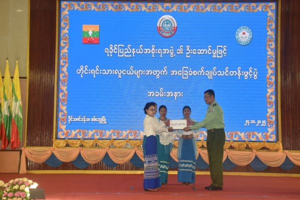 အခမ်းအနားတွင် ရခိုင်ပြည်နယ်အစိုးရအဖွဲ့၊ ပြည်နယ်ဝန်ကြီးချုပ်(ကိုယ်စား) ပြည်နယ်လုံခြုံရေးနှင့်နယ်စပ်ရေးရာဝန်ကြီး၊ ဗိုလ်မှူးကြီးကျော်သူရက အဖွင့်အမှာစကားပြောကြားခဲ့ပြီး အခြေခံစက်ချုပ်သင်တန်းအတွက် ထောက်ပံ့ငွေကျပ် (၁၉၆) သိန်းကို တိုင်းရင်းသားအခွင့်အရေးများ ကာကွယ်စောင့်ရှောက်ရေးဦးစီးဌာန ရခိုင်ပြည်နယ်၊ ညွှန်ကြားရေးမှူးရုံးမှ လက်ထောက်ညွှန်ကြားရေးမှူး ဒေါ်မီမီဝင်းရွှေနှင့် အိမ်တွင်းမှုသက်မွေးလုပ်ငန်းပညာသင်ကျောင်းမှ ကျောင်းအုပ်ဆရာမကြီးတို့ထံ ပေးအပ်ခဲ့ပါသည်။
